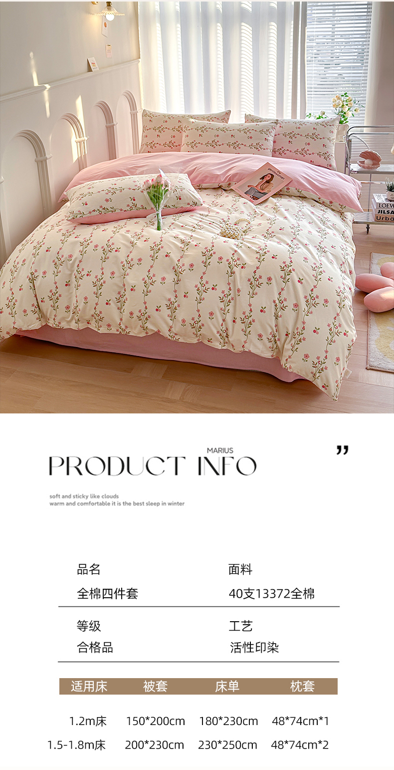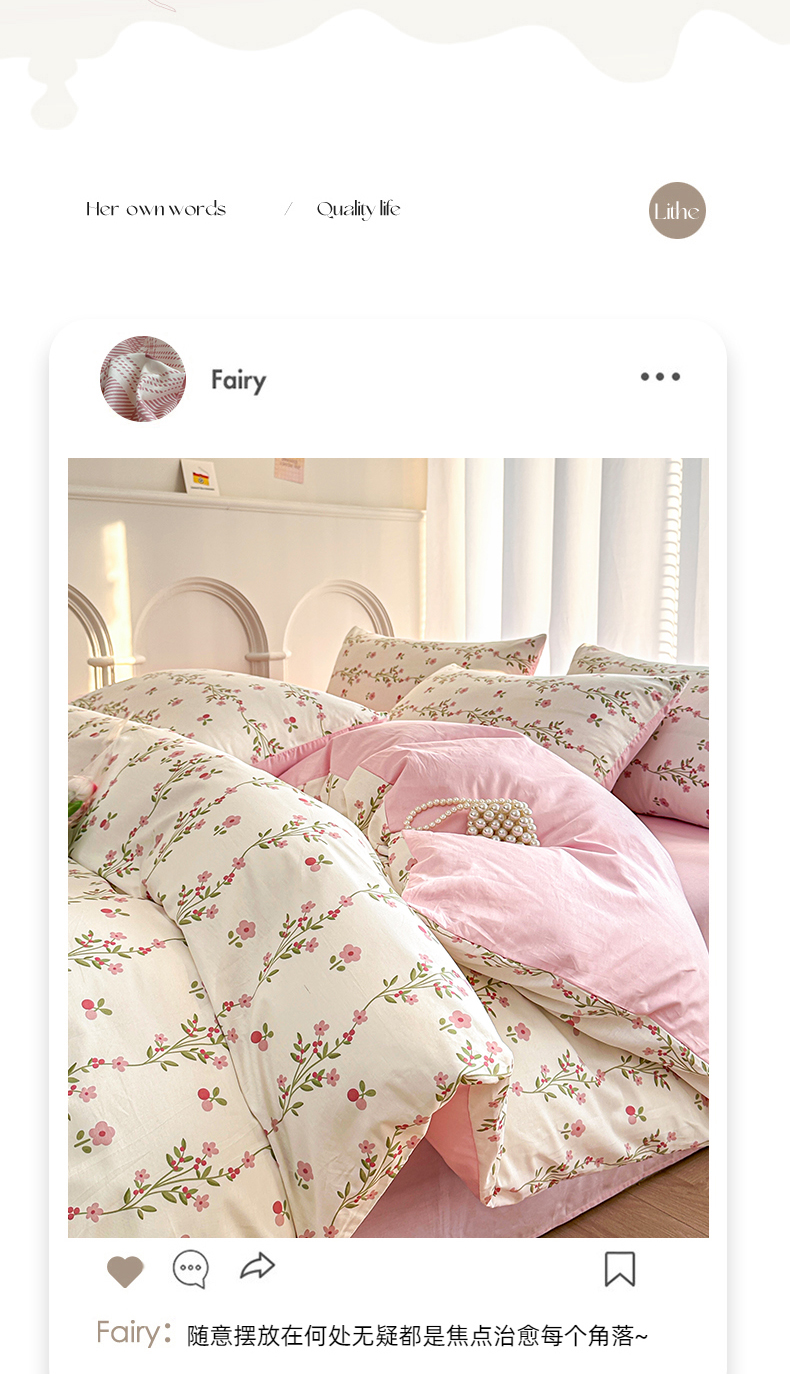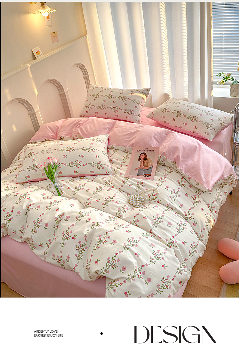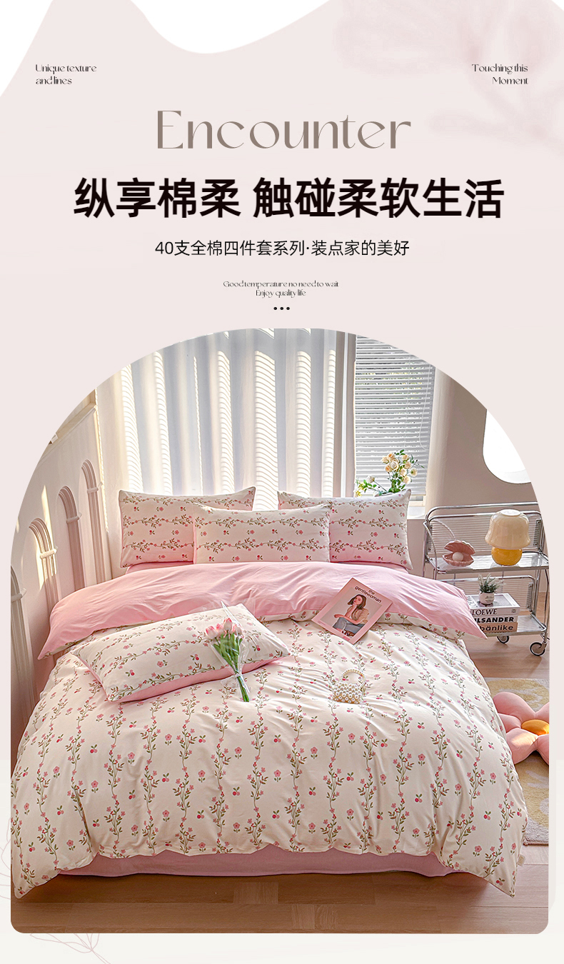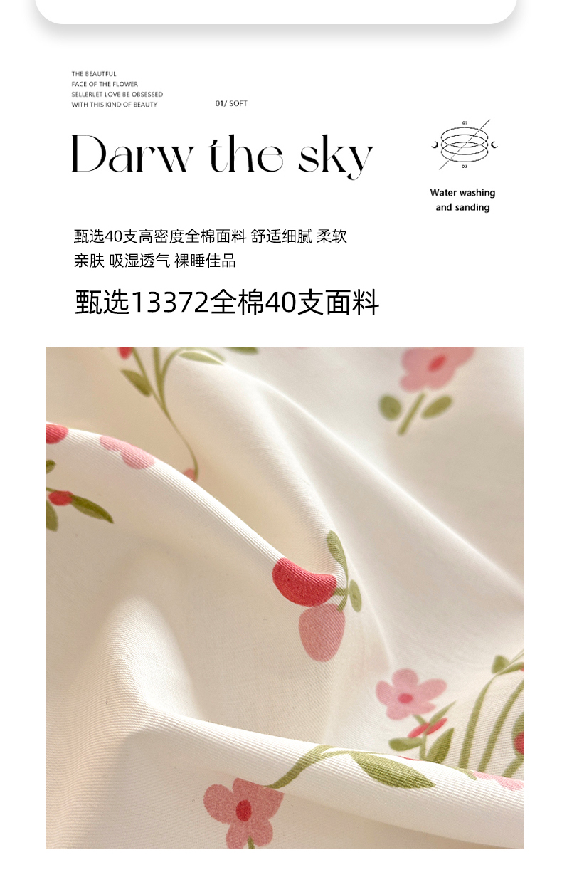 商品名称:潮邦创意家居 2025新款全棉13070多风格纯棉四件套-花卉小清新系列 兰香入梦