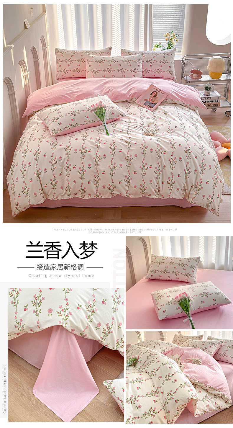 潮邦创意家居 2025新款全棉13070多风格纯棉四件套-花卉小清新系列 兰香入梦