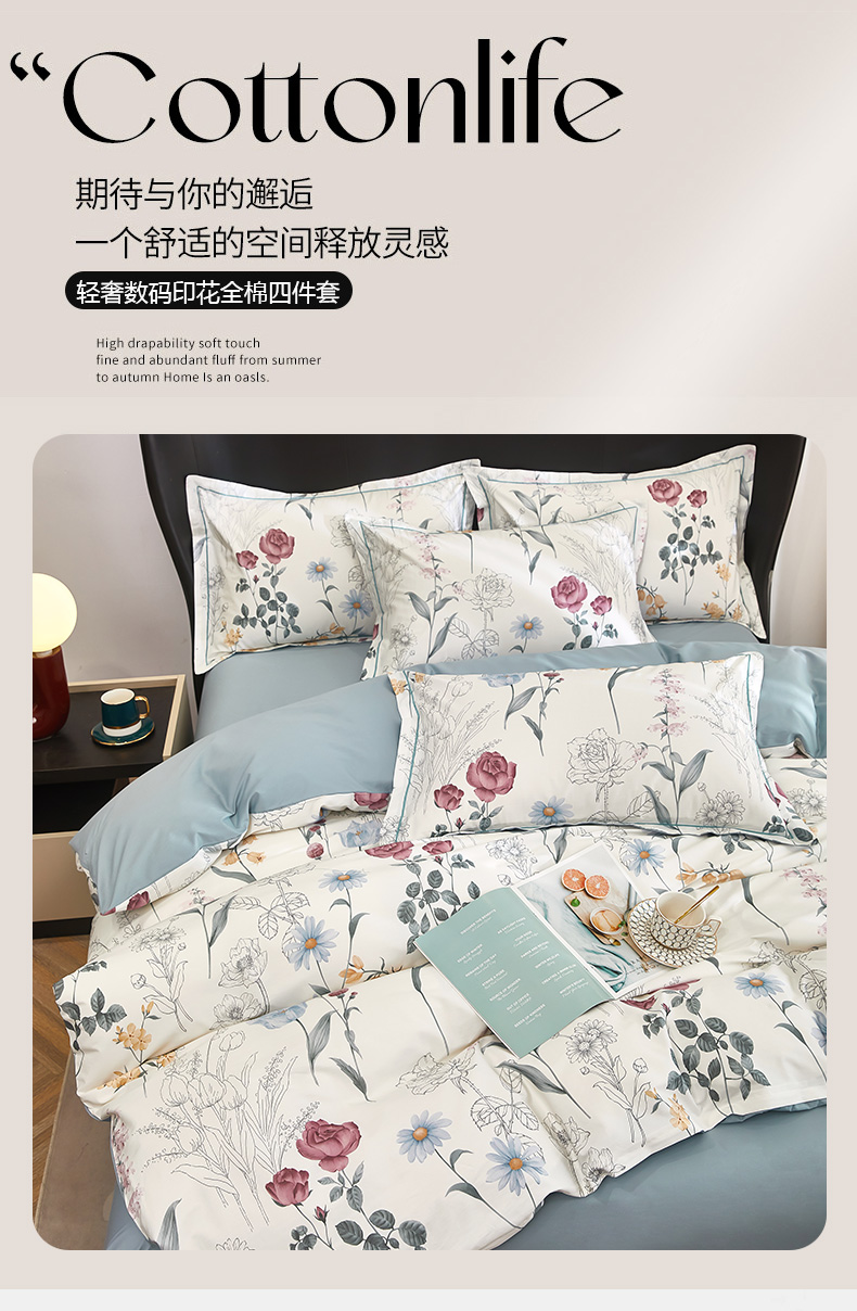 雲归梦 2024新款全棉铂金棉数码印花四件套 暮春美景