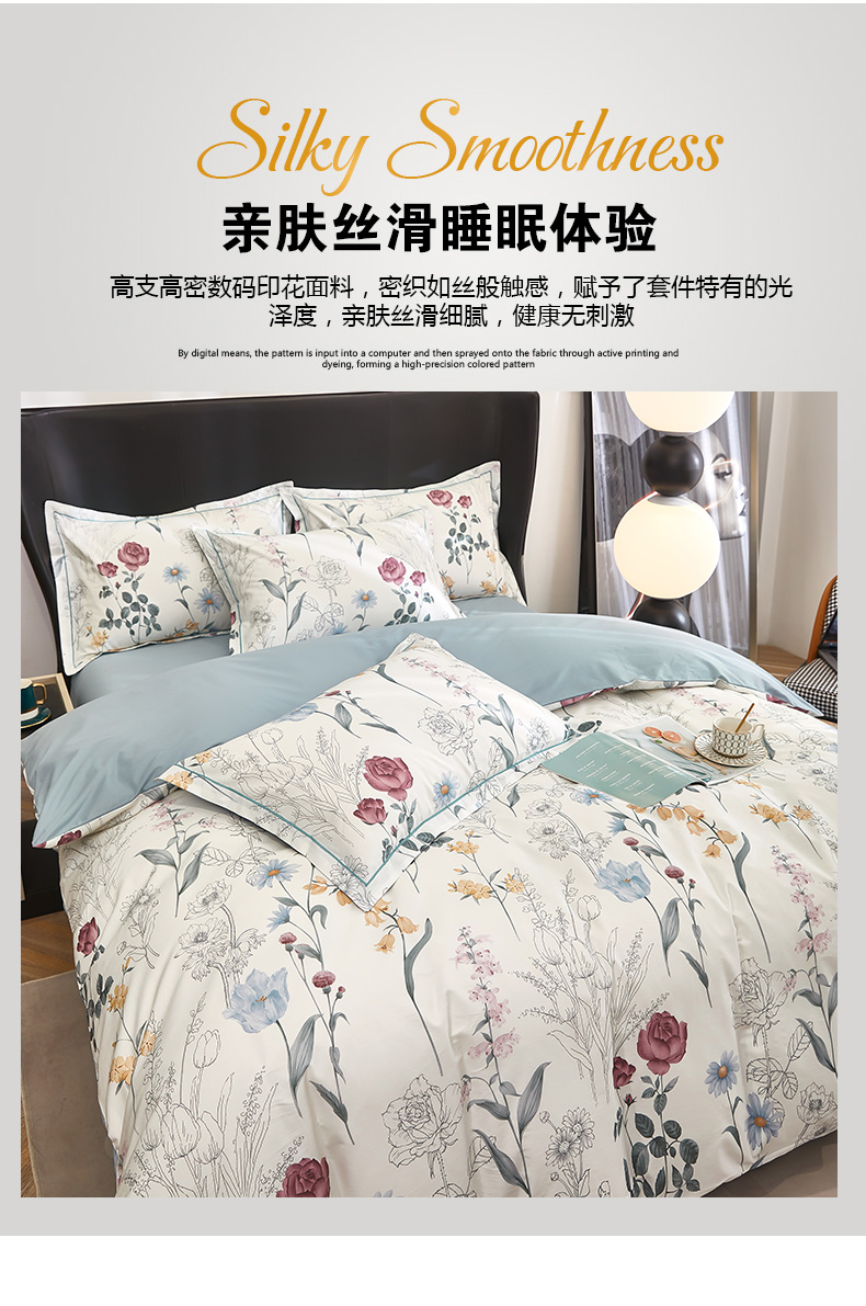 商品名称:雲归梦 2024新款全棉铂金棉数码印花四件套 暮春美景