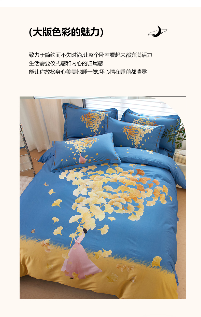商品名称:启航家居 2025春夏直播爆款全棉大版印花四件套 拾光剪影兰