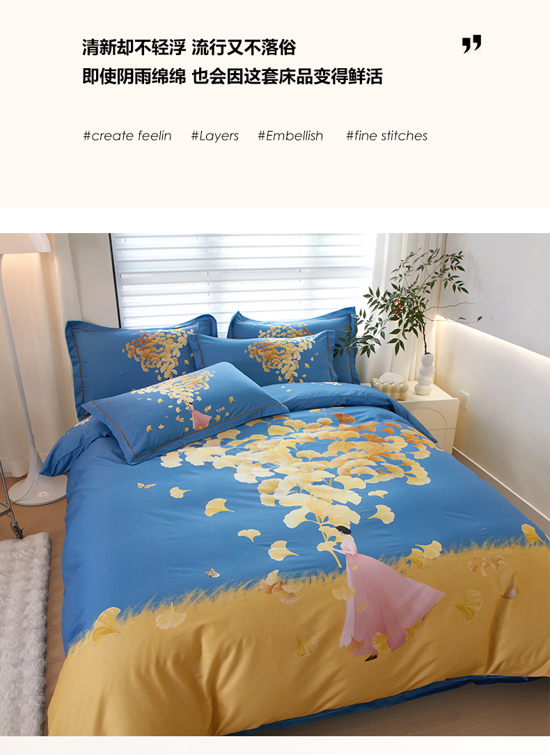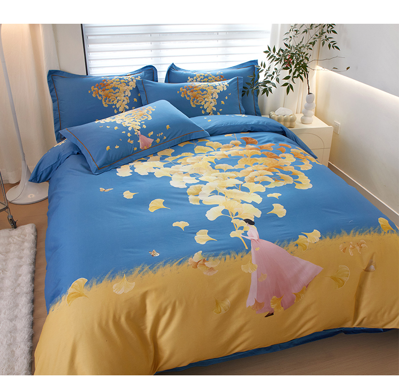 启航家居 2025春夏直播爆款全棉大版印花四件套 拾光剪影兰
