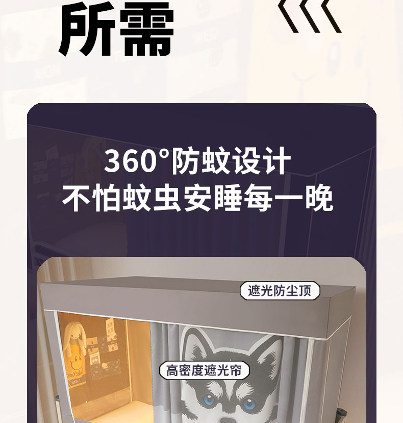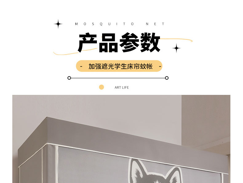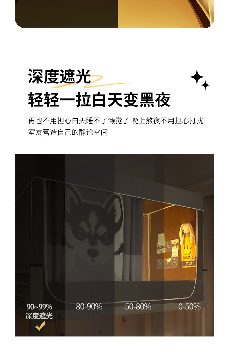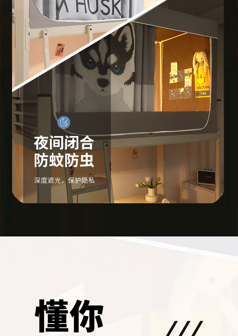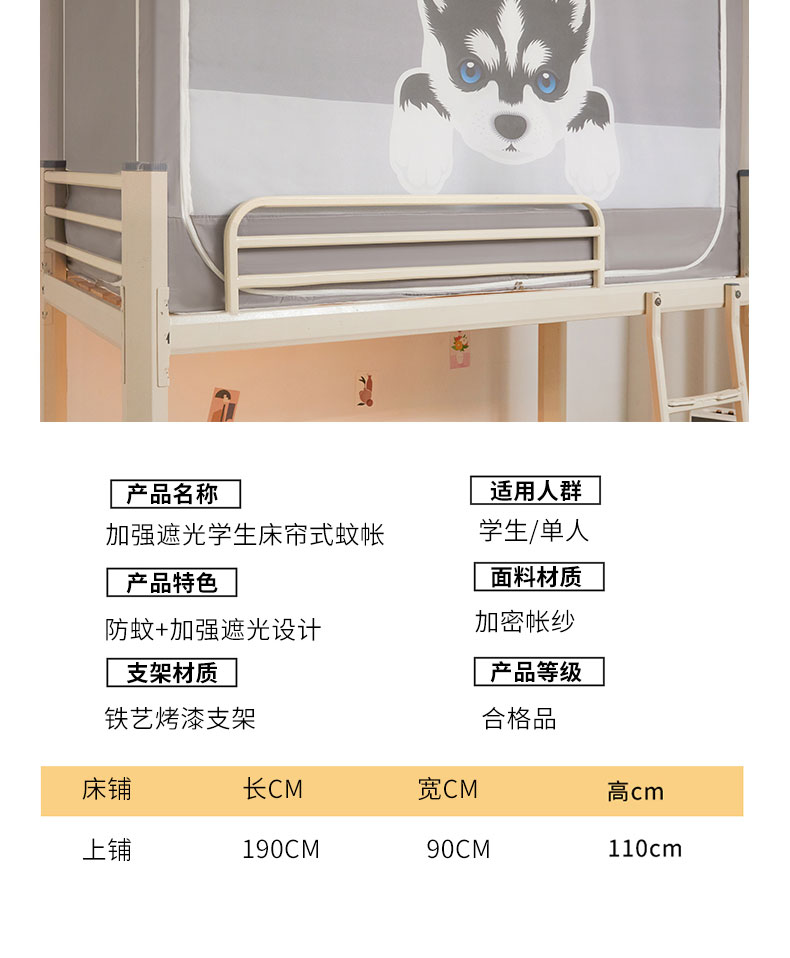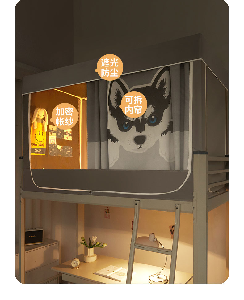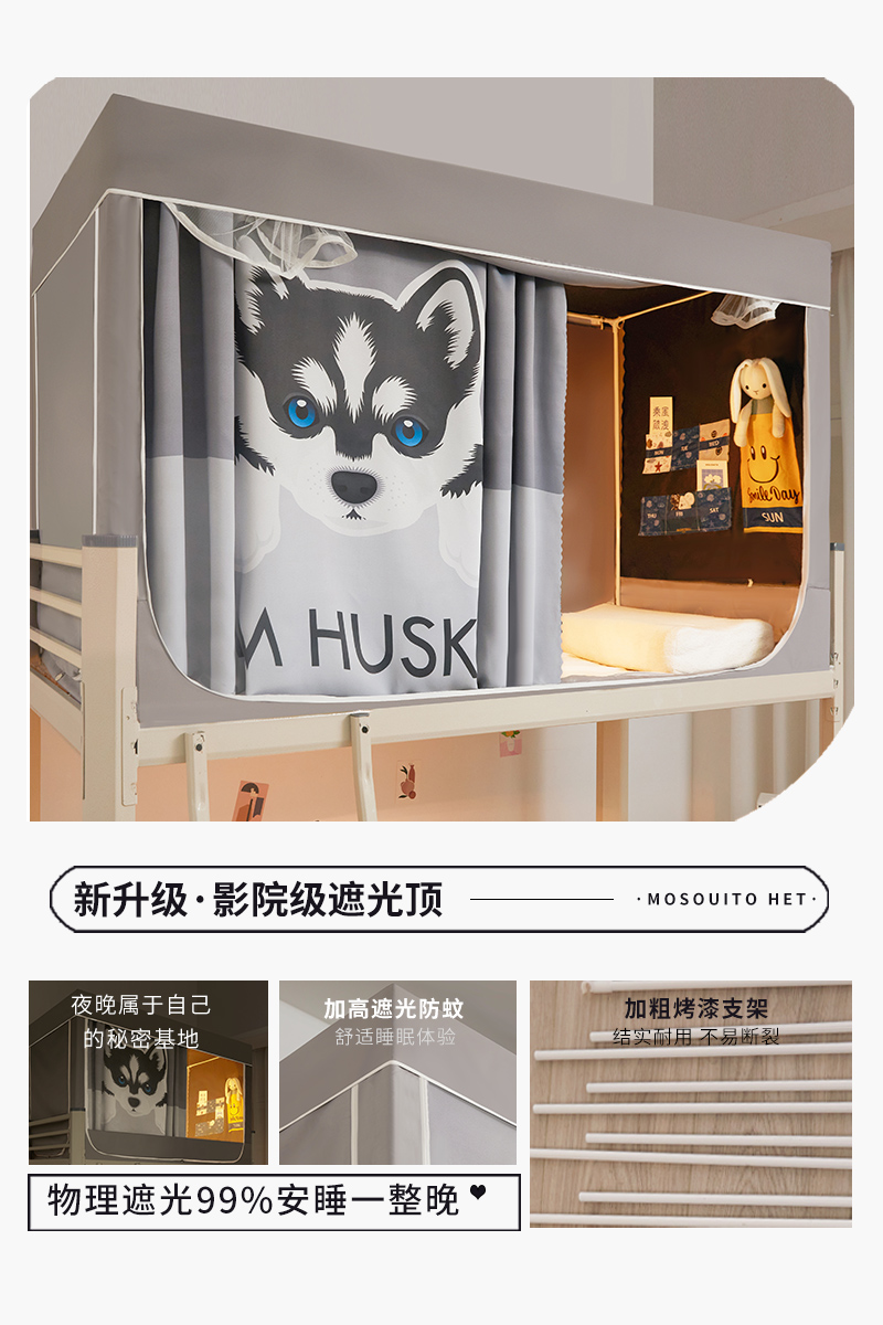 当前位置: 91家纺网 > 商品网购 > 床上用品 > 蚊帐 > 学生蚊帐 > 宅部落 2024新款99%全遮光涂层学生上下铺蚊帐 印花-哈士奇