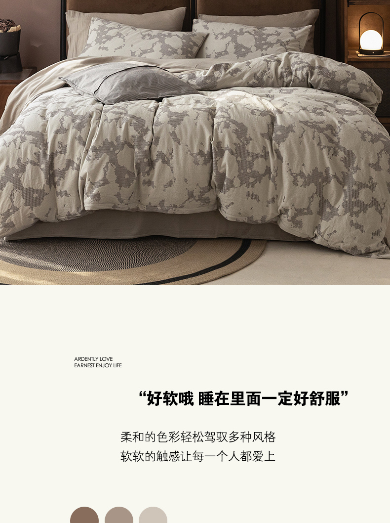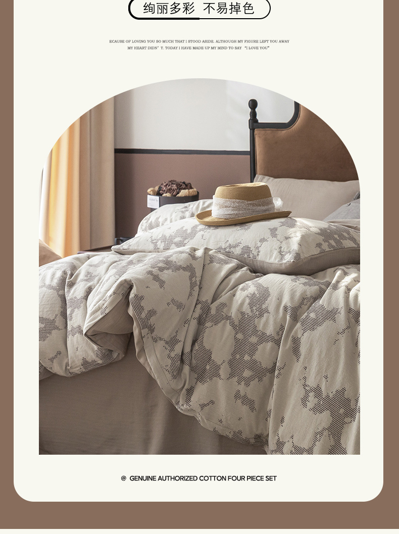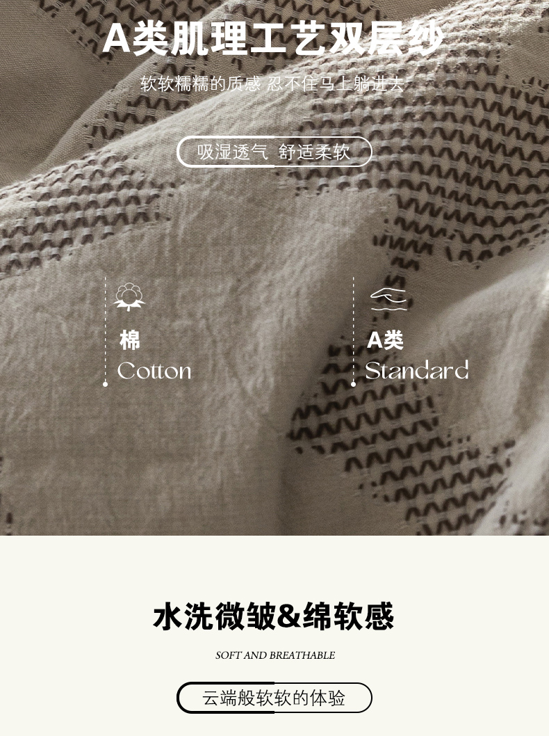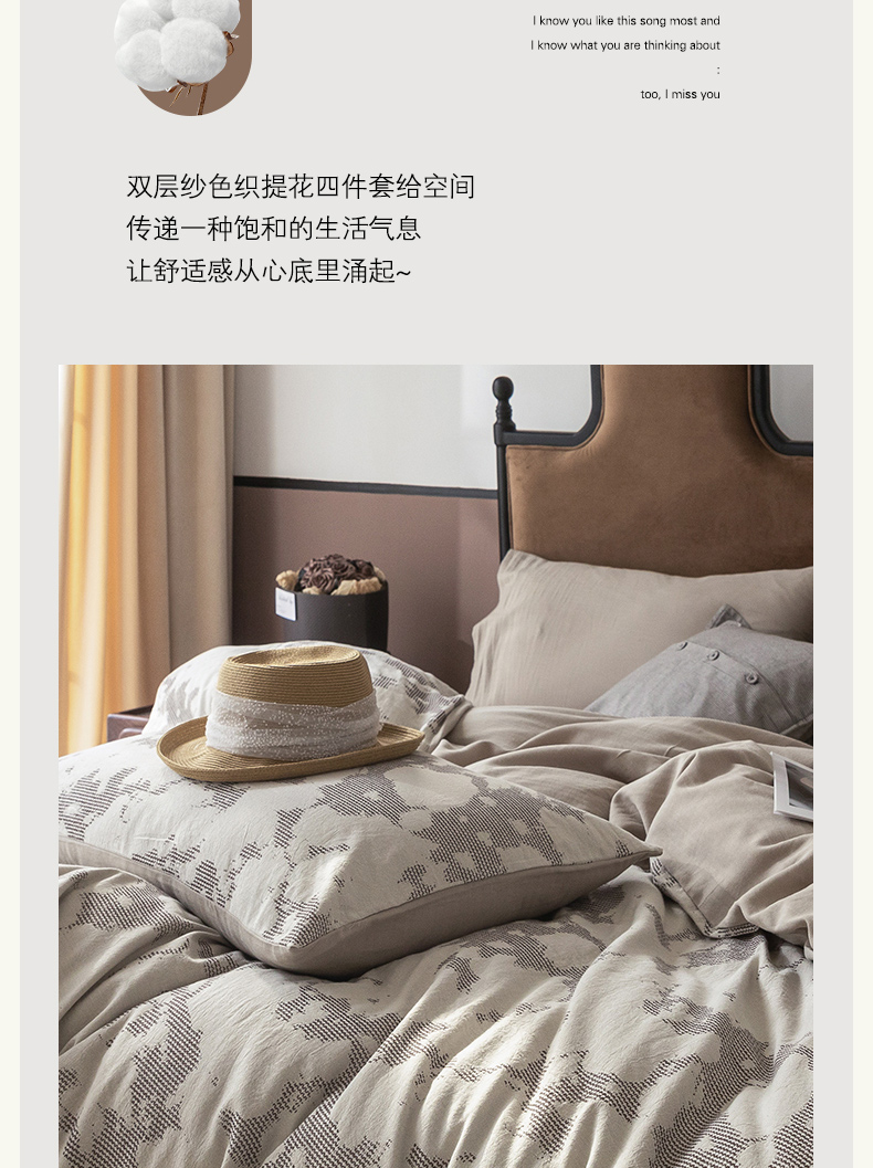 (总)棉邦 2024新款全棉色织工艺双层纱四件套,大展宏图卡其,大展宏图冷灰,大展宏图米白,格高意远灰粽,格高意远卡其,格高意远米白