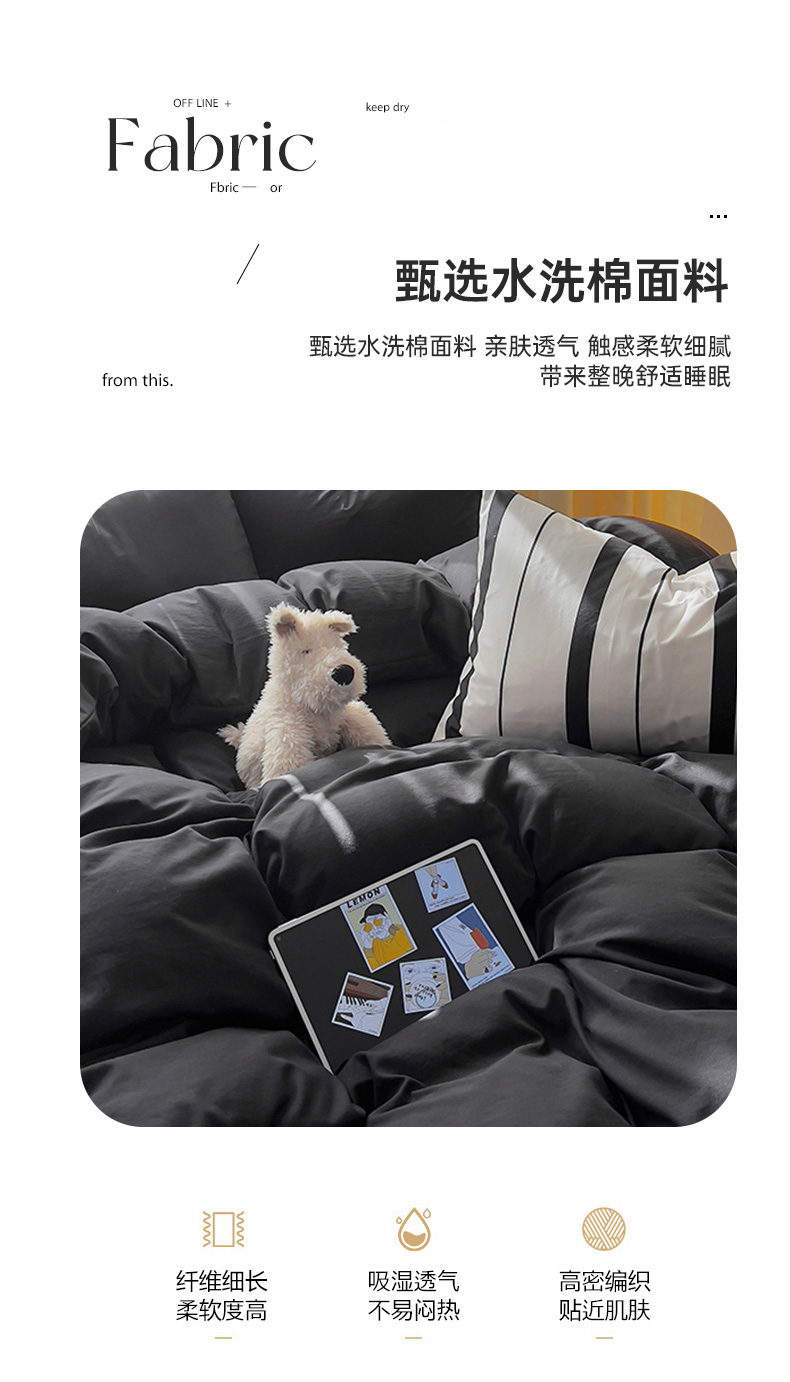 当前位置: 91家纺网 > 商品网购 > 床品套件 > 四件套 > 水洗棉四件套 > 易辰美 2024新款亲肤水洗棉四件套 酷黑色