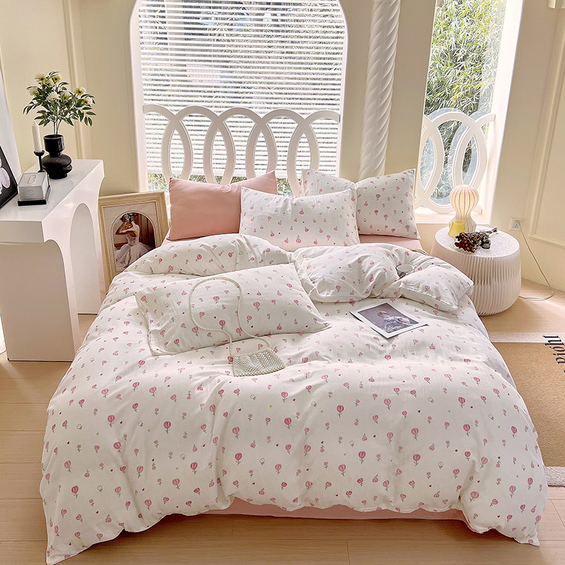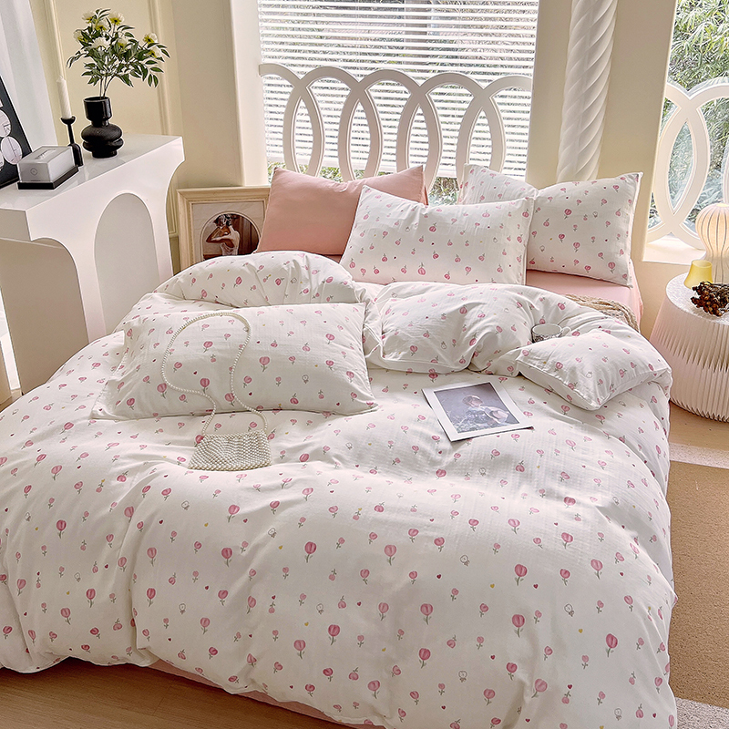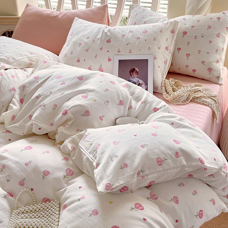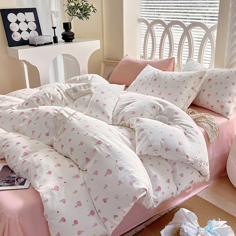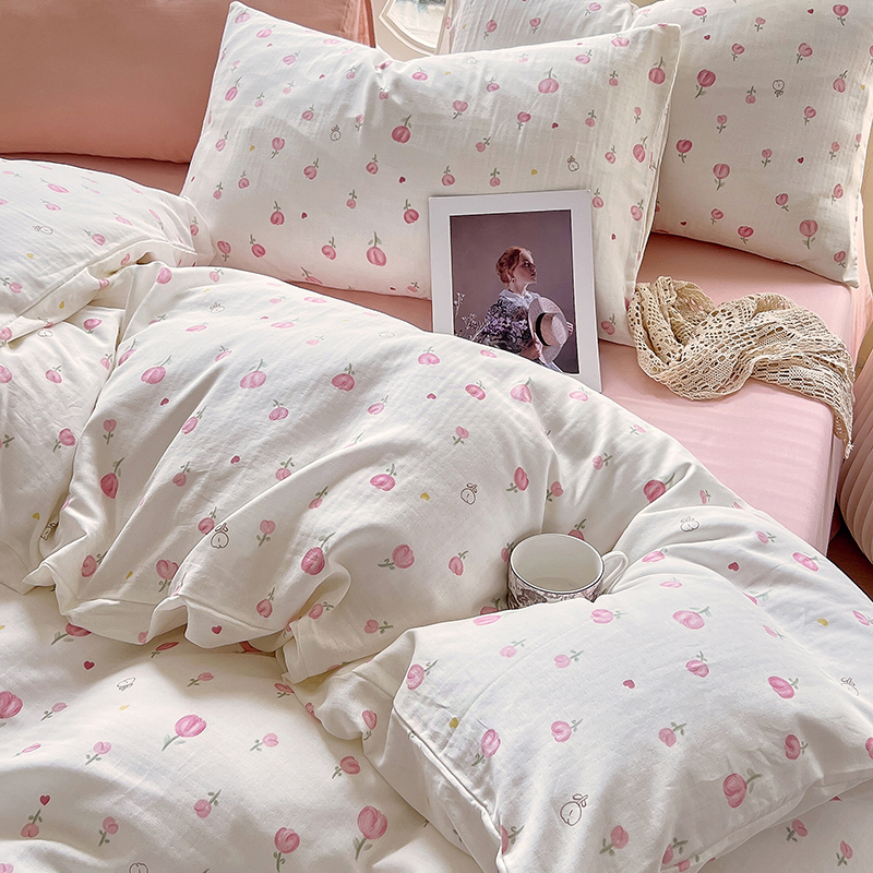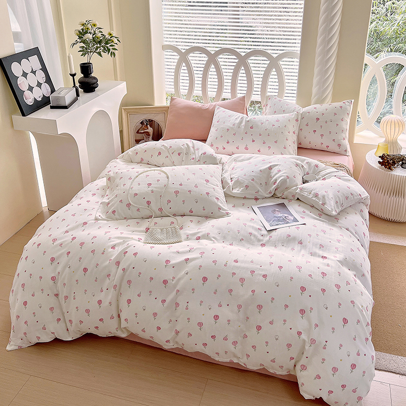 商品名称:于果 2024新款全棉双层纱四件套 粉小花
