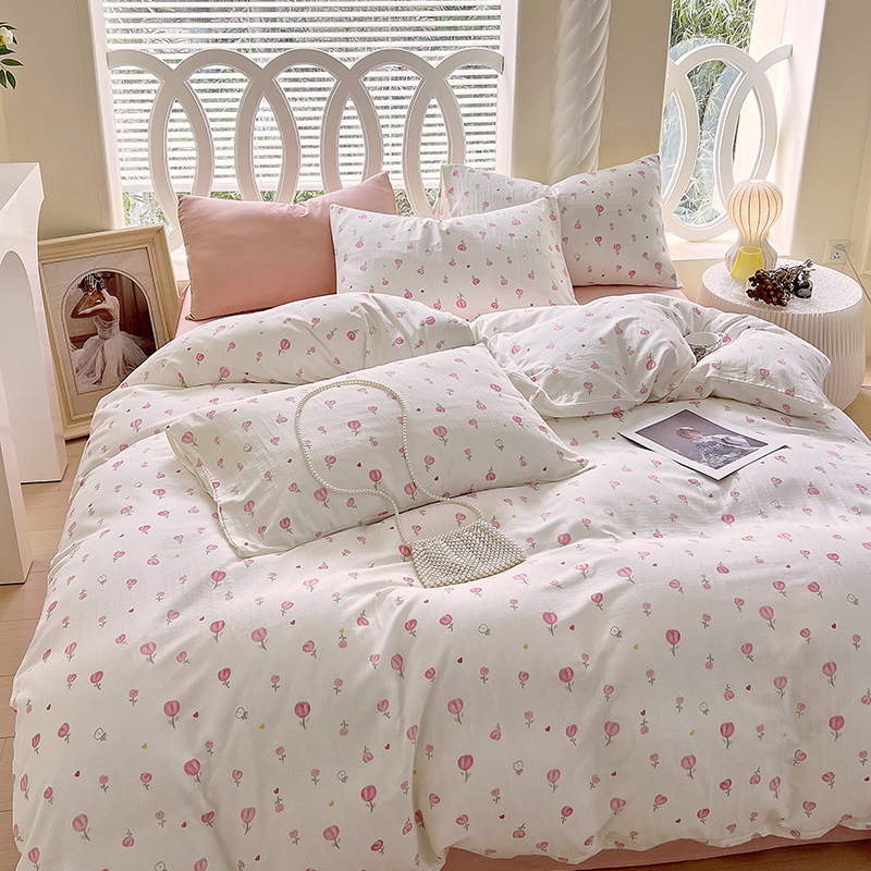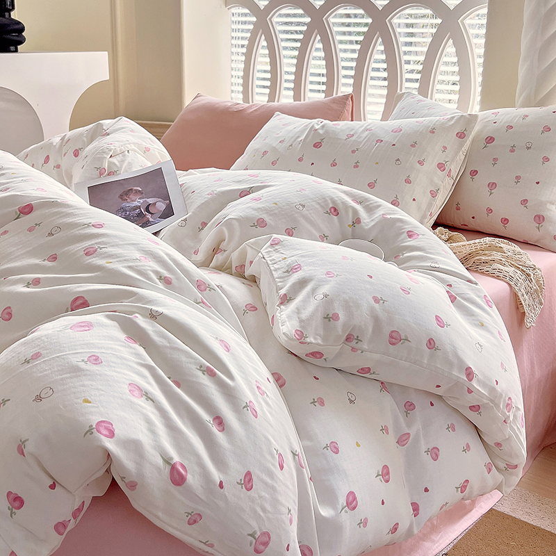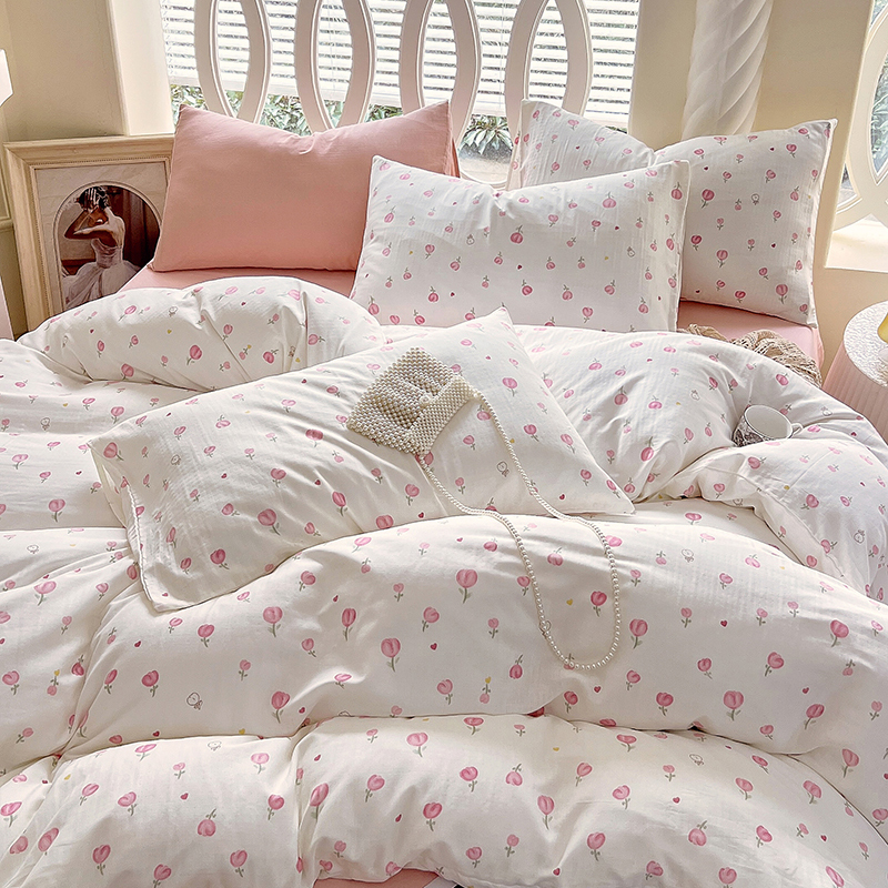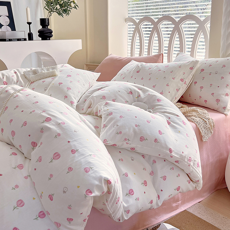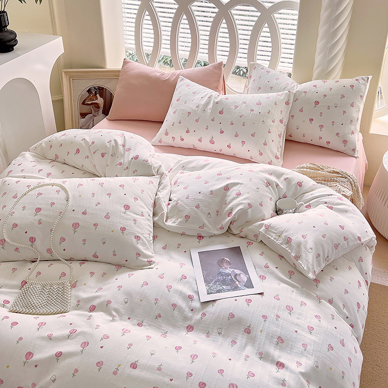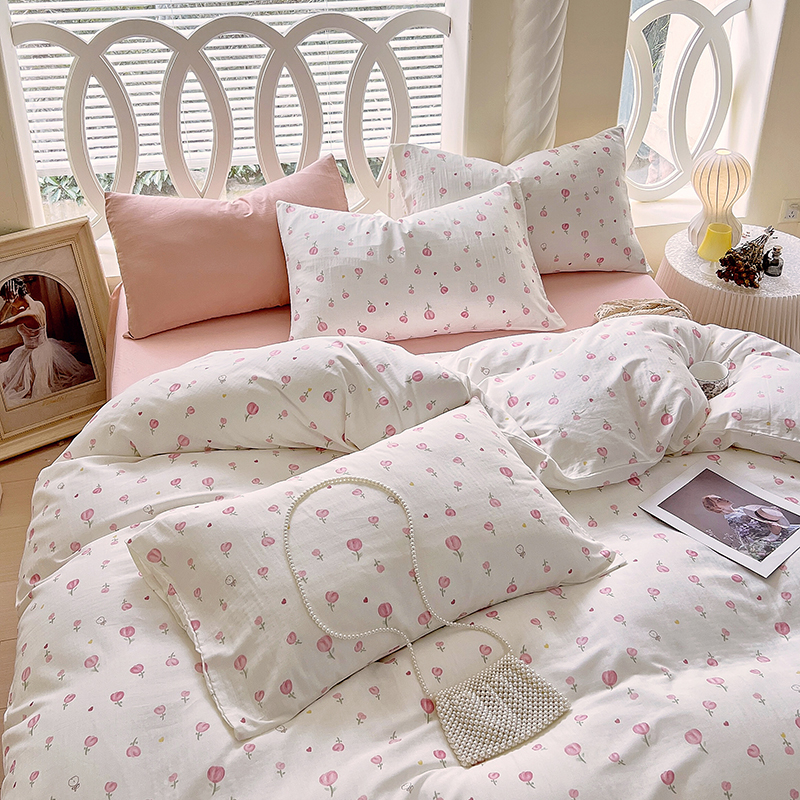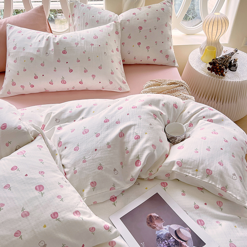 商品名称:于果 2024新款全棉双层纱四件套 粉小花