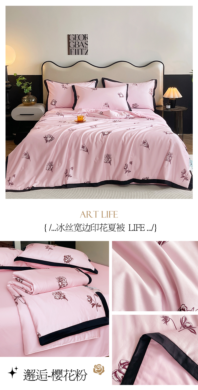 金麦家纺 2024新款冰丝宽边印花夏被子被芯-邂逅系列 邂逅-樱花粉