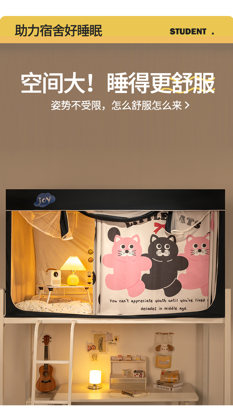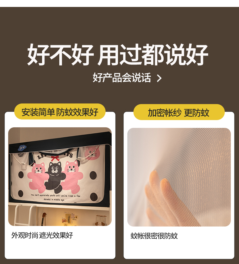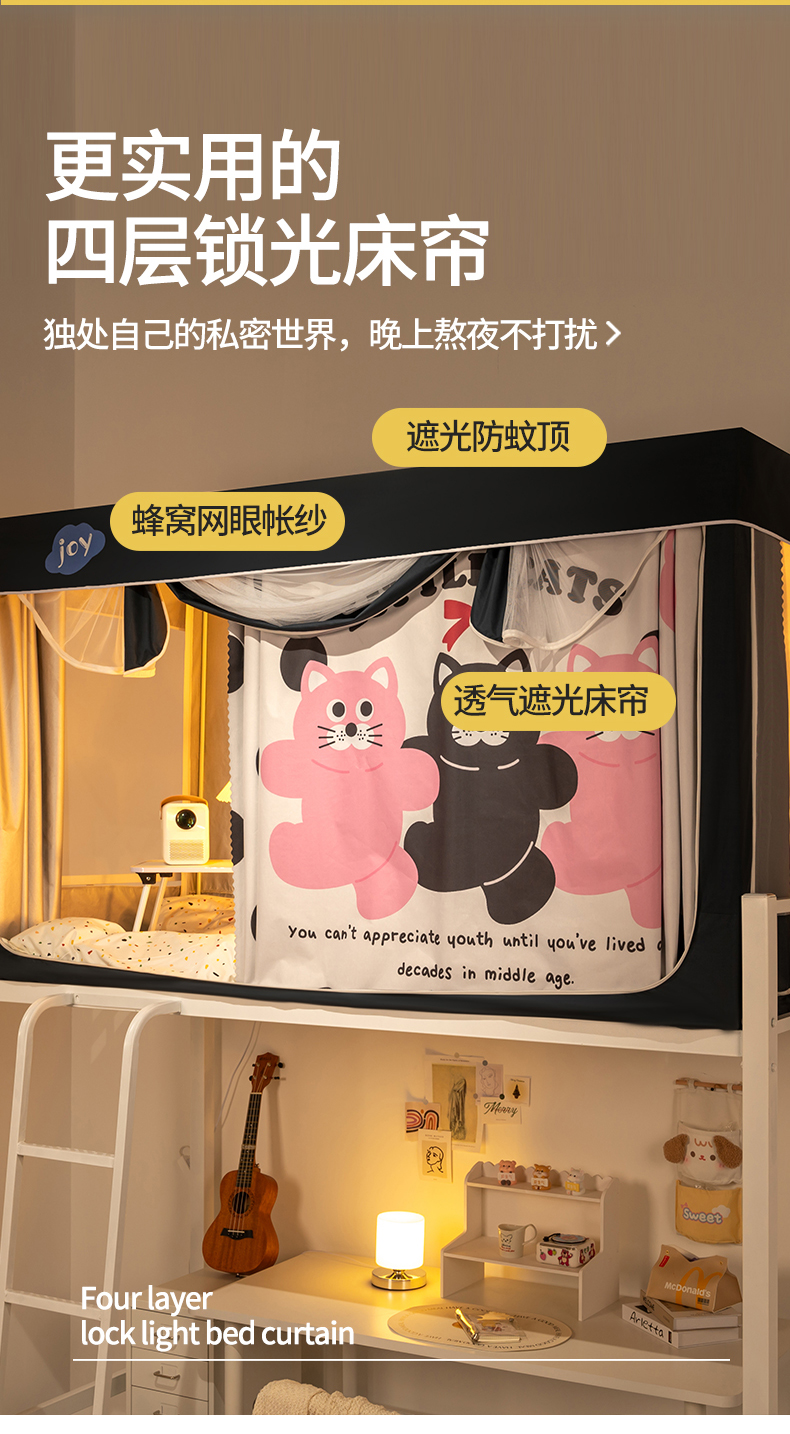 商品名称:新太阳蚊帐 2025新款涂层遮光防蚊款学生床帘 芭蕾猫咪