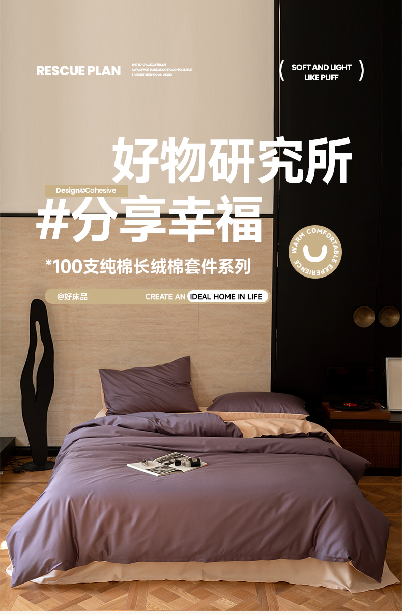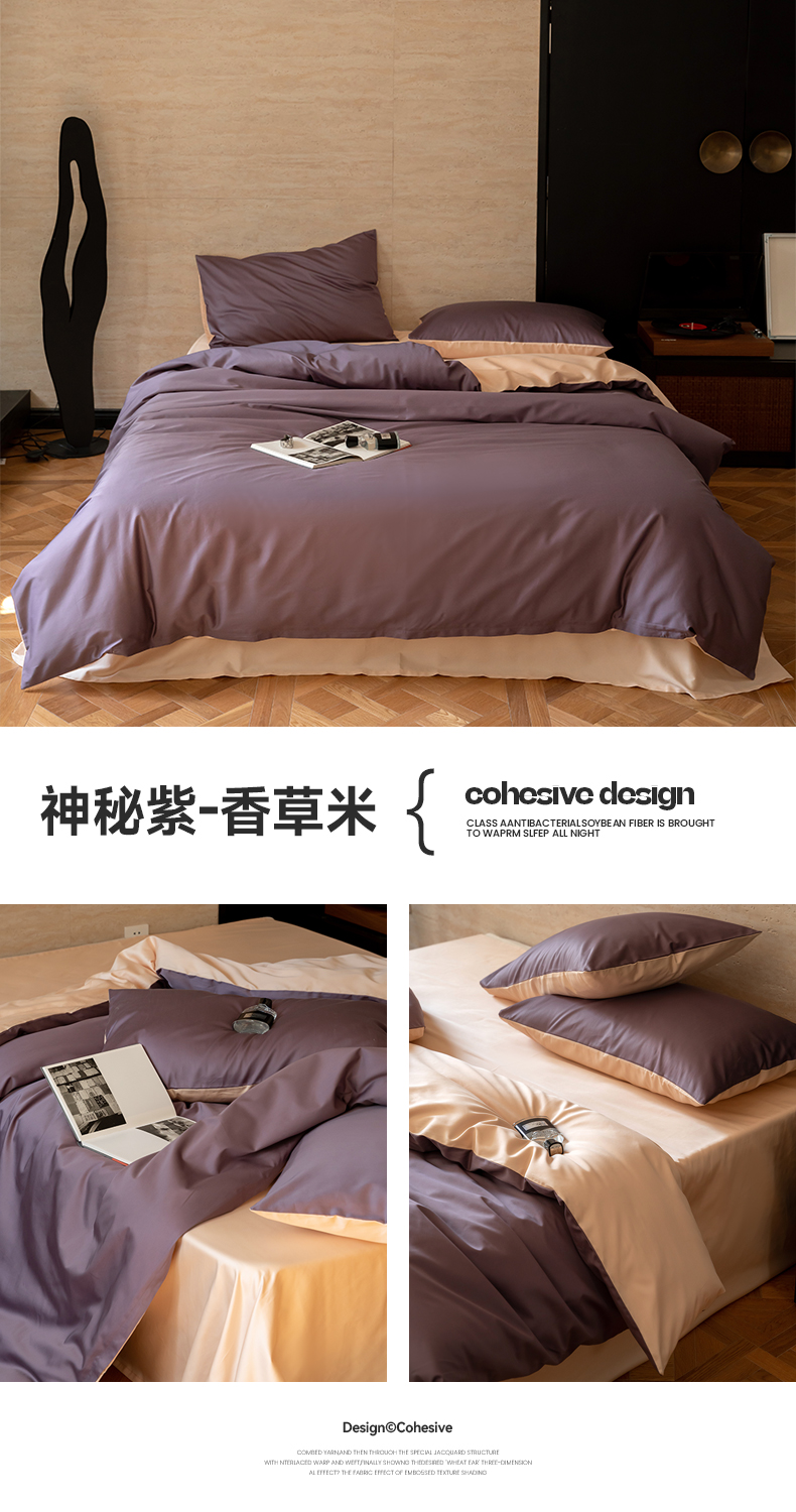 当前位置: 91家纺网 > 商品网购 > 床品套件 > 四件套 > 长绒棉四件套 > 寐眠 2024新款100支长绒棉纯色双拼四件套 神秘紫-香草米
