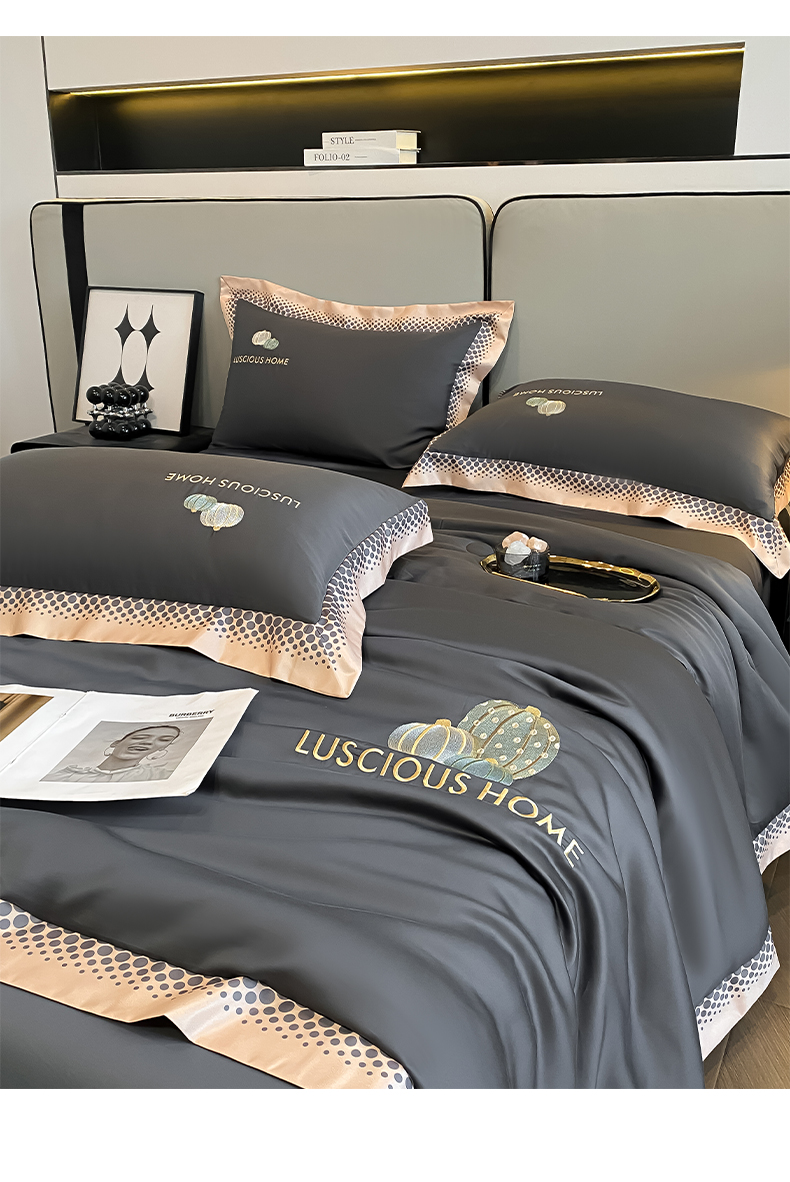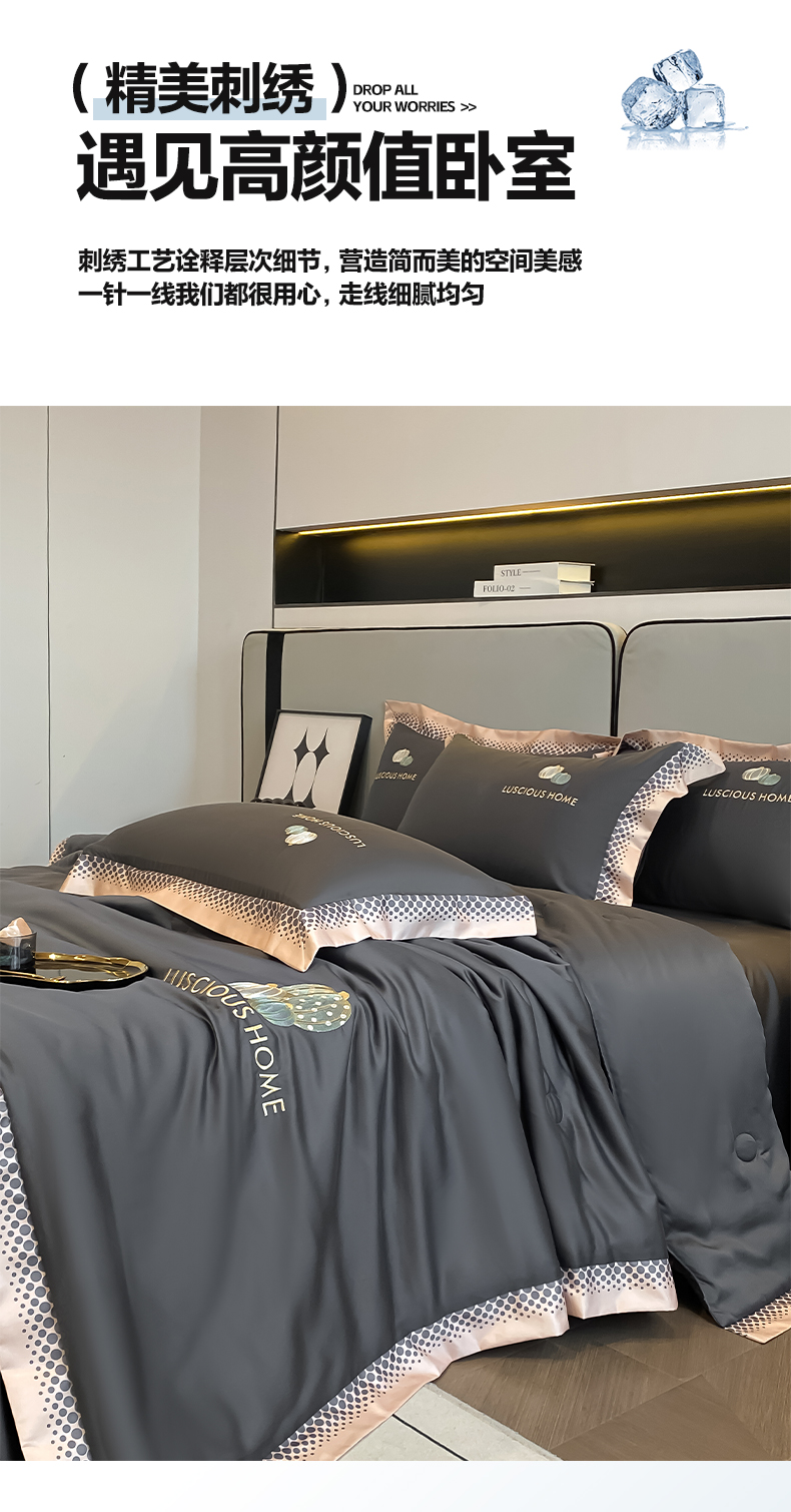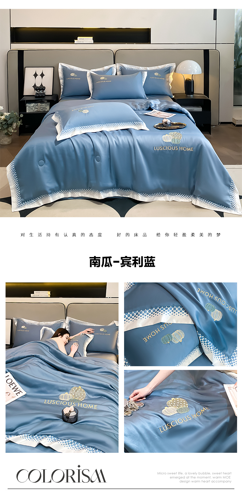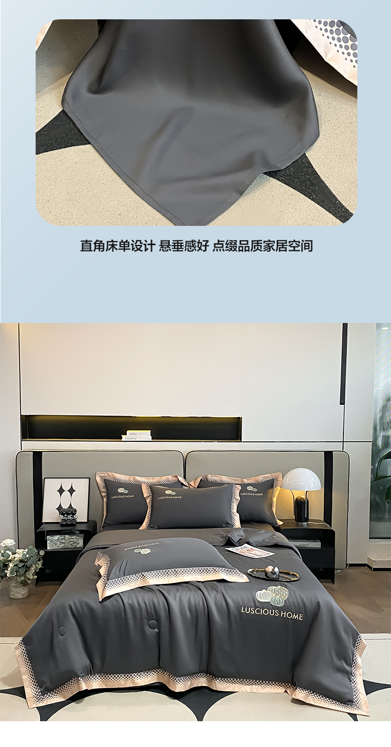 • 91家纺网 家纺一手货源 找家纺 如一 2024新款南瓜系列水洗冰丝夏被四件套 南瓜-高级灰