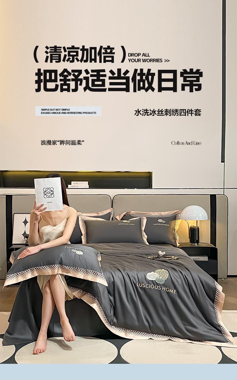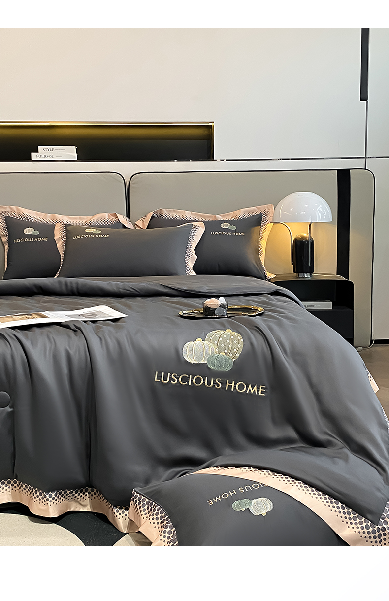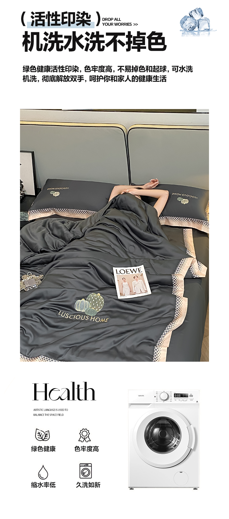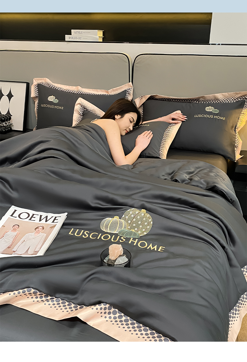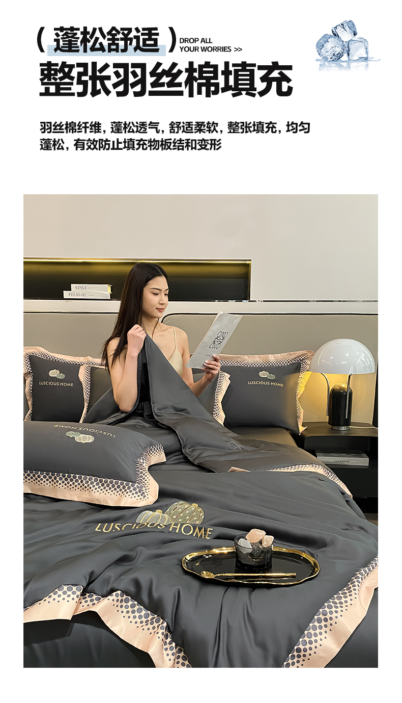 • 91家纺网 家纺一手货源 找家纺 如一 2024新款南瓜系列水洗冰丝夏被四件套 南瓜-高级灰