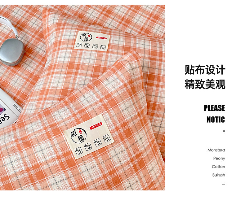 商品名称:2025新款水洗棉麻单层枕套宿舍枕芯内胆套枕头套-简约格子 线条格-粉玉