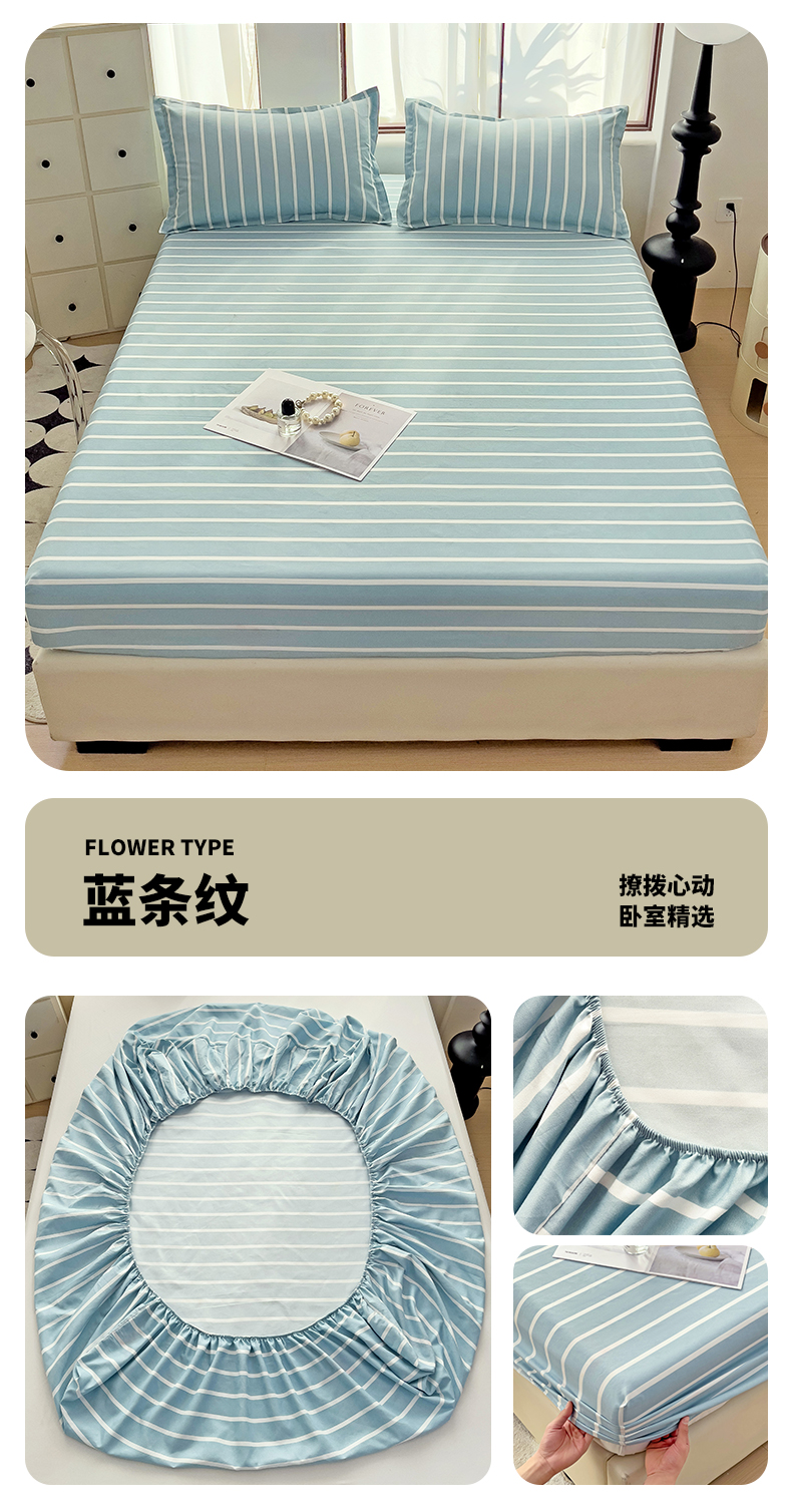 好亿来家纺 2025新款亲肤磨毛单层床笠 蓝条纹