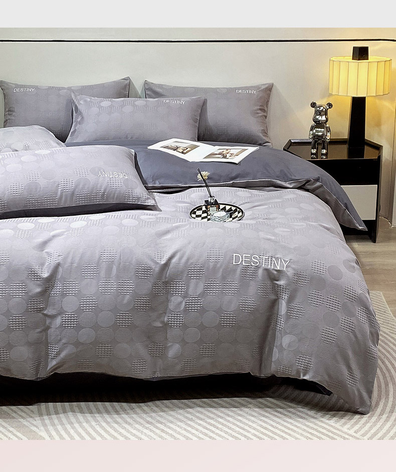全棉华夫格提花四件套纯棉刺绣床上用品 团圆-中灰