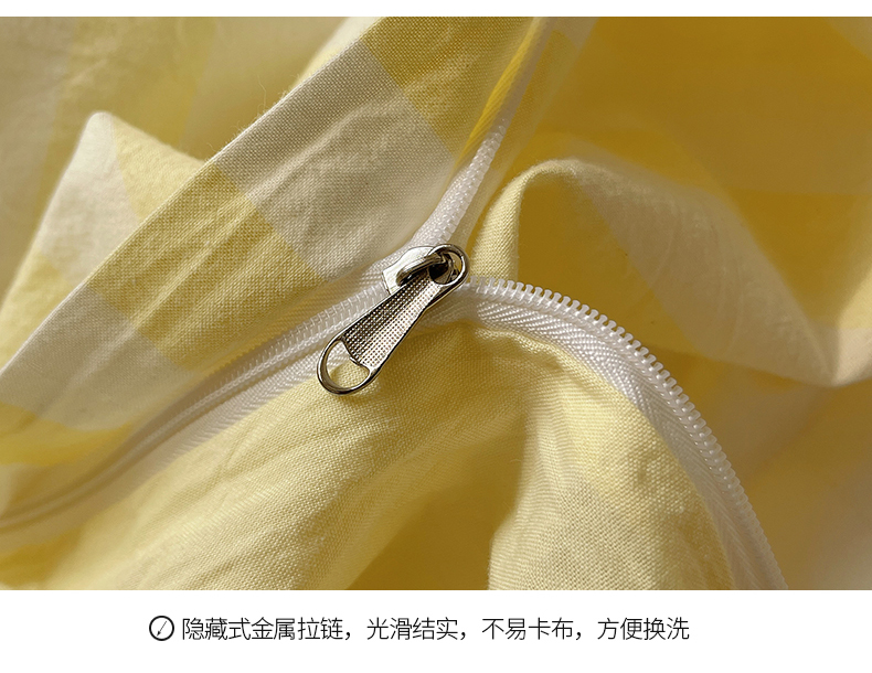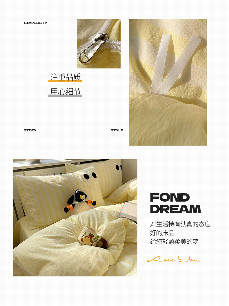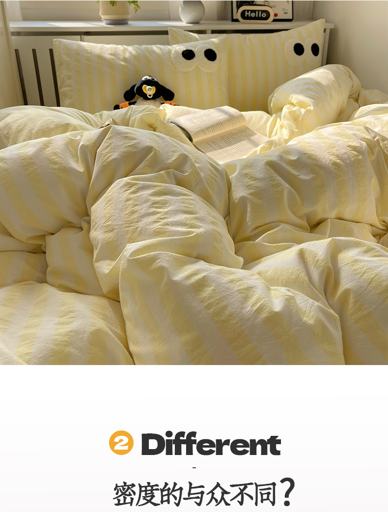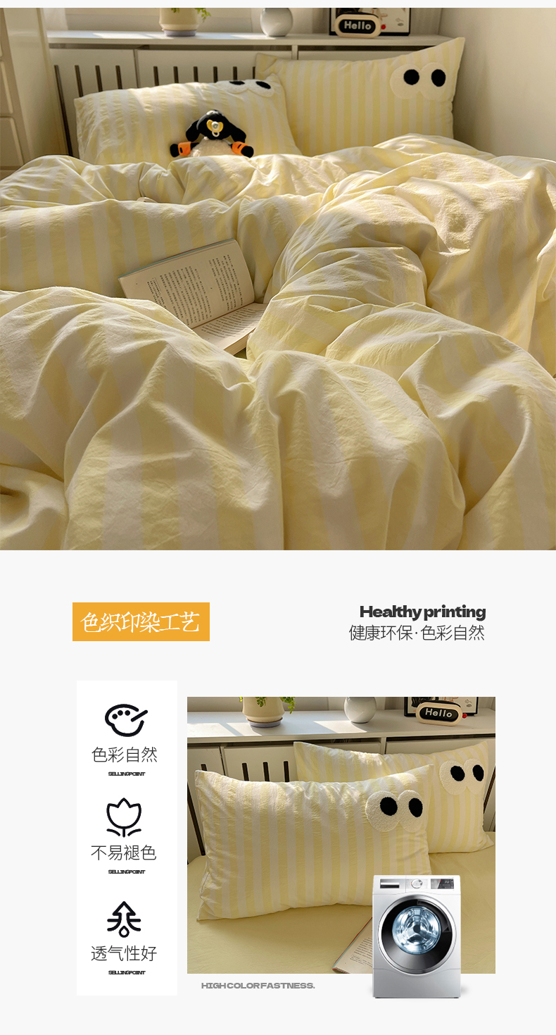 商品名称:桃子 2024新款ins大眼睛毛巾绣韩系奶油无印纯棉色织水洗棉少女宽宽条系列四件套 水洗棉-宽宽条黄
