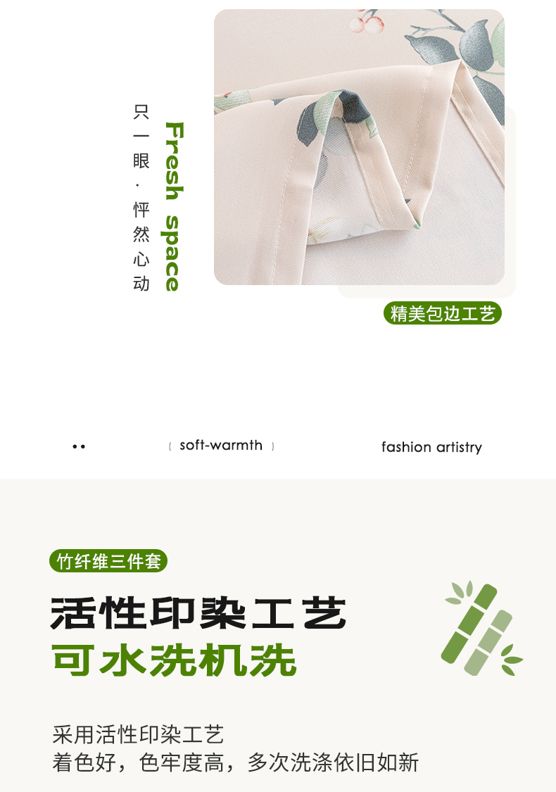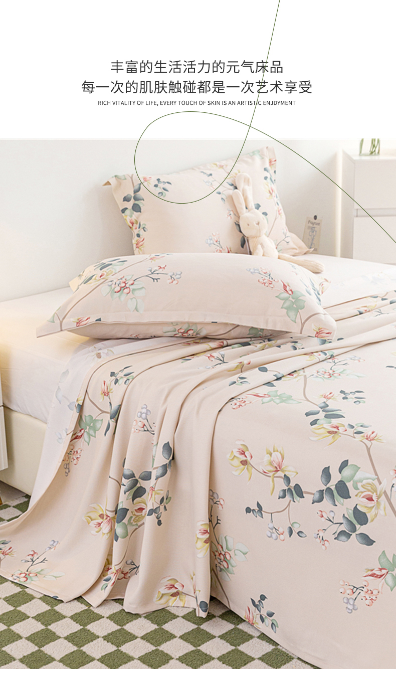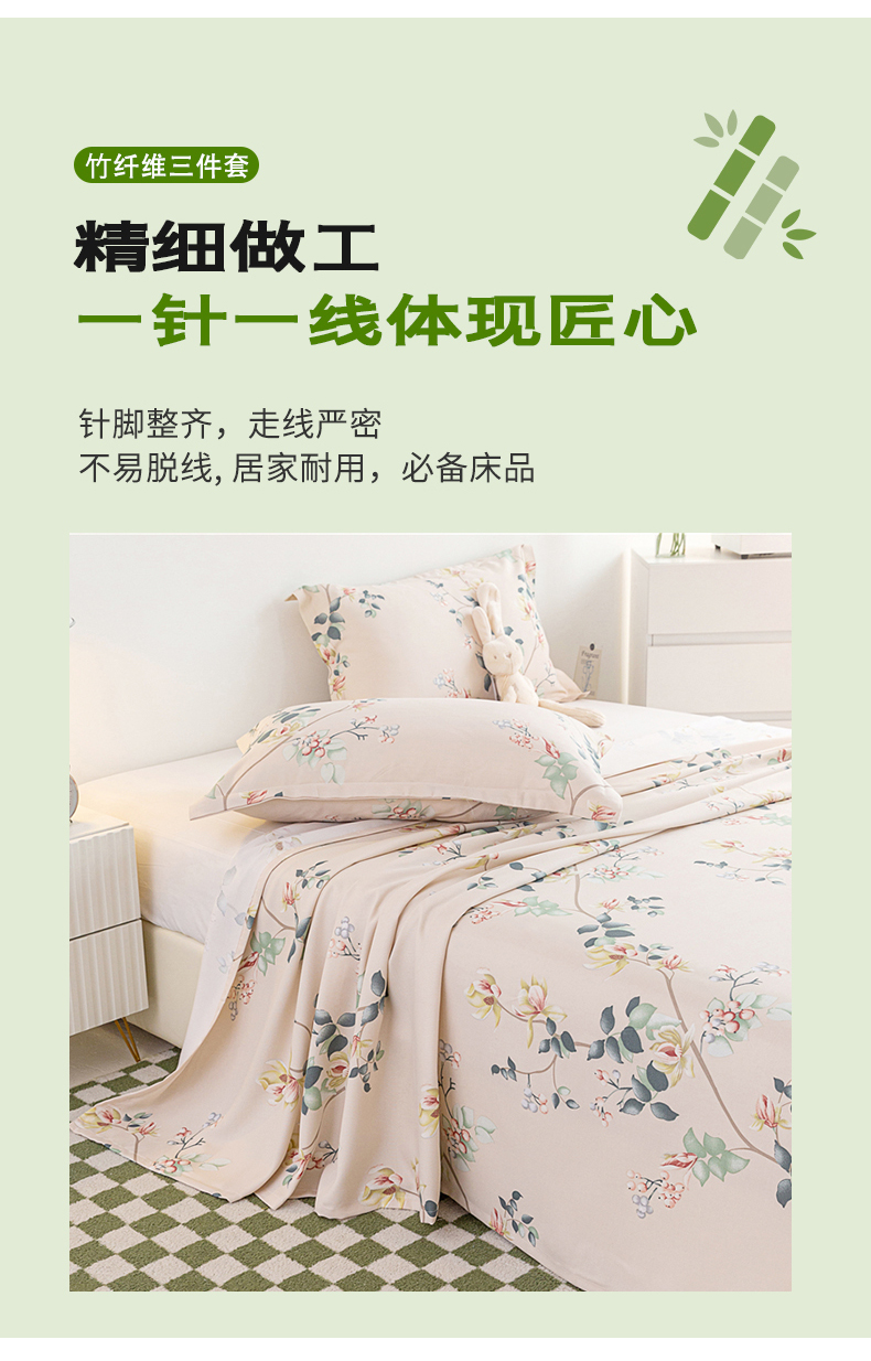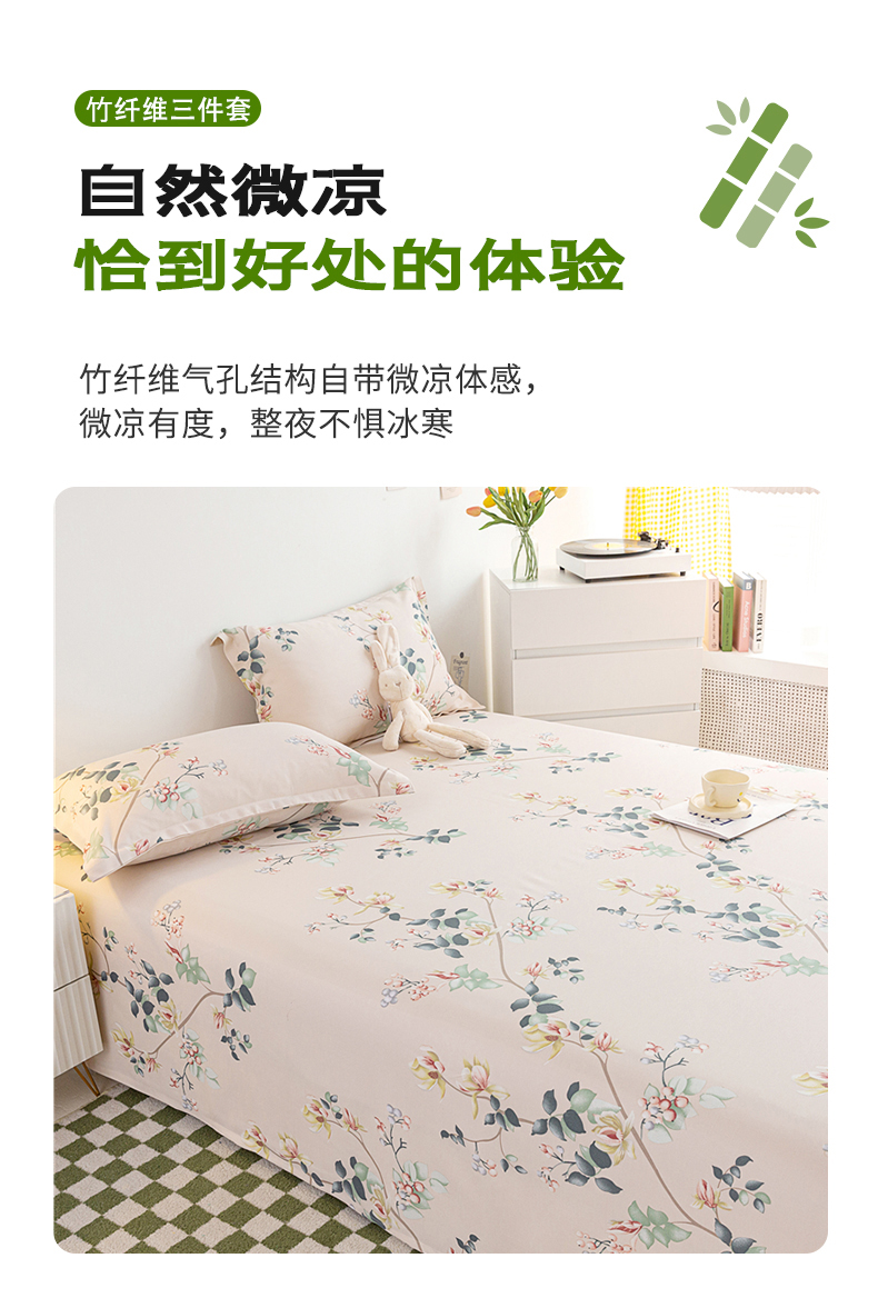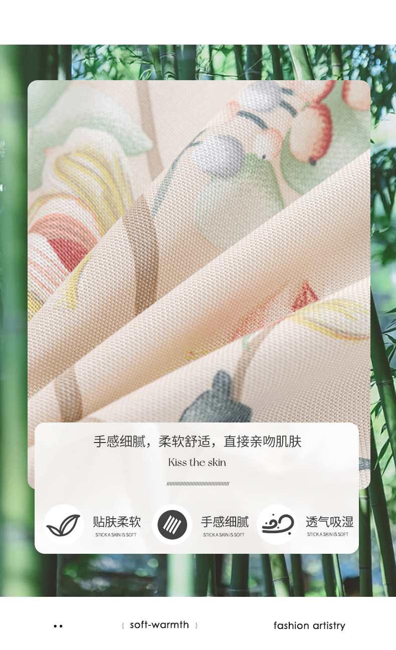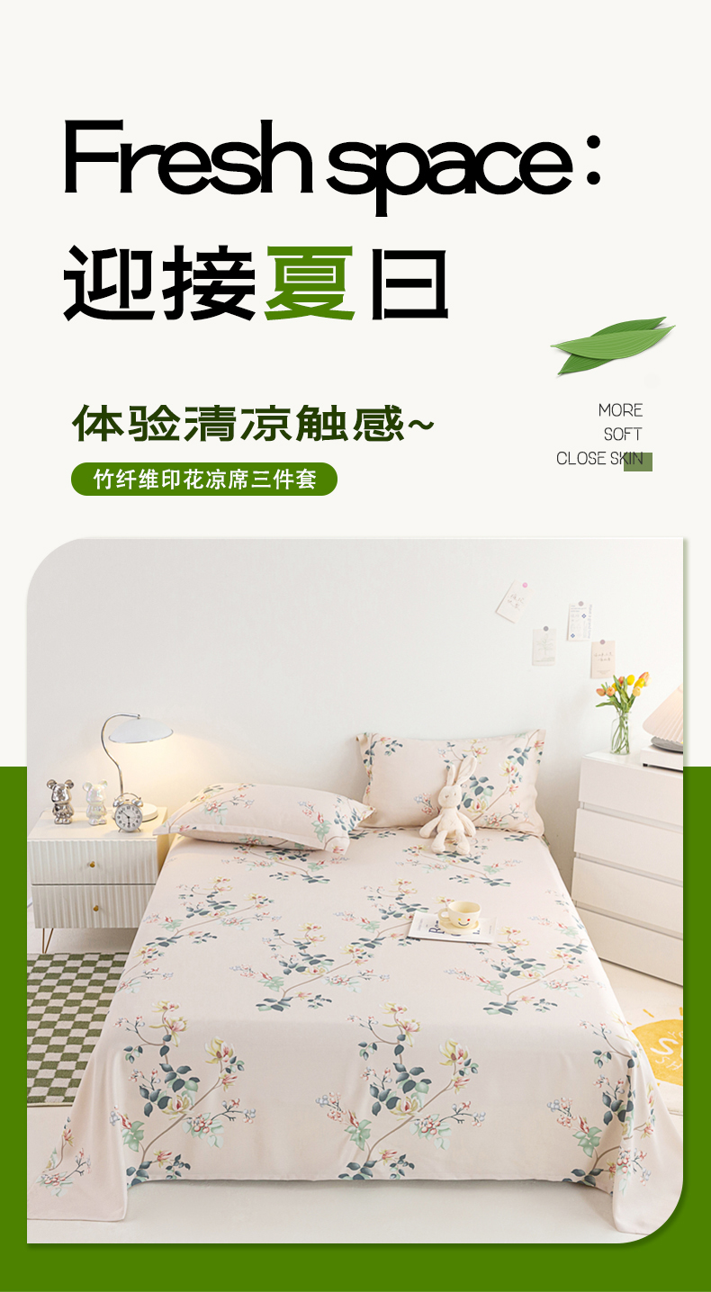 商品名称:金泰莱 2025新款印花竹纤维凉席三件套软凉席竹席盖毯子 夏末时光
