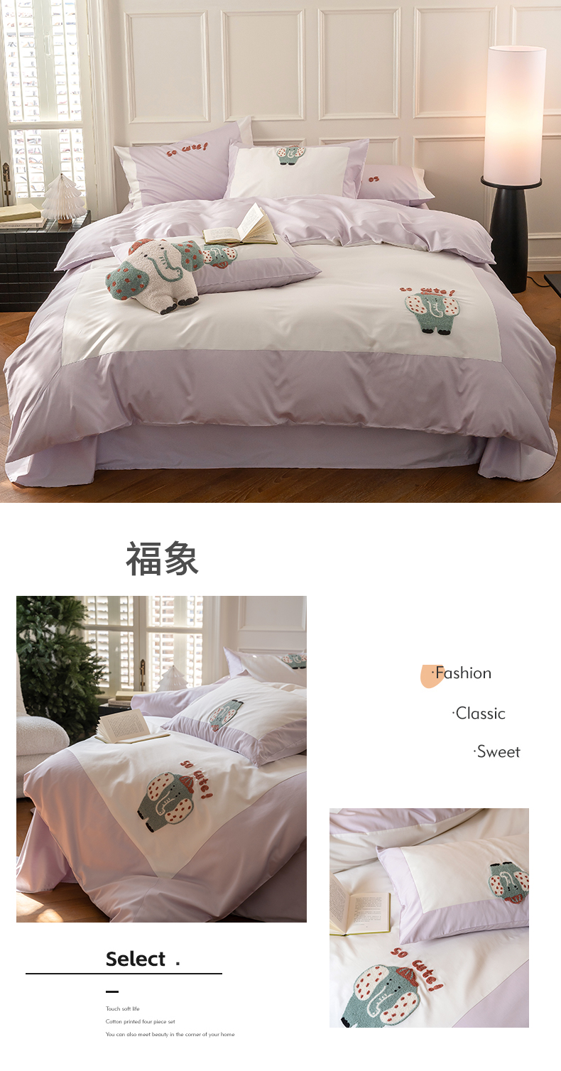 商品名称:泽西家纺 2024新款全棉水洗棉毛巾绣大拼角四件套 福象