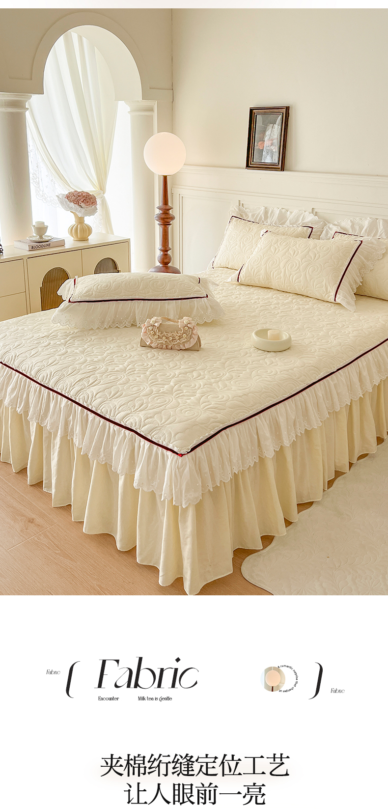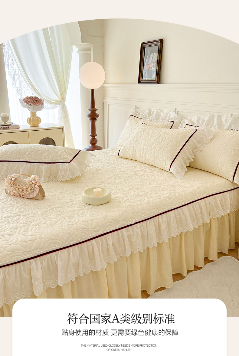 (总)麒豆豆 2025新款全棉蕾丝边床裙款床笠-晨暮花间,晨暮花间-绯红,晨暮花间-粉色,晨暮花间-麦绿,晨暮花间-米色,晨暮花间-浅紫,晨暮花间-雾蓝
