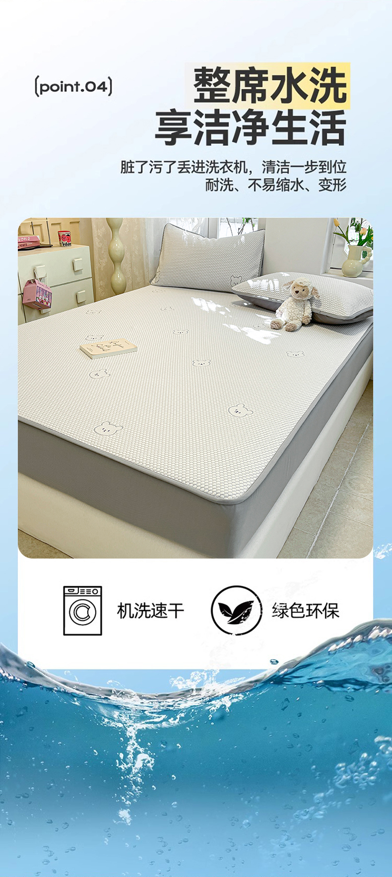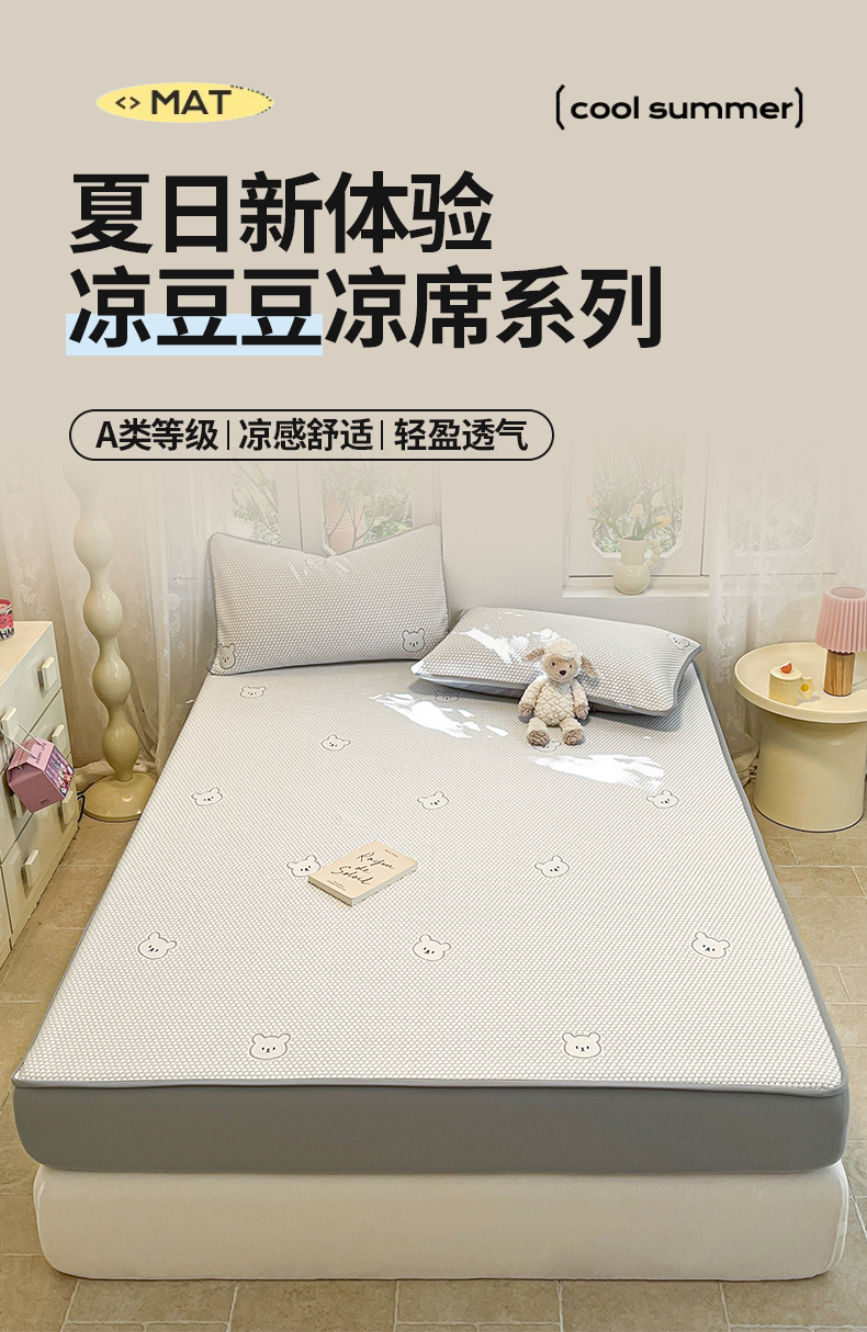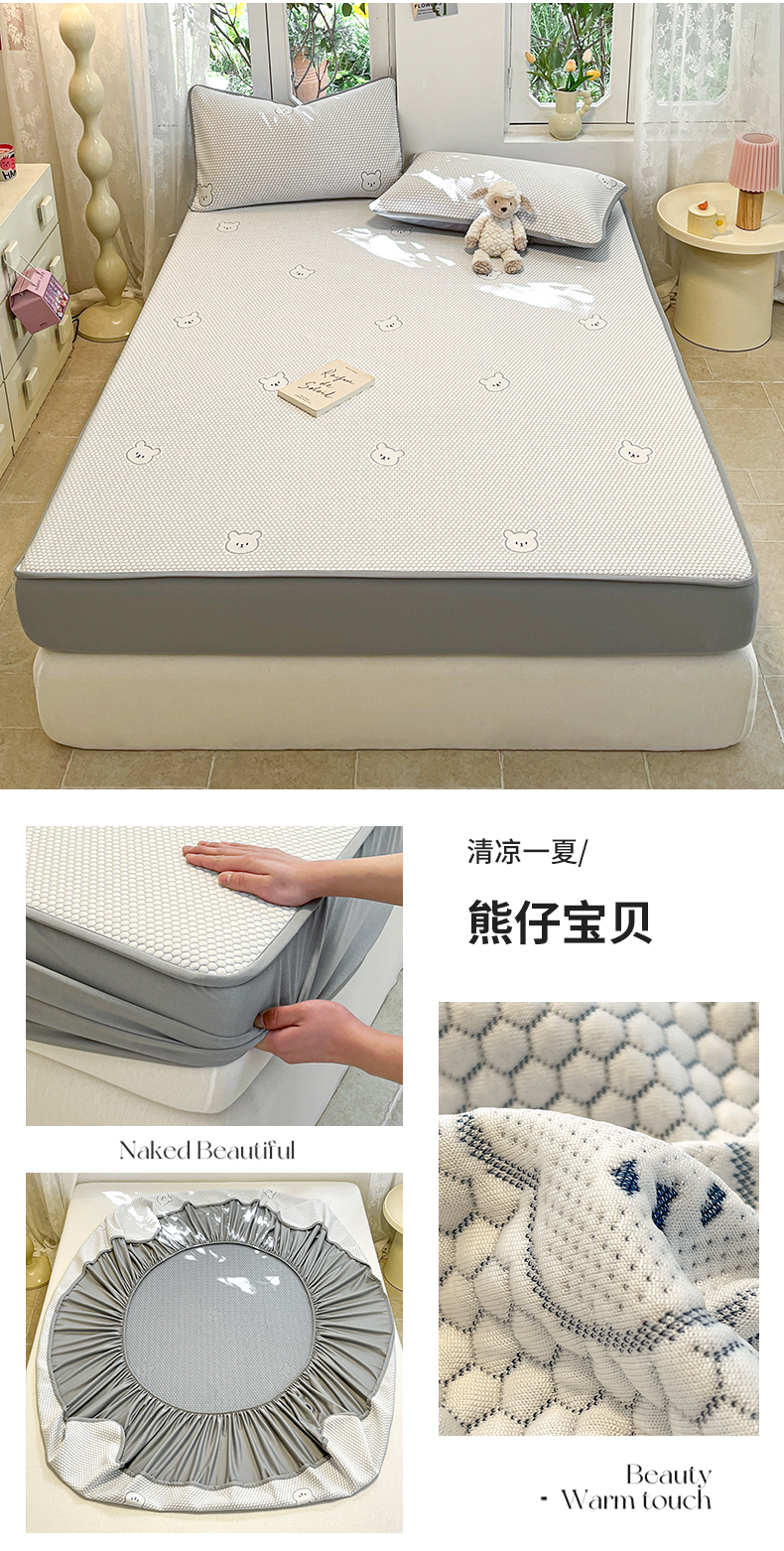 商品名称:启程家纺 2024春夏A类凉豆豆凉席床笠款凉席套件 熊仔宝贝