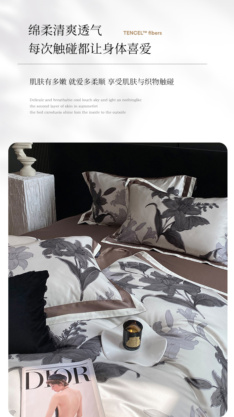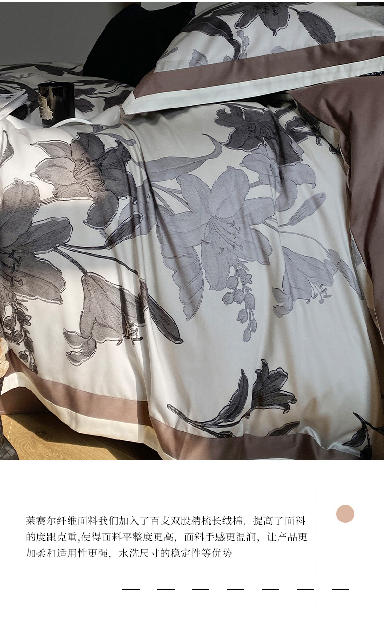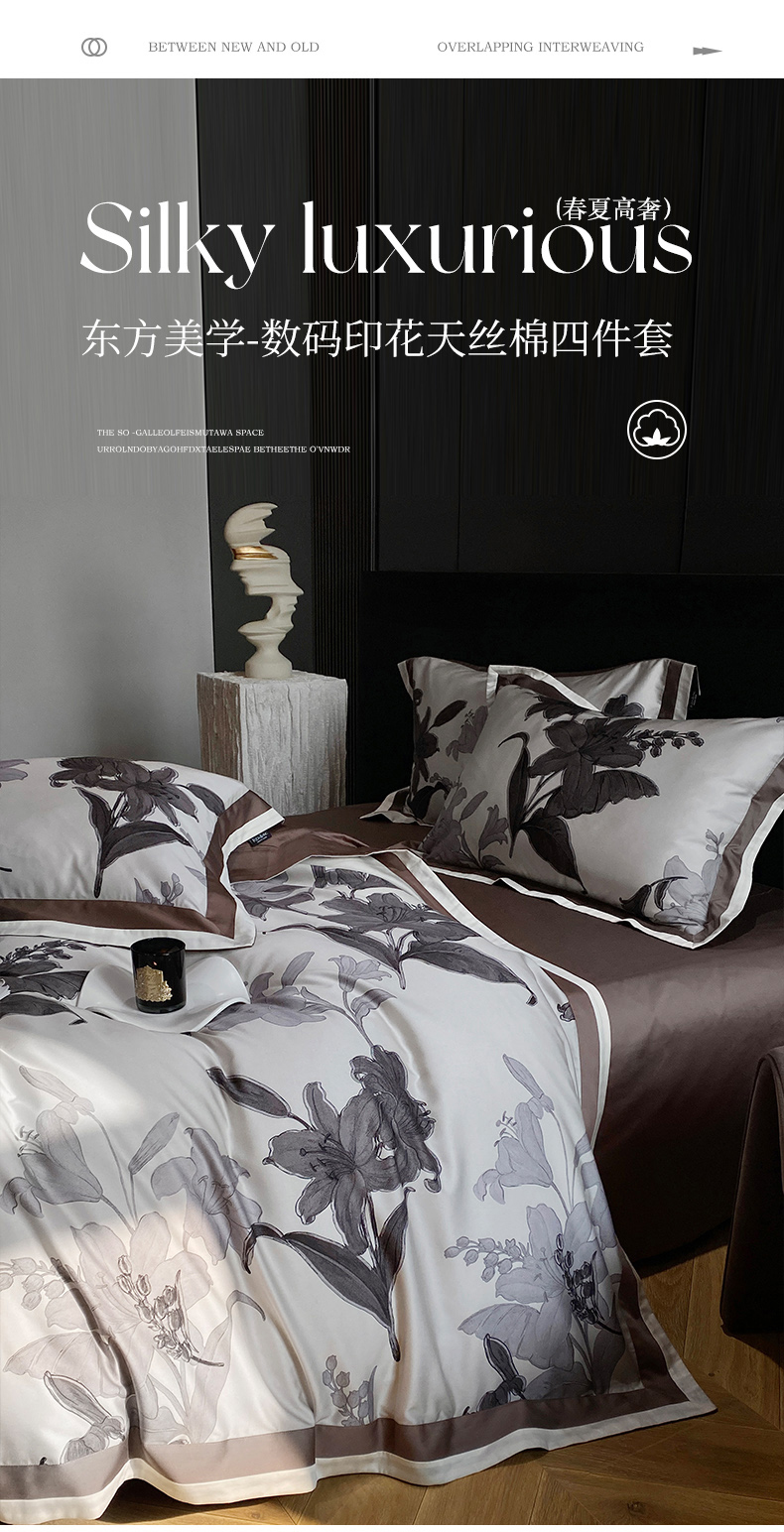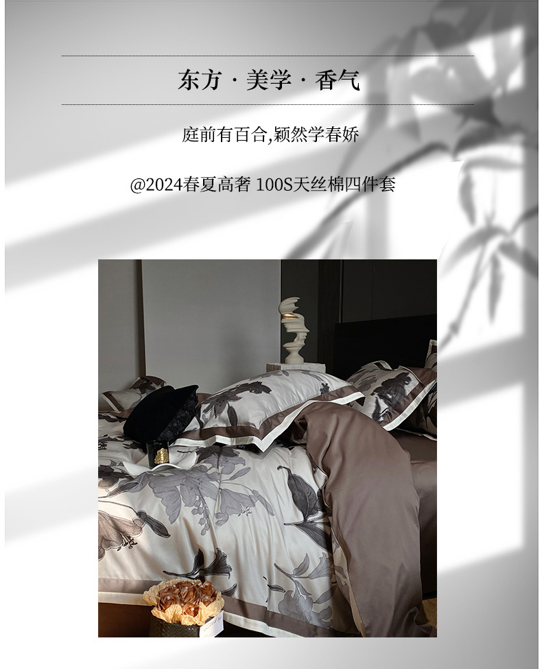 (总)宜代光年 2025新款小米貂法式中古风印花四件套,墨染花簇,蝶语,粉雾渐染,灰韵层叠,墨韵花影,秋华,心上玫瑰,棕影绘花