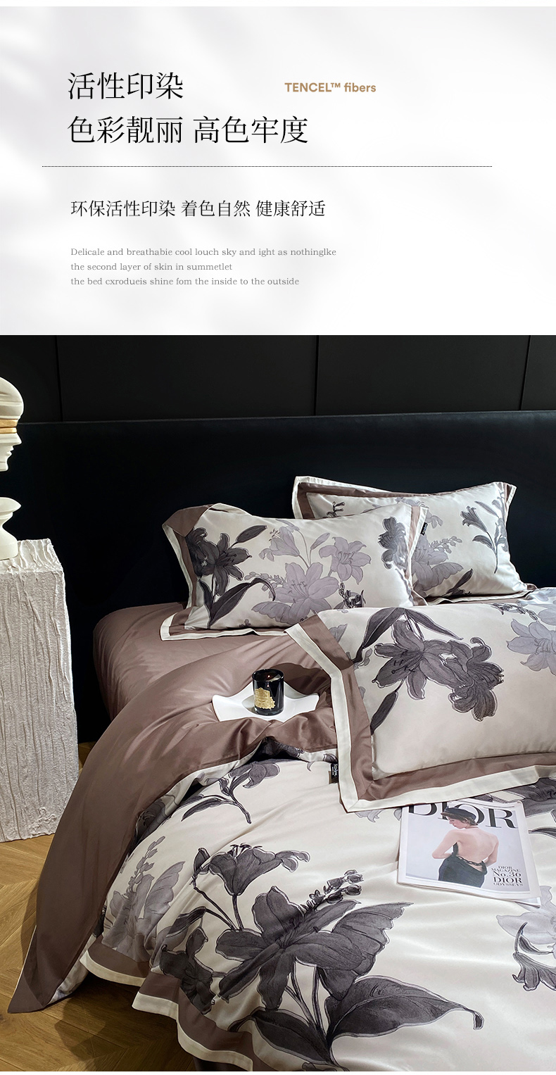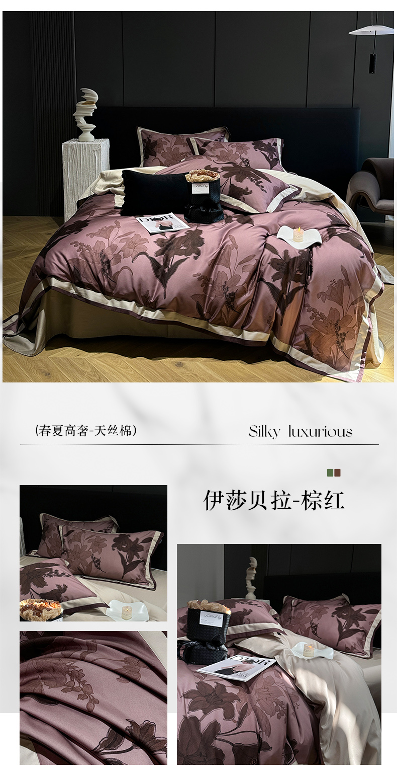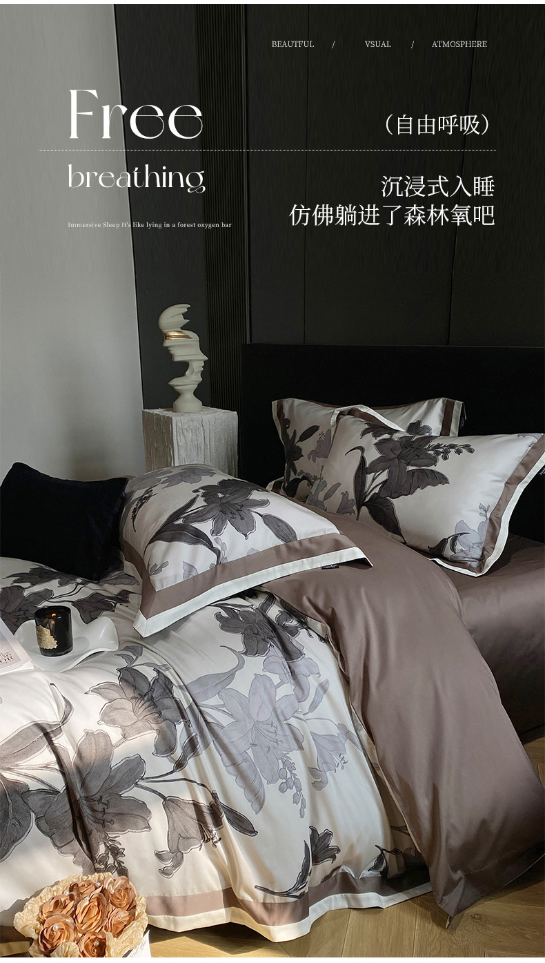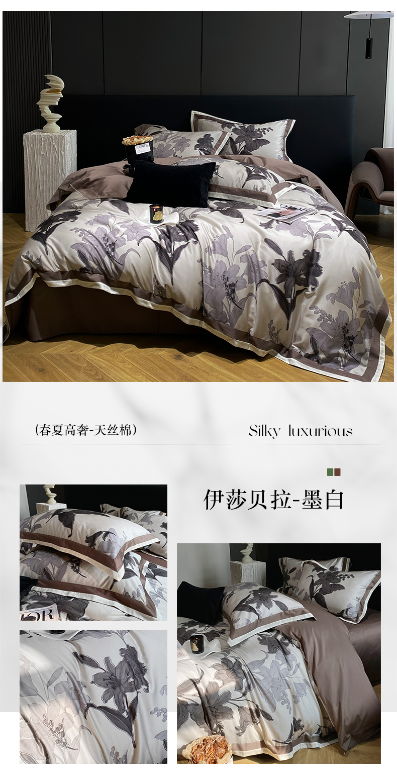 (总)宜代光年 2025新款小米貂法式中古风印花四件套,墨染花簇,蝶语,粉雾渐染,灰韵层叠,墨韵花影,秋华,心上玫瑰,棕影绘花