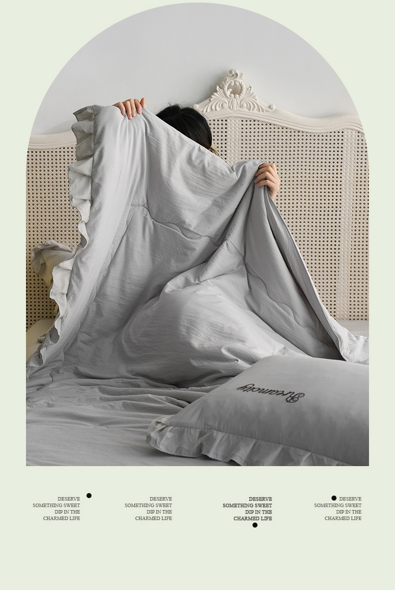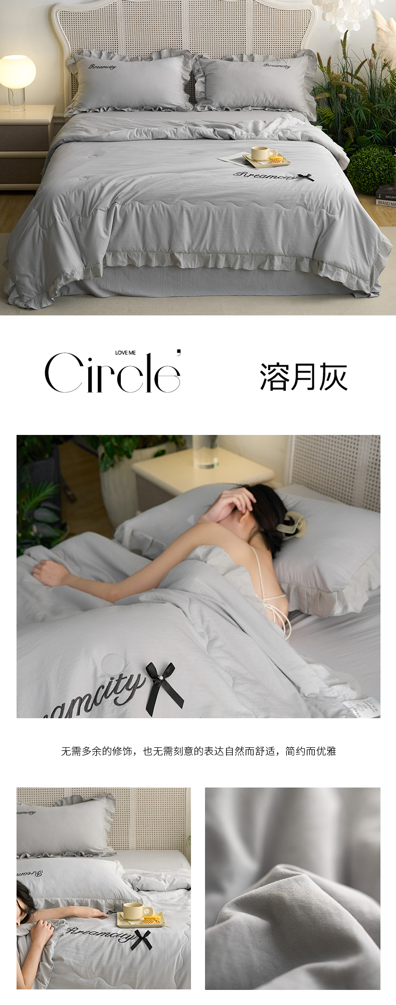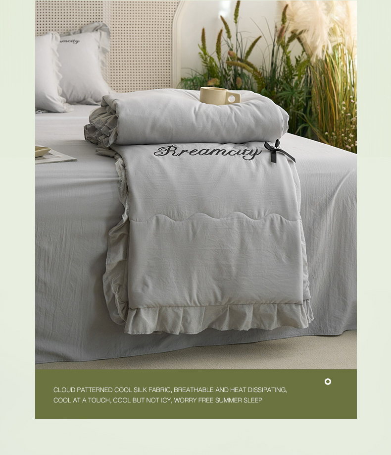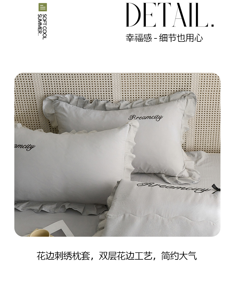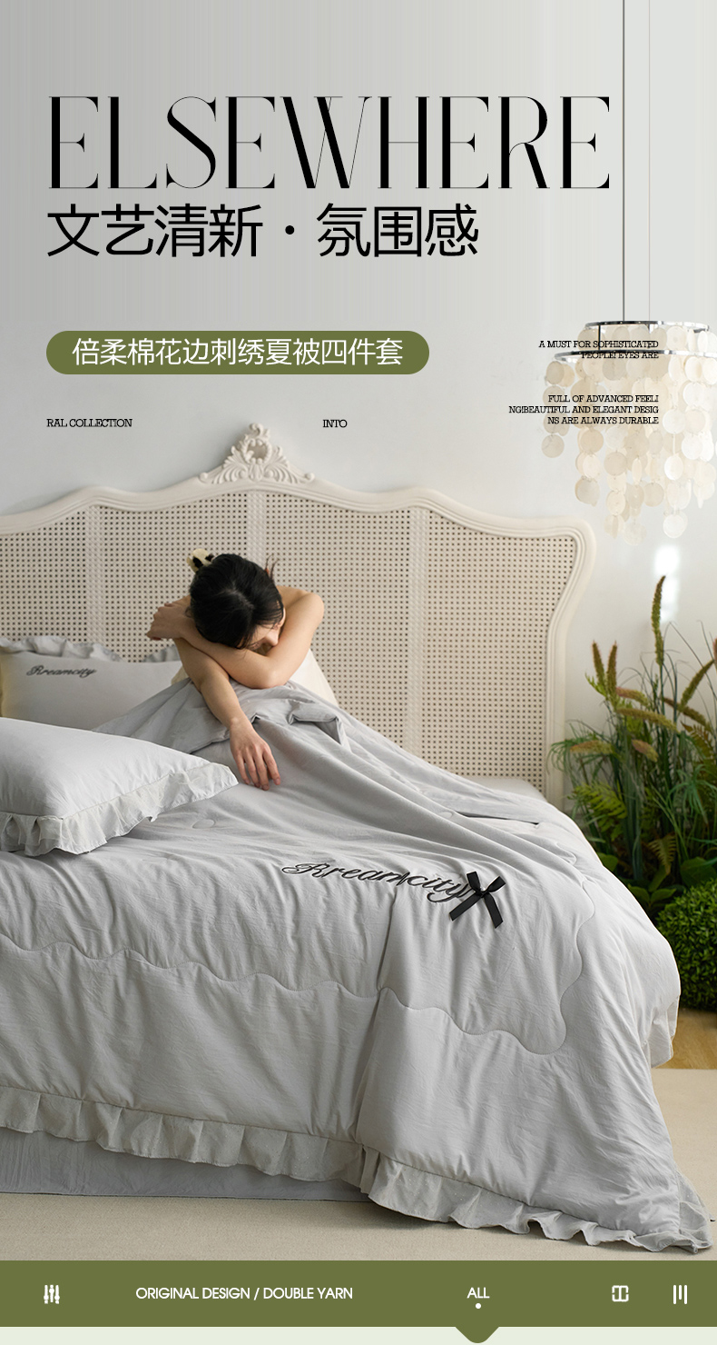 商品名称:(总)嗯呢2025新款A类倍柔棉双层花边绣花夏被四件套 溶月灰