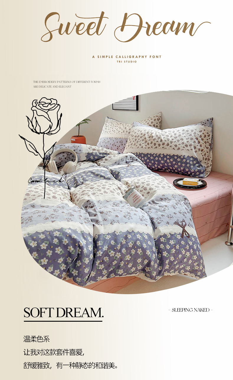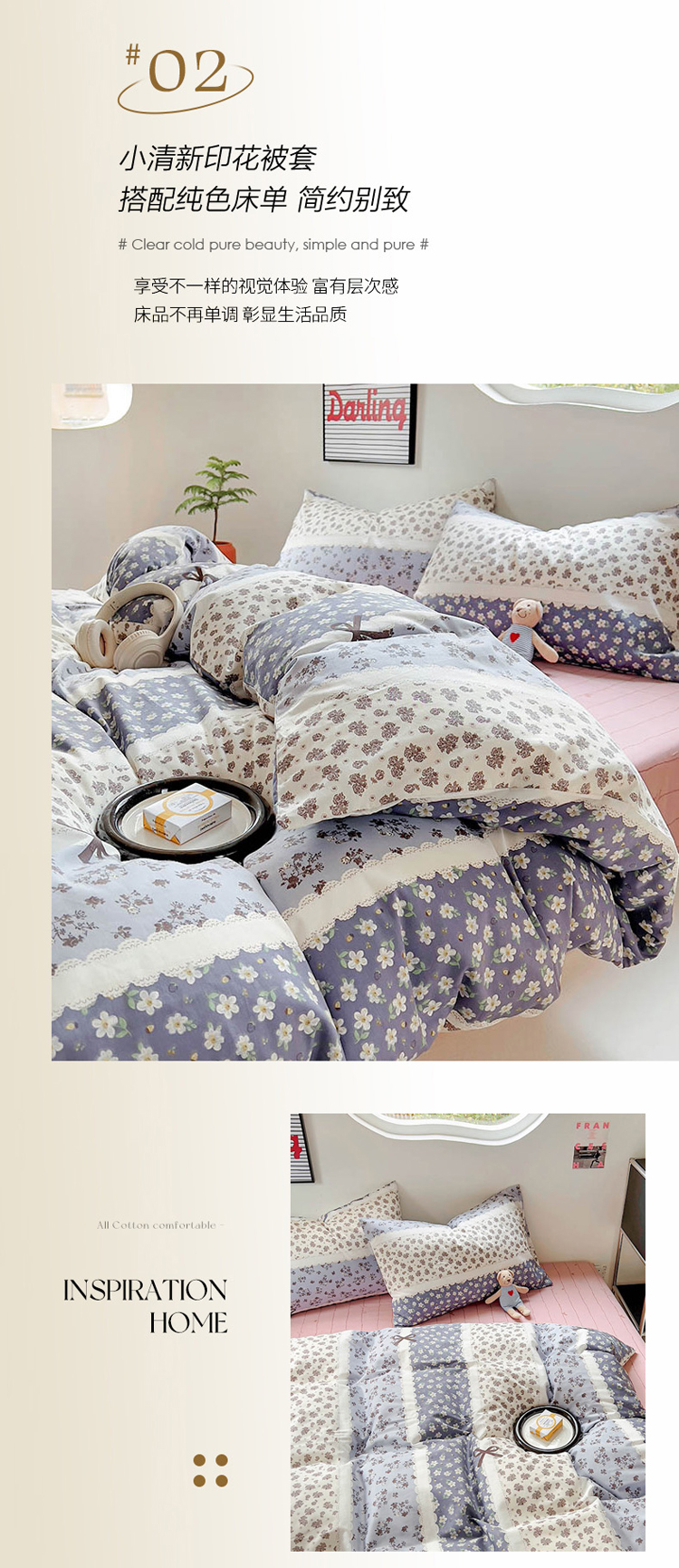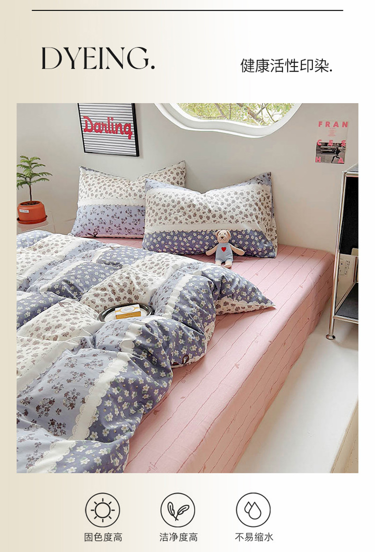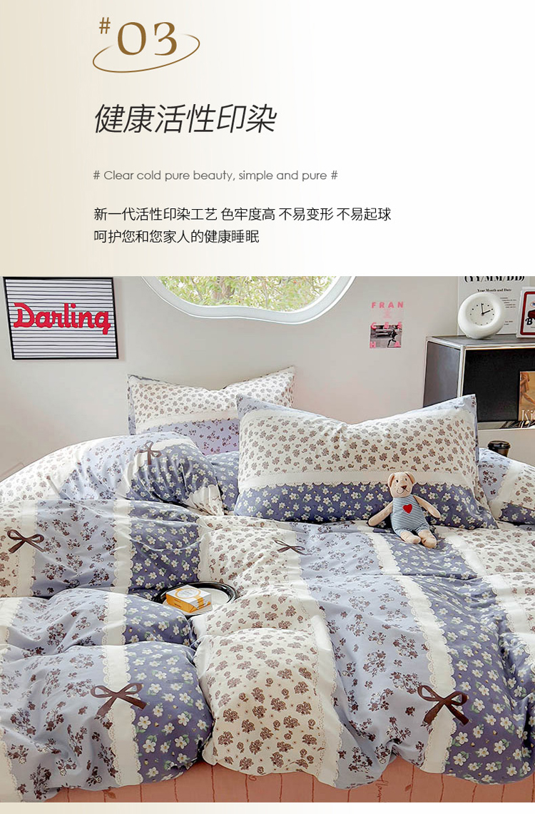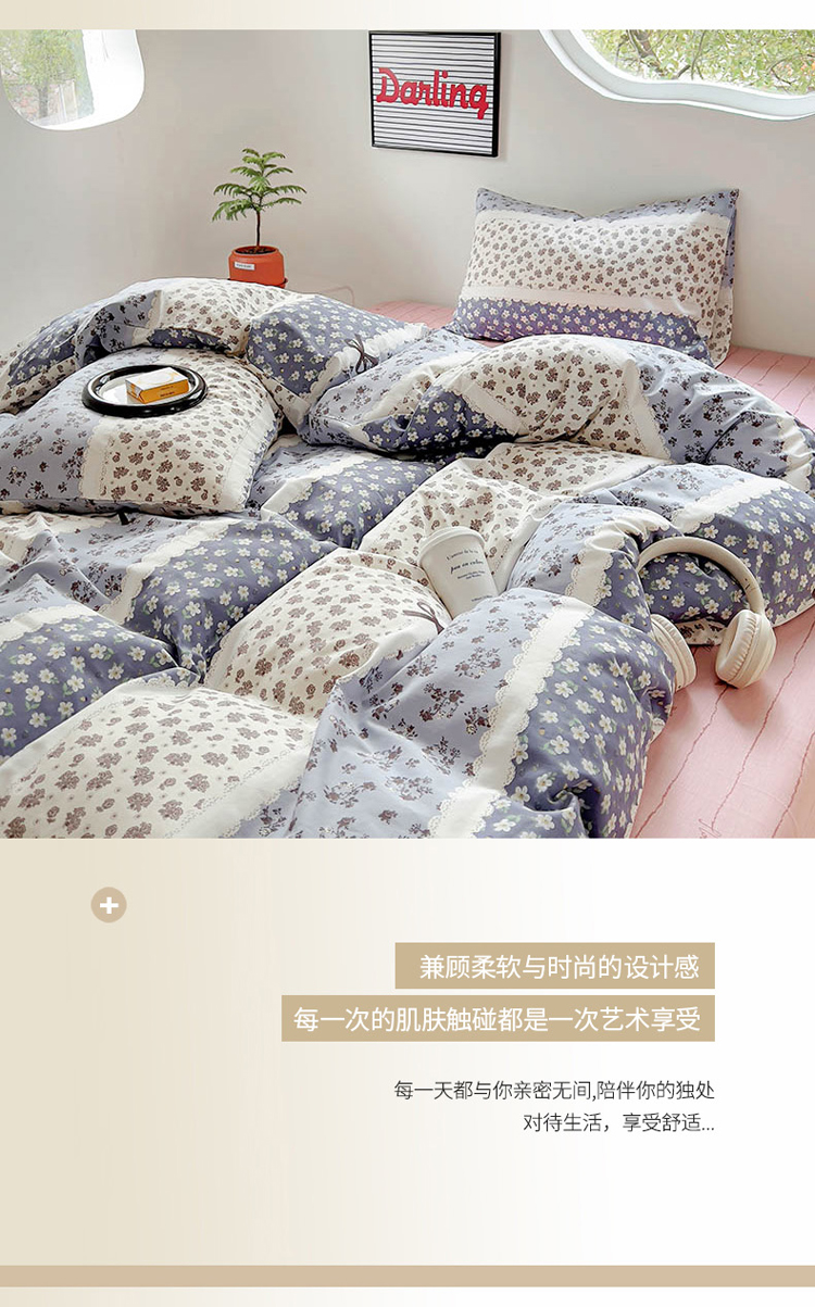商品名称:田野 2024新款13372全棉INS印花四件套 芬芳-蓝