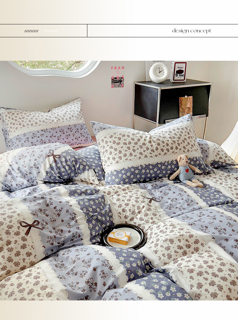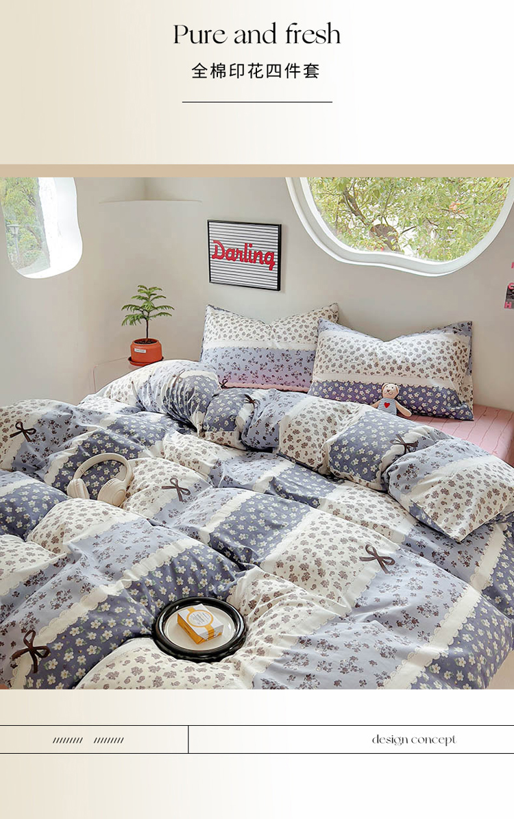 田野 2024新款13372全棉INS印花四件套 芬芳-蓝