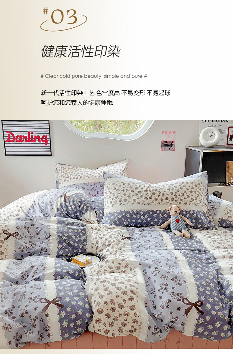 (总)田野2021小清新全棉四件套纯棉碎花田园风三件套,菲菲兔,芬芳-绿,花期,萝拉,莎拉,恬爱,仙草,樱花草-蓝