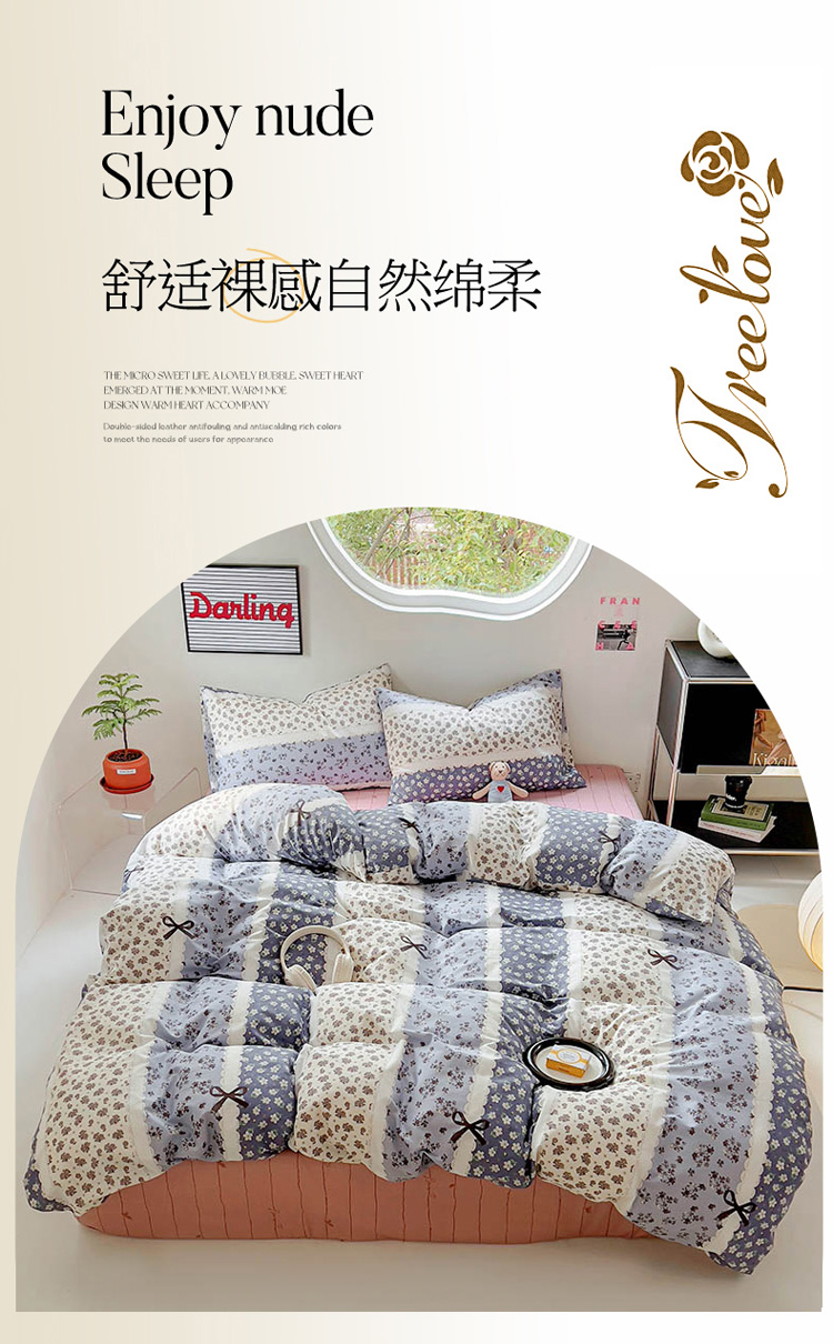(总)田野 2022新款水洗棉小清新小碎花全棉四件套,花丛,花涧,绿婉,曼舞,桃夭,甜馨草莓,兔兔,银杏