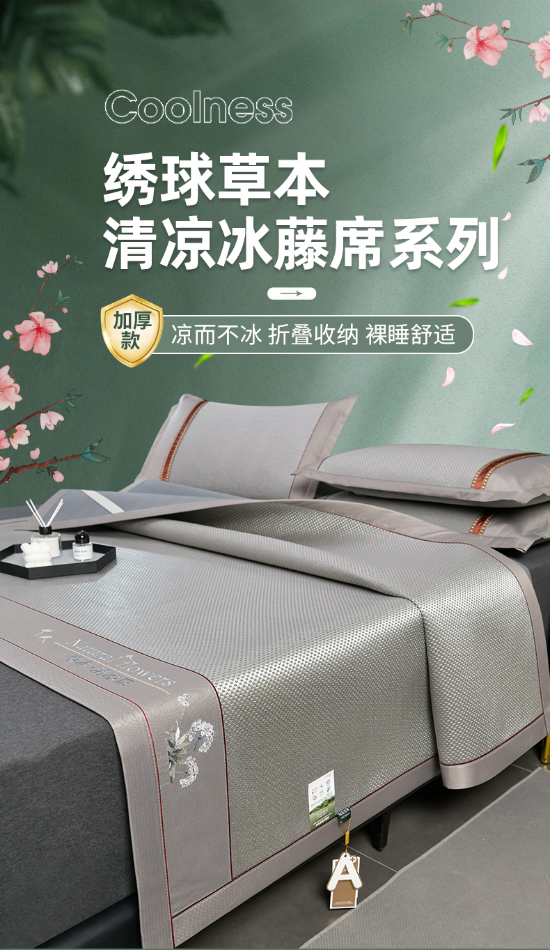 当前位置: 91家纺网 > 商品网购 > 床上用品 > 凉席 > 藤席 > 小牛席业 2024新款加厚款-绣球草本清凉冰藤席系列 加厚款-绣球草本冰藤席(银灰)