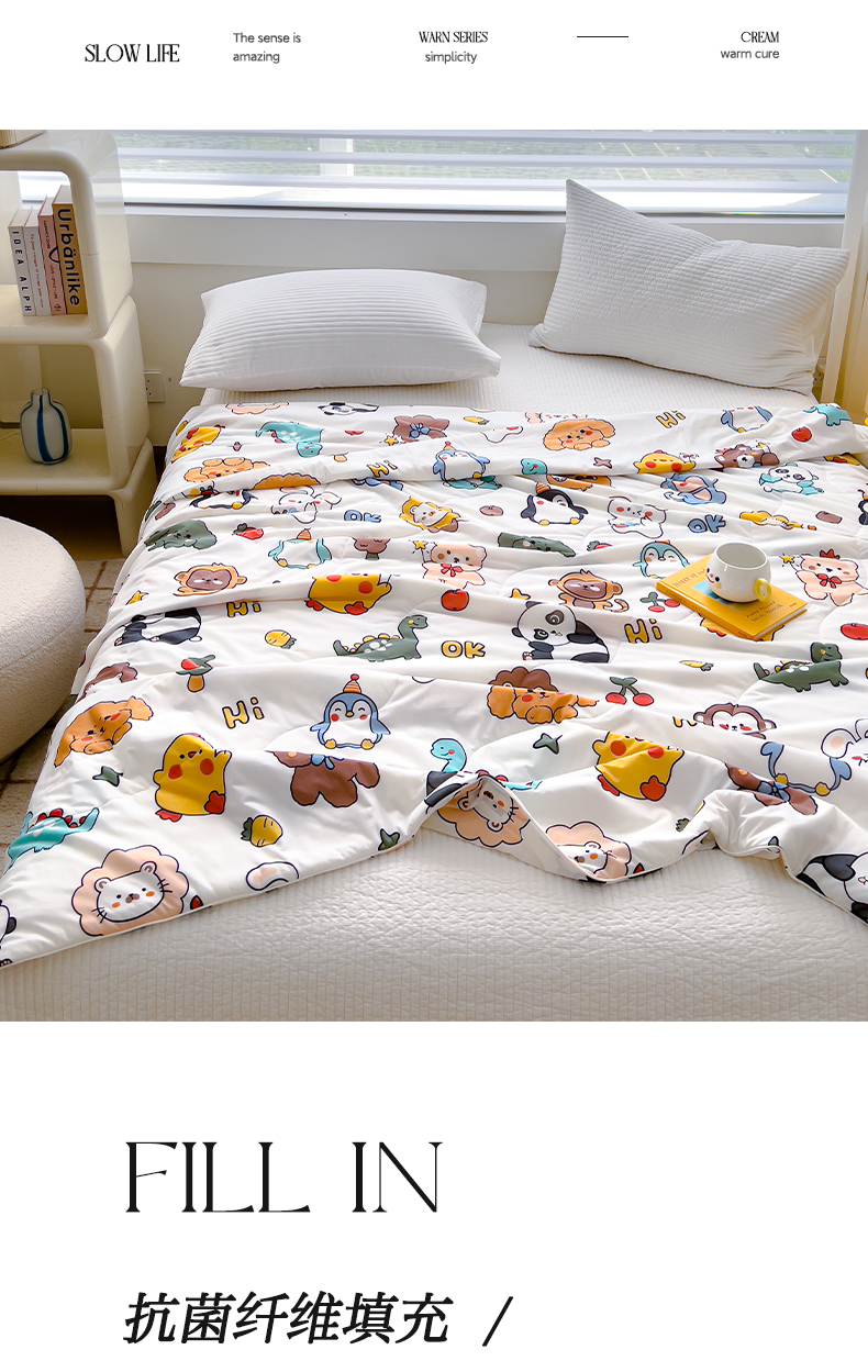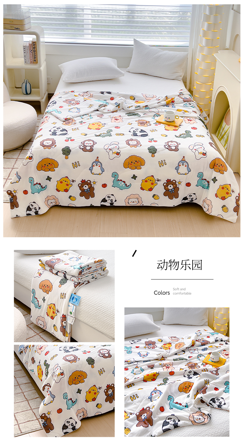 久典家居 2024新款A类氨纶抗菌印花凉感丝夏被空调被 动物乐园