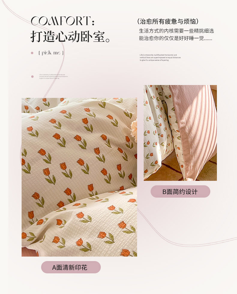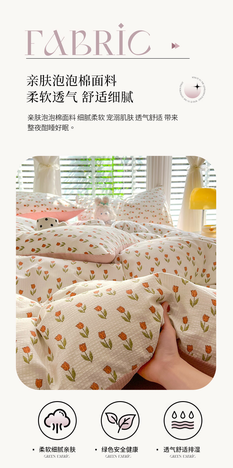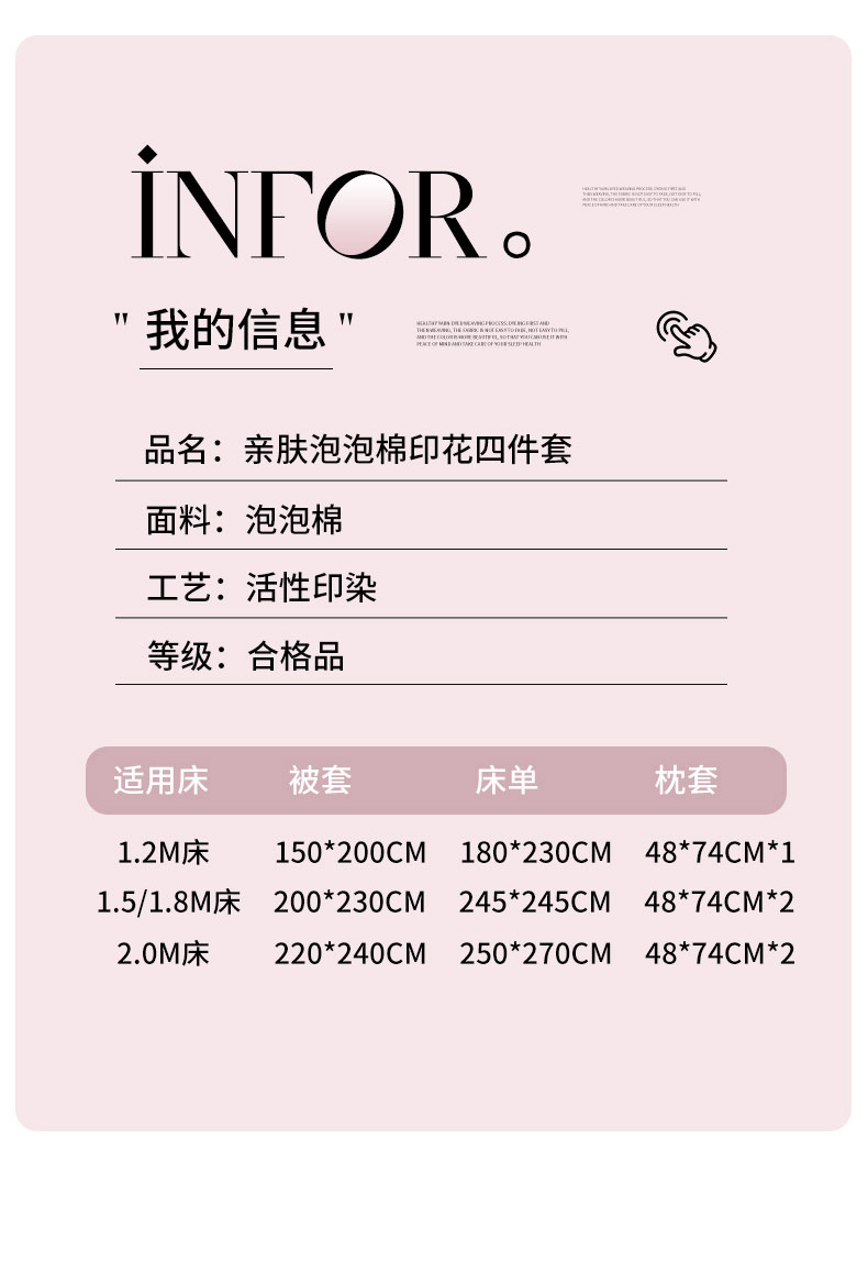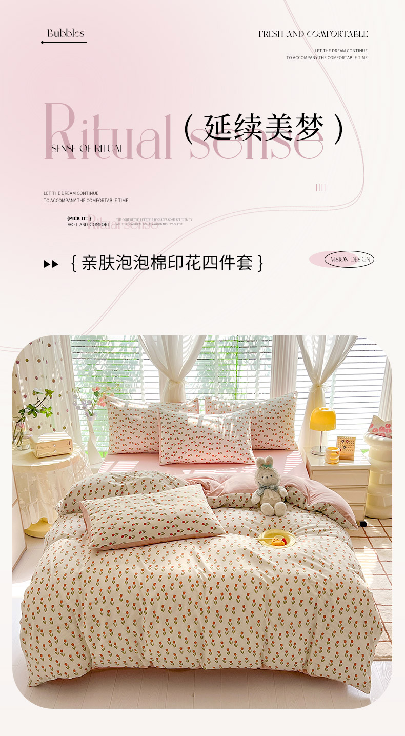 当前位置: 91家纺网 > 商品网购 > 床品套件 > 四件套 > 水洗棉四件套 > 妖妖家纺 2024新款有氧水洗泡泡棉印花四套泡芙棉四件套 绛纱