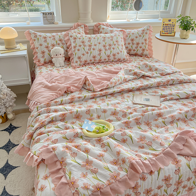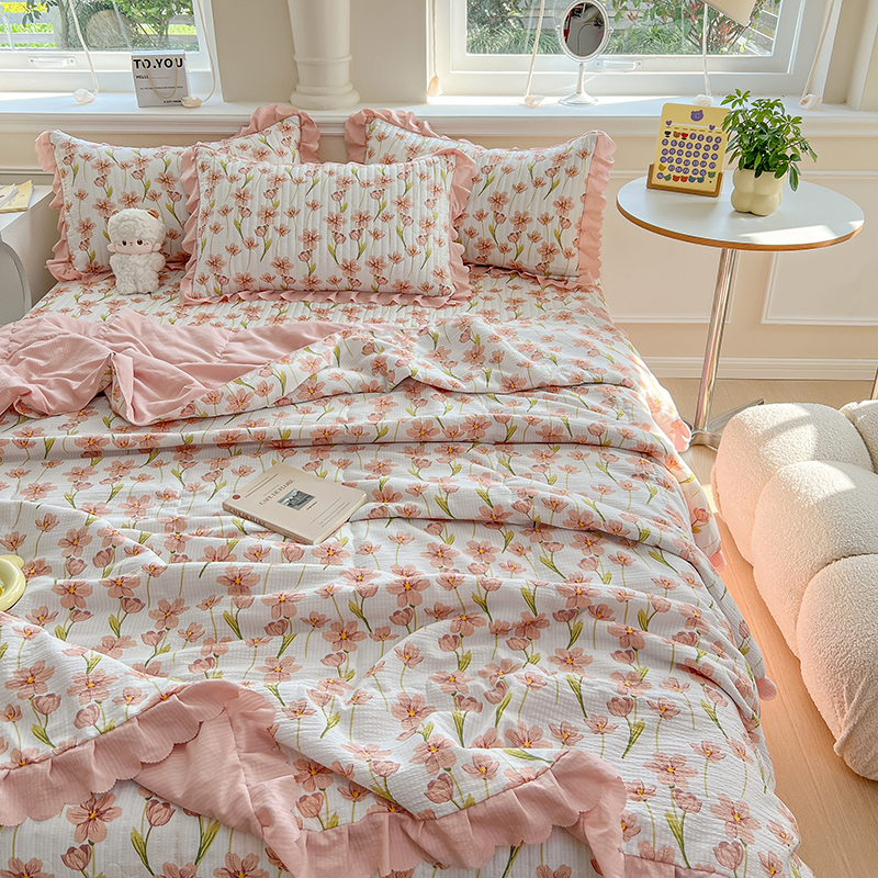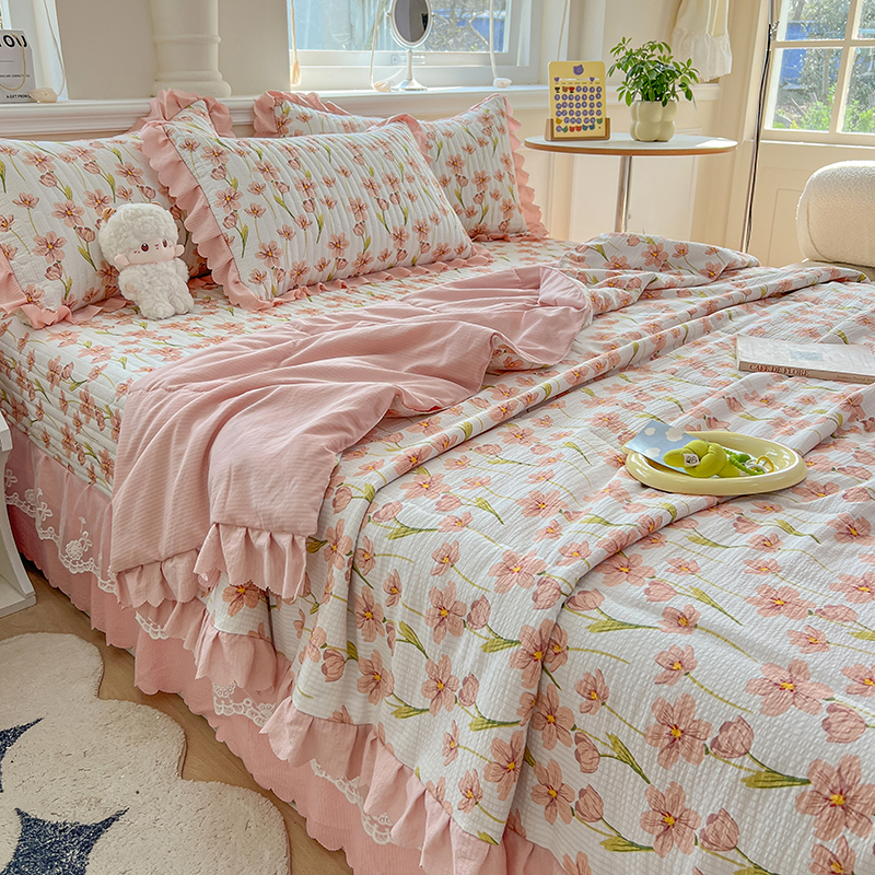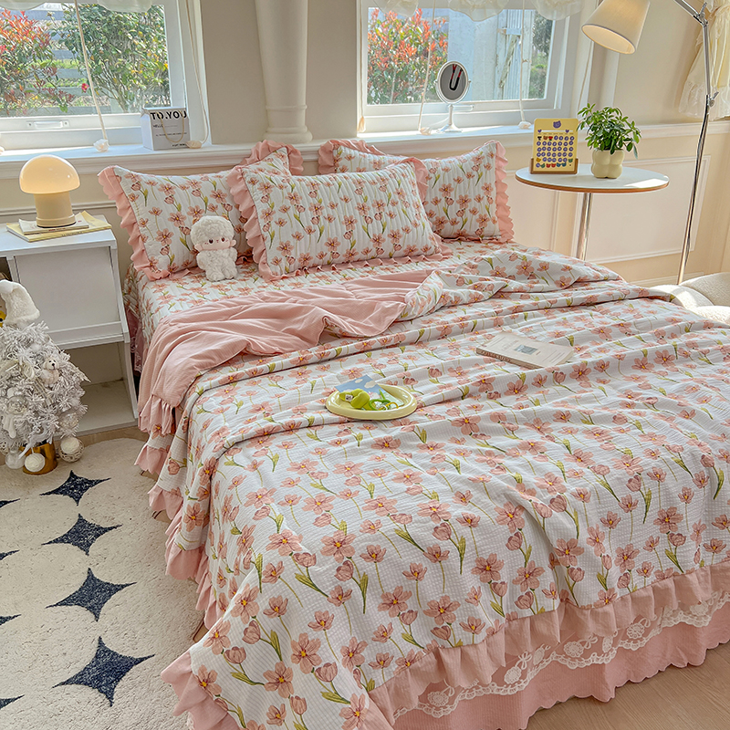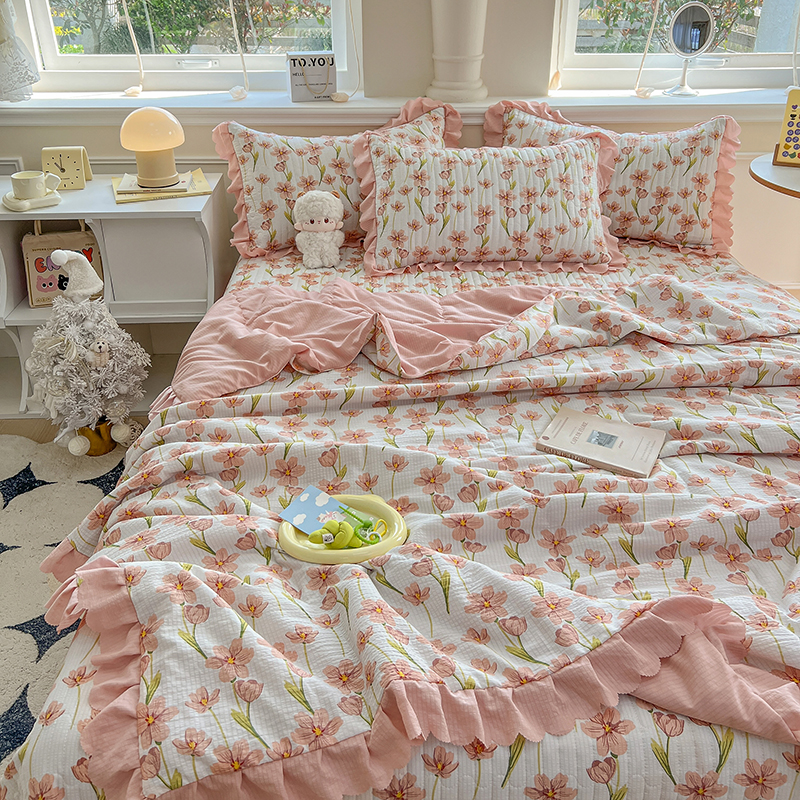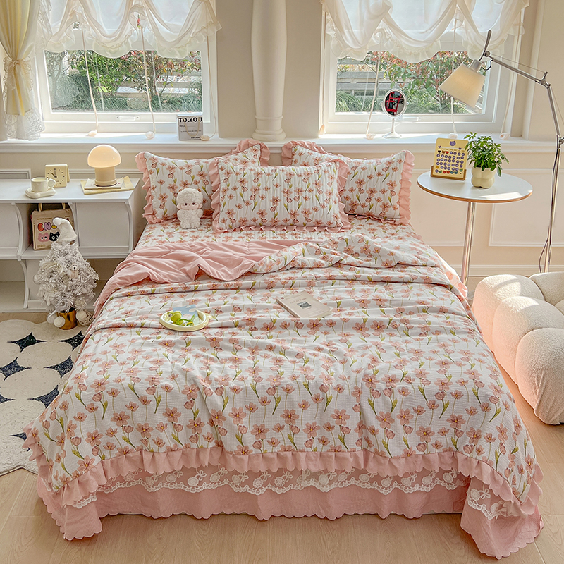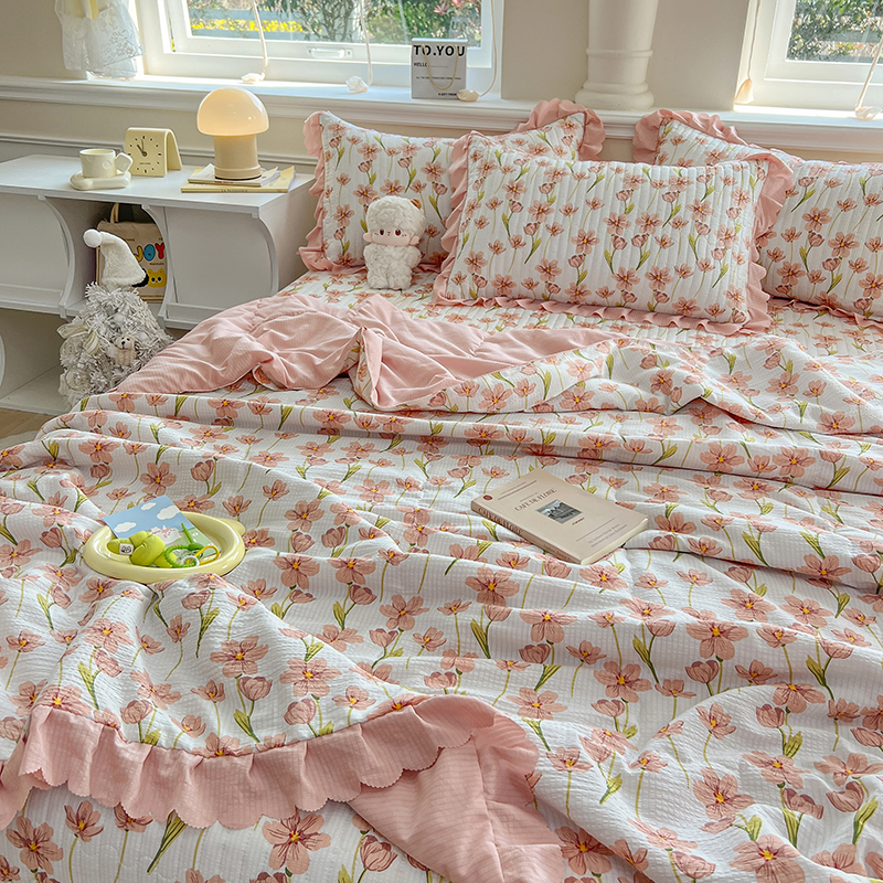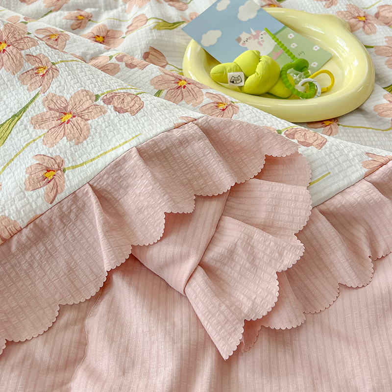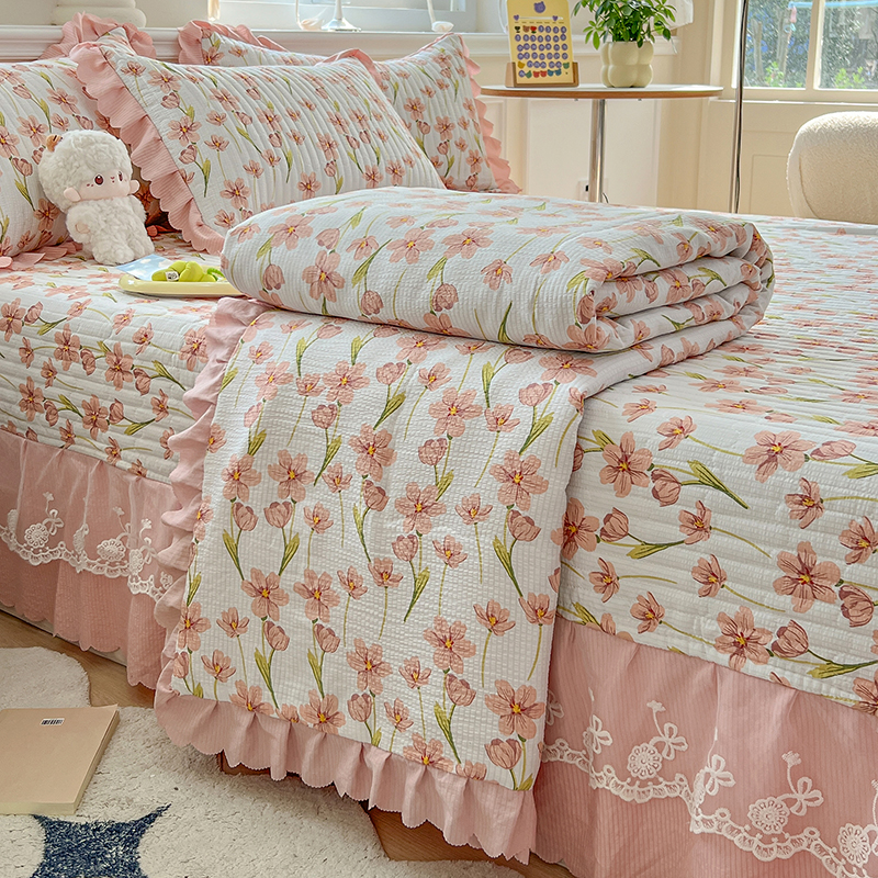 当前位置: 91家纺网 > 商品网购 > 床品套件 > 四件套 > 夏被四件套 > 雅眠居 2024直播爆款泡泡棉床盖款夏被四件套双层蕾丝花边夹棉床裙款三件套 繁花