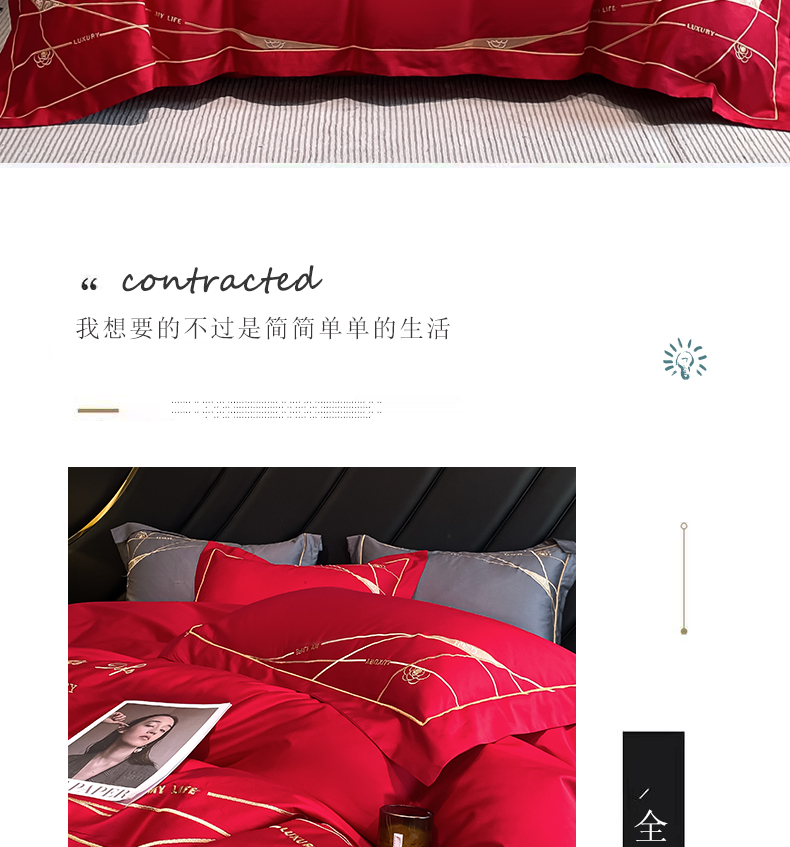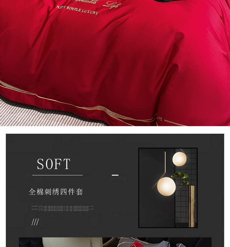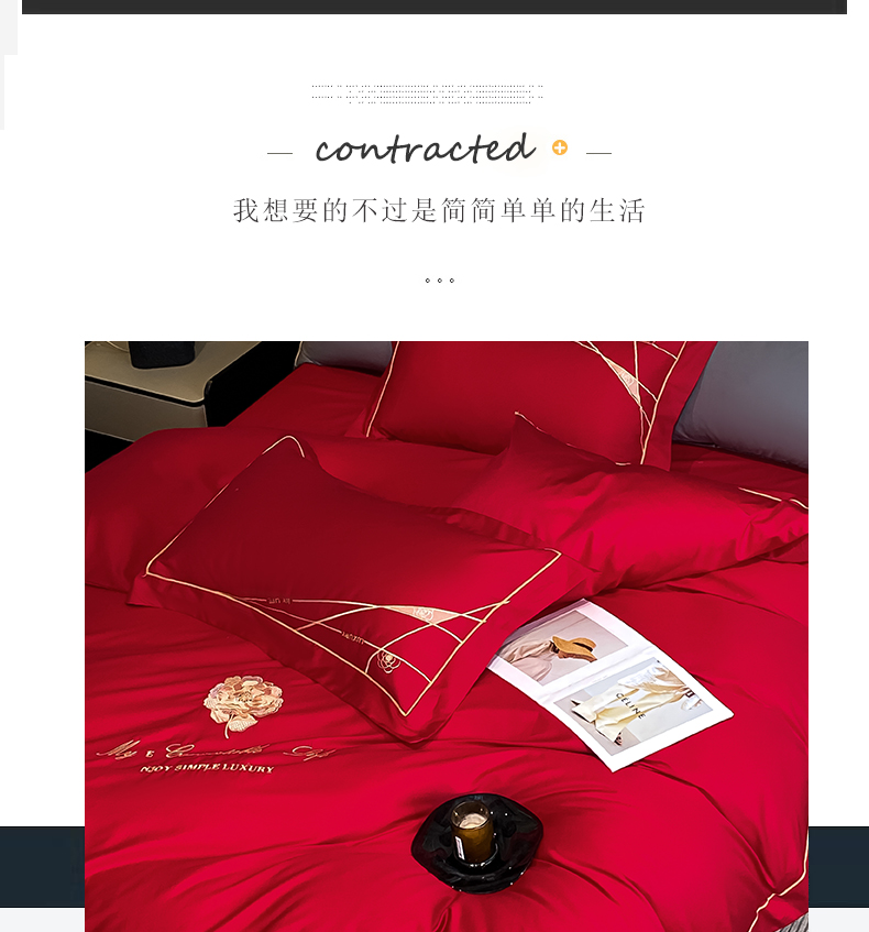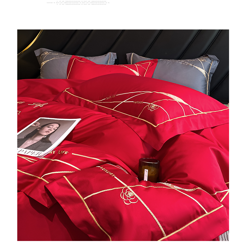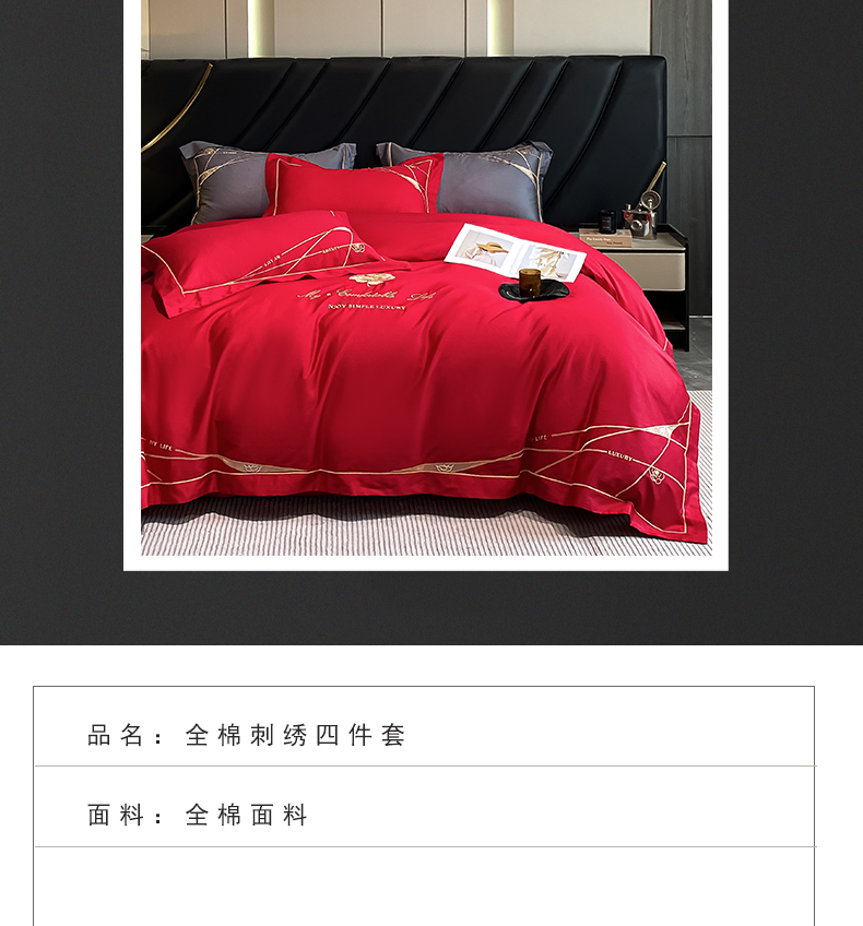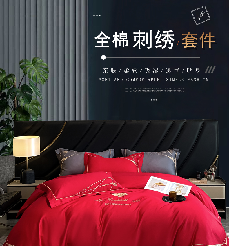 商品名称:云雀 2025新款全棉轻奢刺绣线条款四件套 线条-玫瑰红
