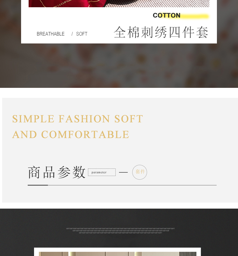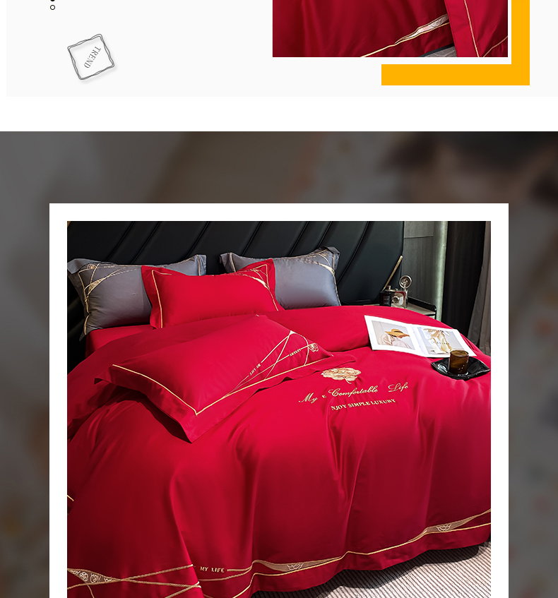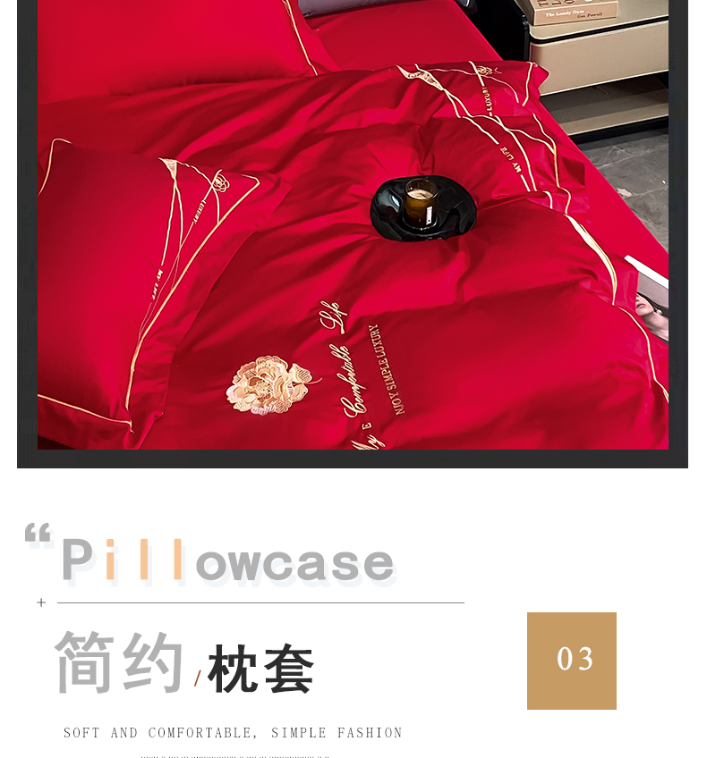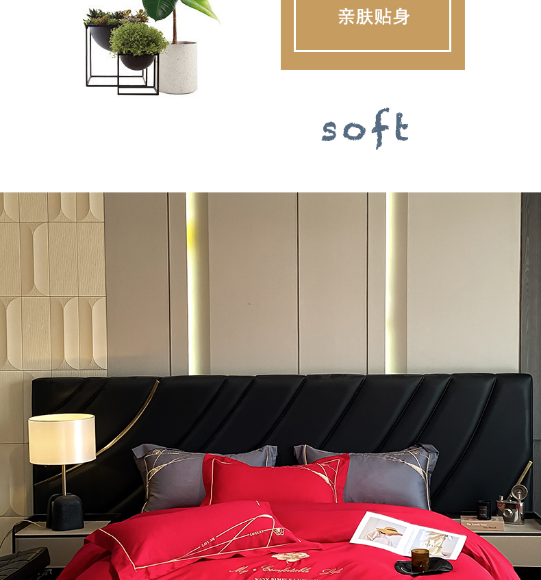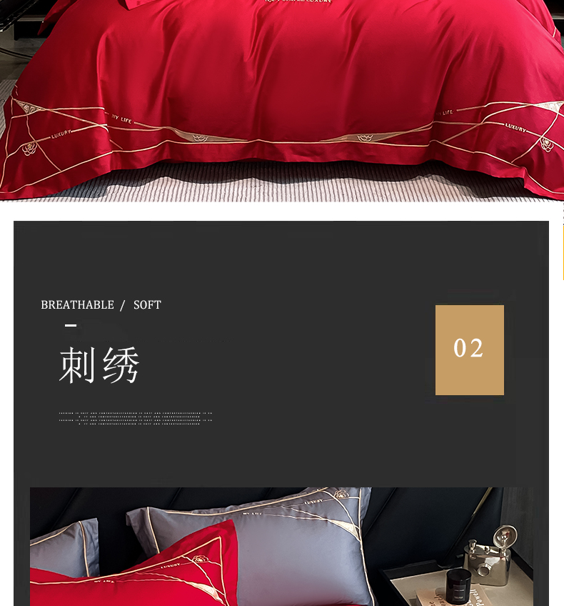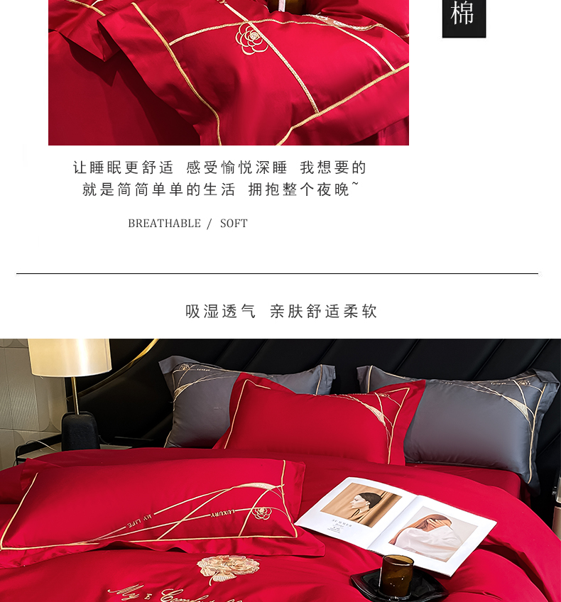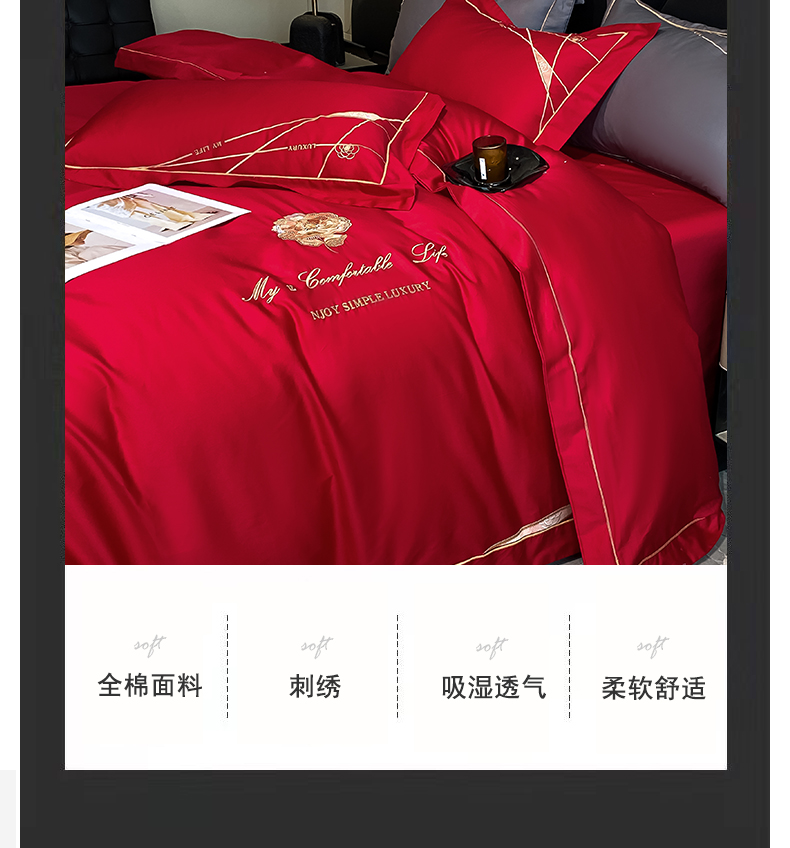 商品名称:云雀 2025新款全棉轻奢刺绣线条款四件套 线条-玫瑰红