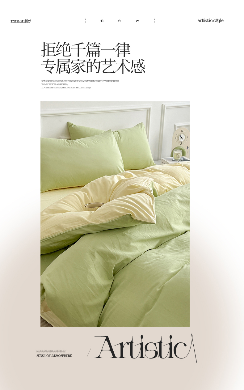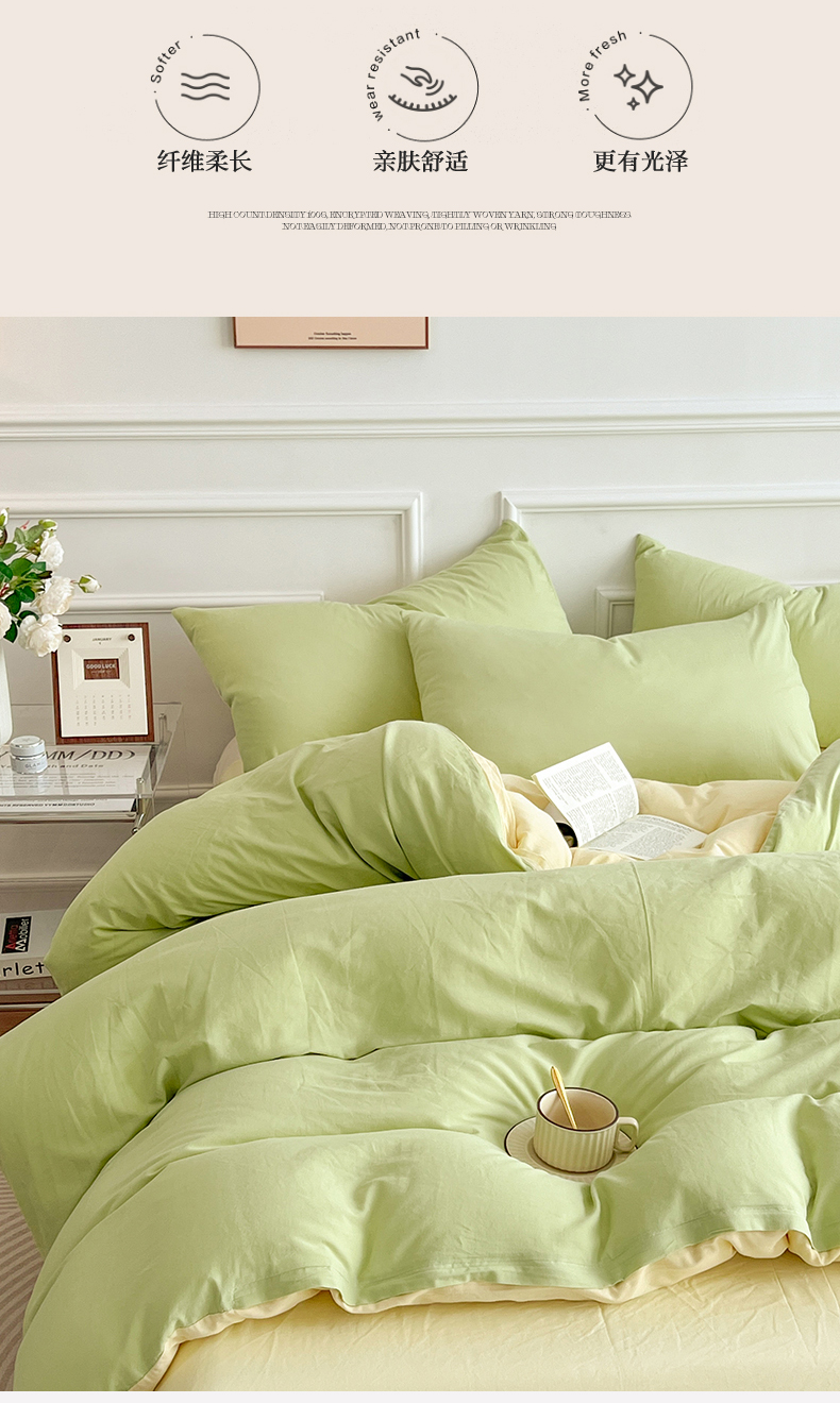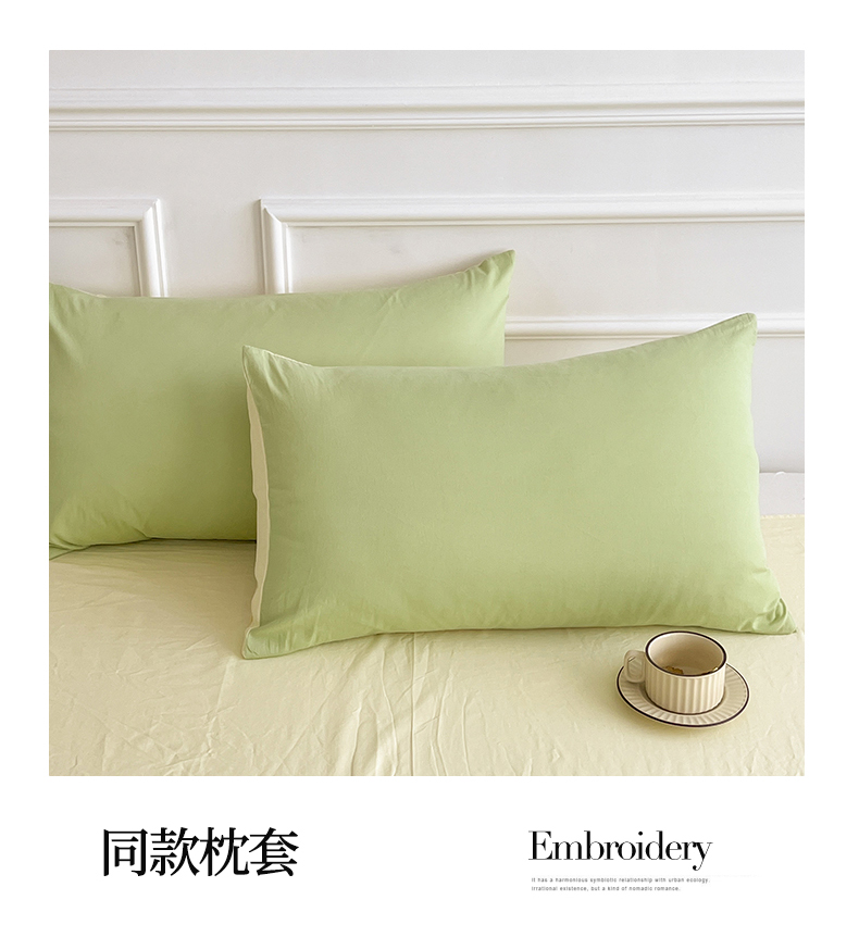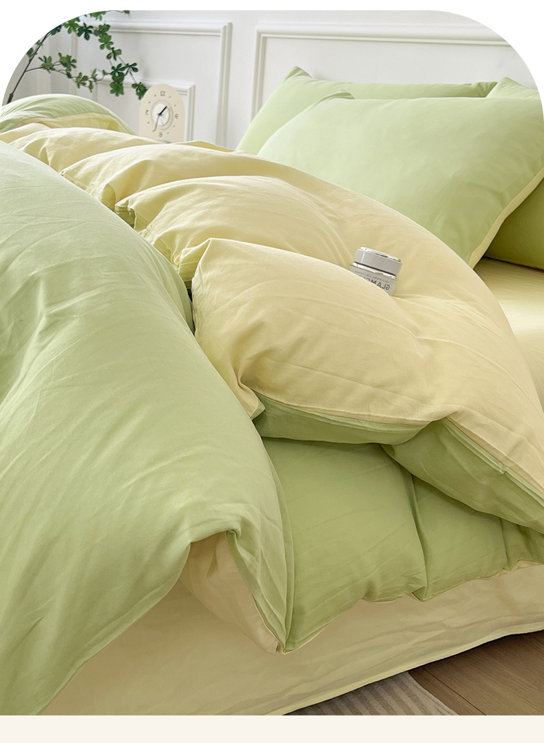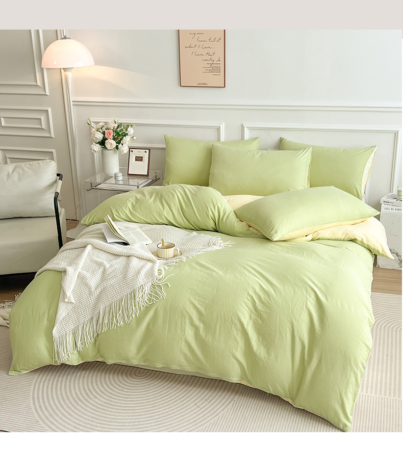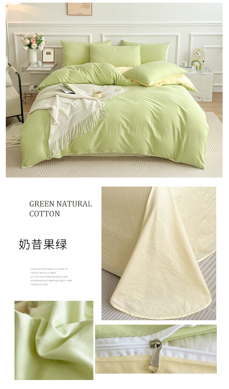 多品家纺 2024年春夏新品全棉双拼纯色无印风四件套 奶昔果绿