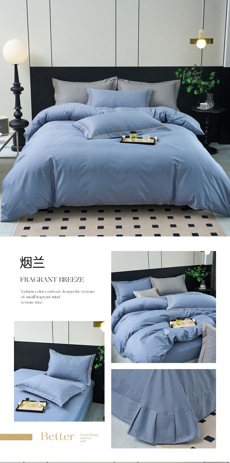 三沁家居 2024新款精梳长绒棉四件套 烟兰
