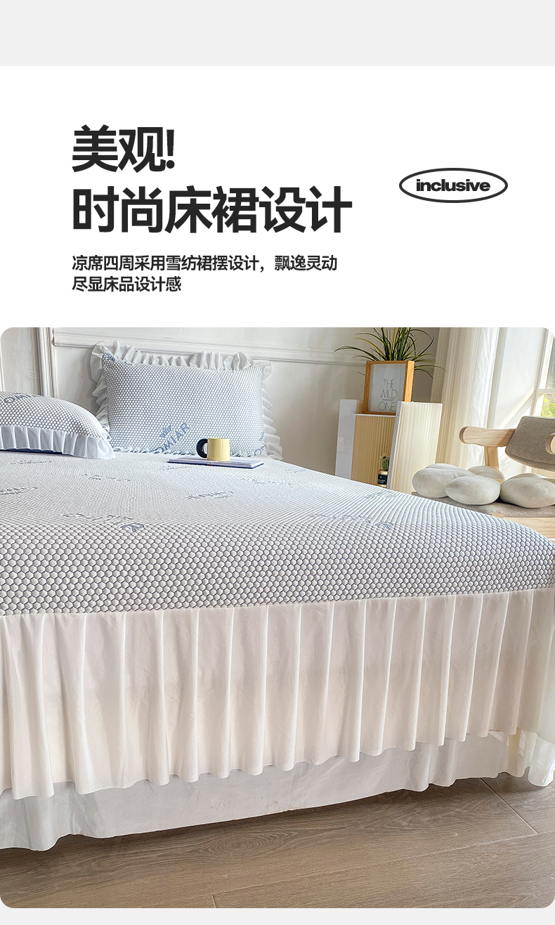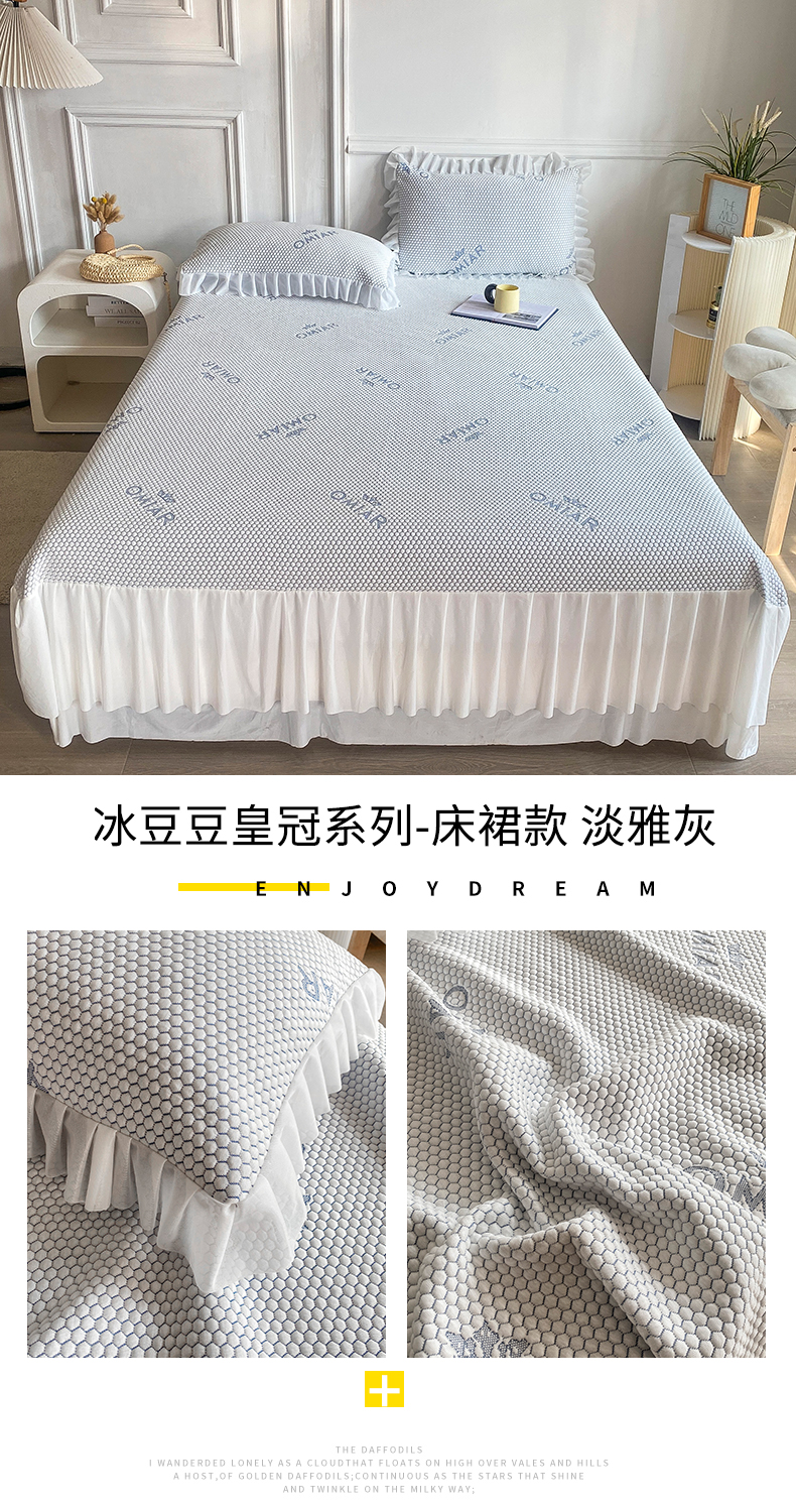 当前位置: 91家纺网 > 商品网购 > 床上用品 > 凉席 > 冰丝席 > 叠派家纺 2024新款抗菌冰豆豆床裙款凉席-皇冠系 冰豆豆皇冠系列-床裙款 淡雅灰