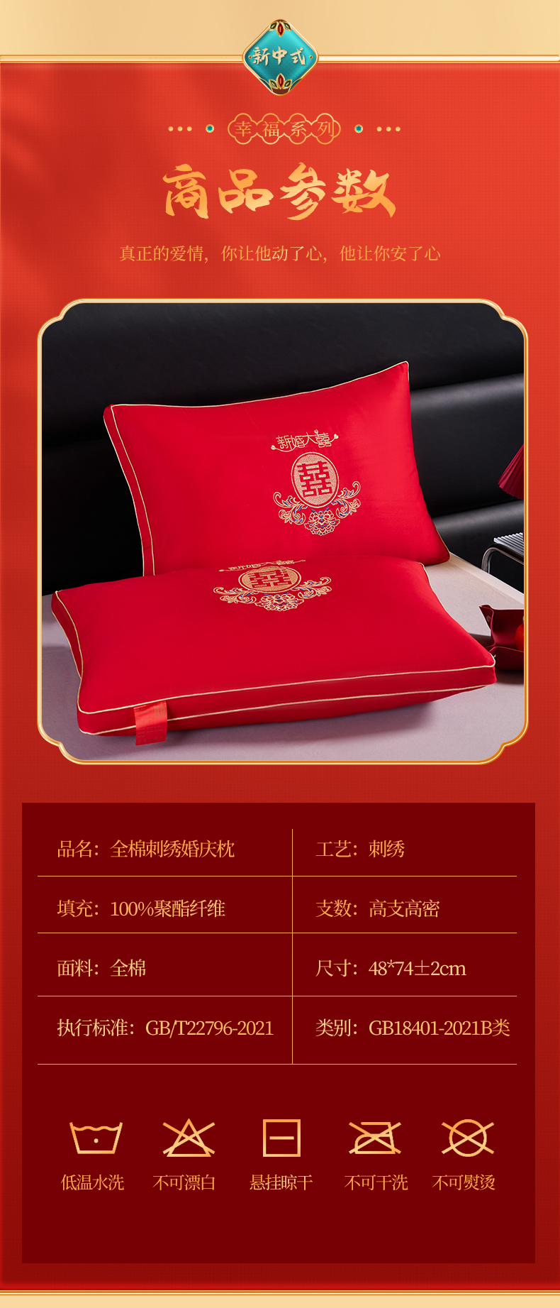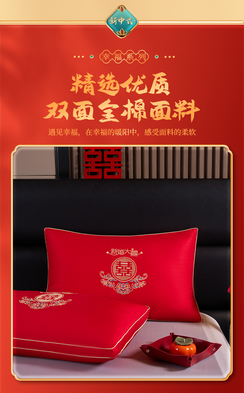 当前位置: 91家纺网 > 商品网购 > 枕头/枕芯/保健枕/颈椎枕 > 普通枕芯 > 贤内助 2024新款全棉婚庆羽丝枕保健枕枕头枕芯系列 新婚大喜 48*74cm/只