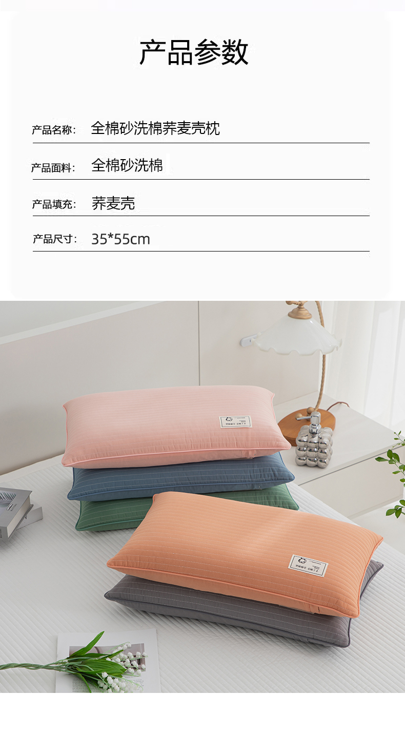 商品名称:(总)织布人 2024新款荞麦枕全棉简约韩式纱洗荞麦枕头护颈椎枕家用荞麦皮枕芯