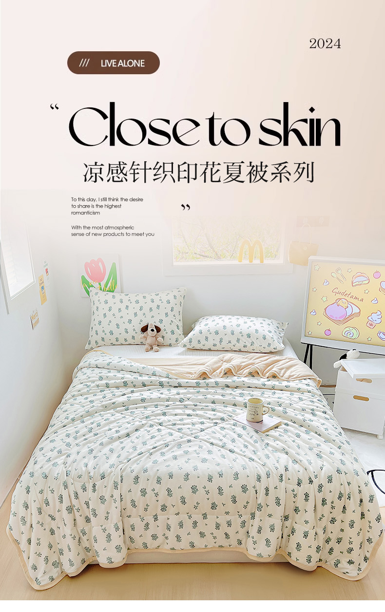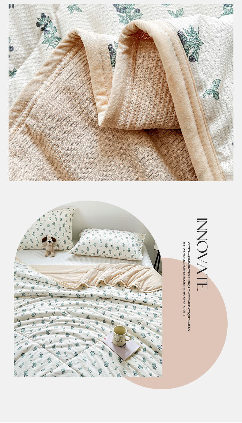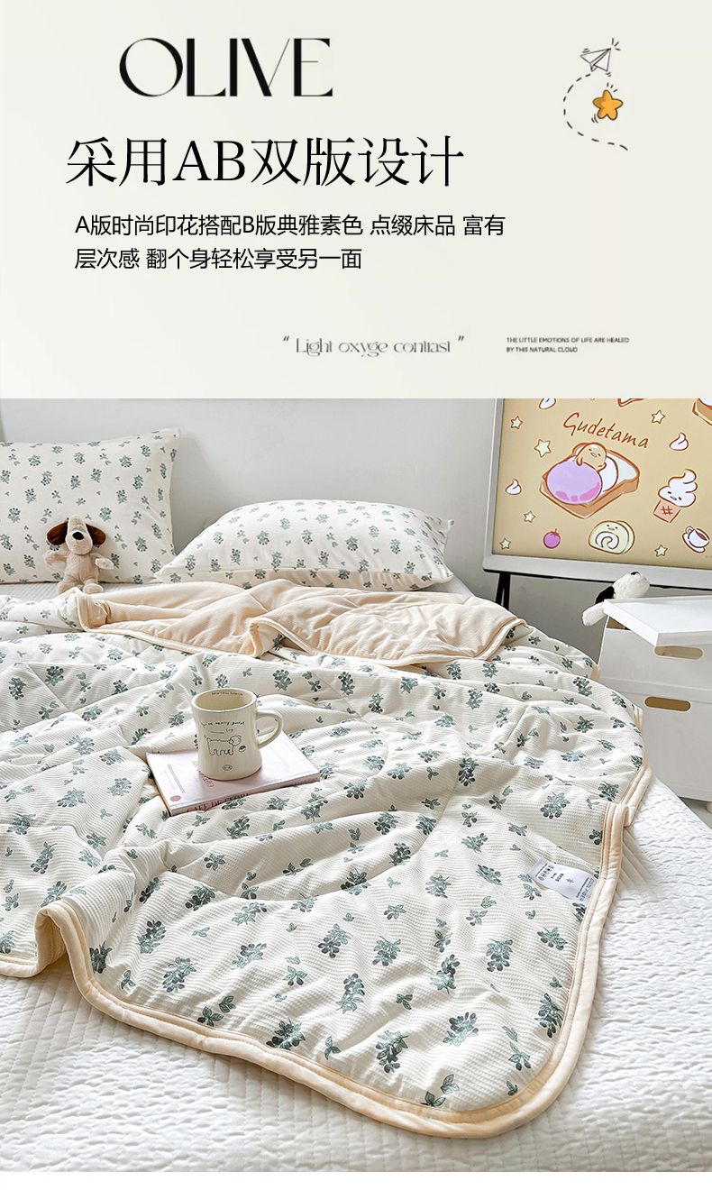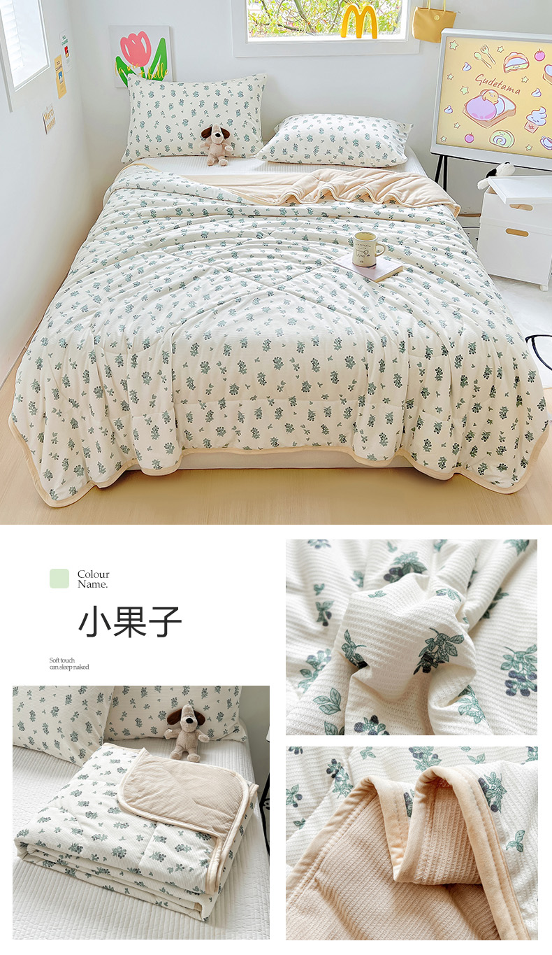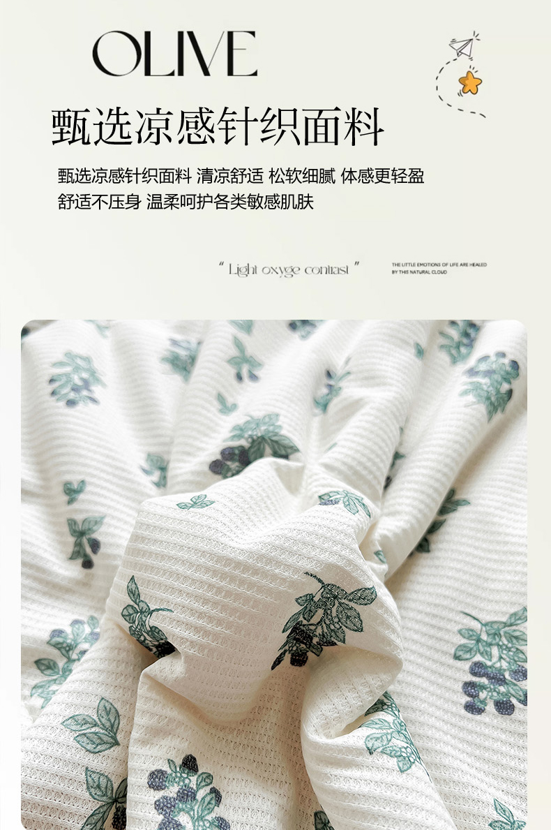 商品名称:柒月2024新款华夫格小清新卡通印花夏被 小果子-