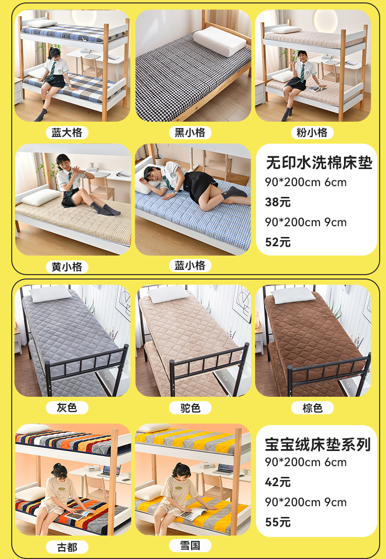 • 91家纺网 家纺一手货源 找家纺 美真家纺  2024新款学生宿舍床垫大学生床垫子上下铺垫子海绵床垫0.9床单人高中生床垫 宝宝绒床垫-古都