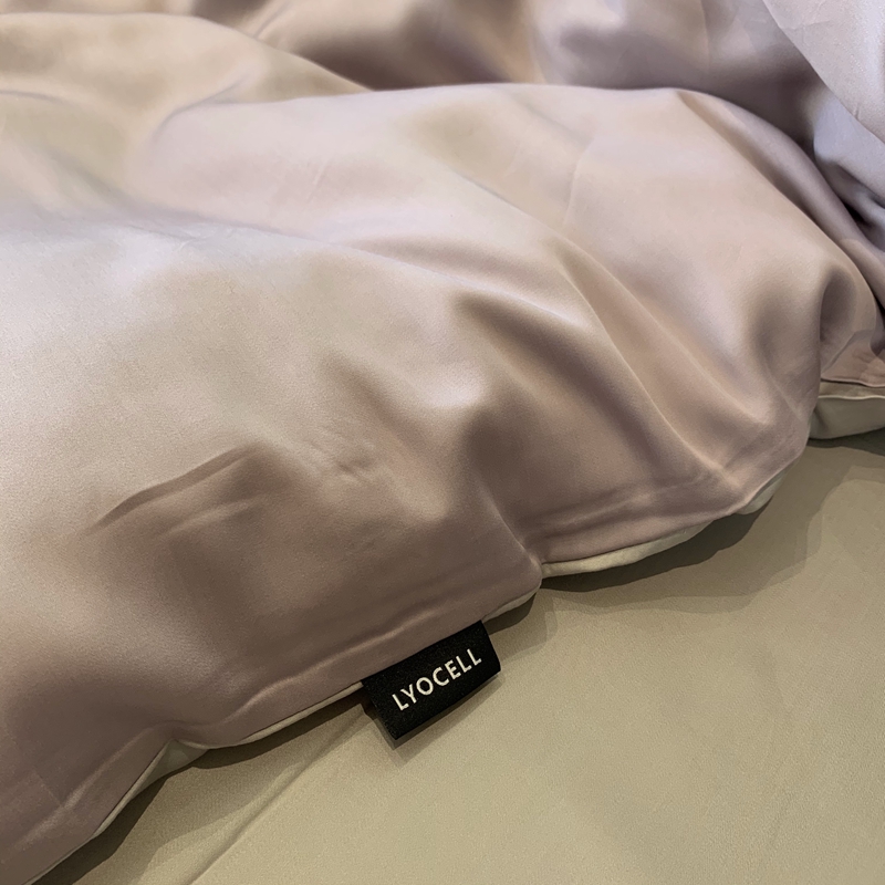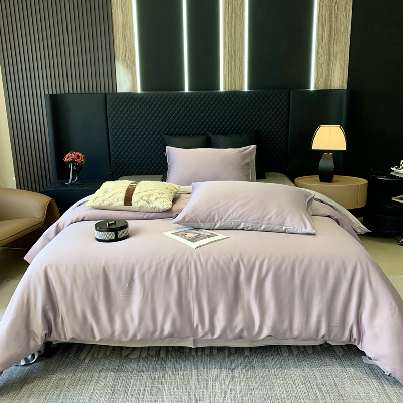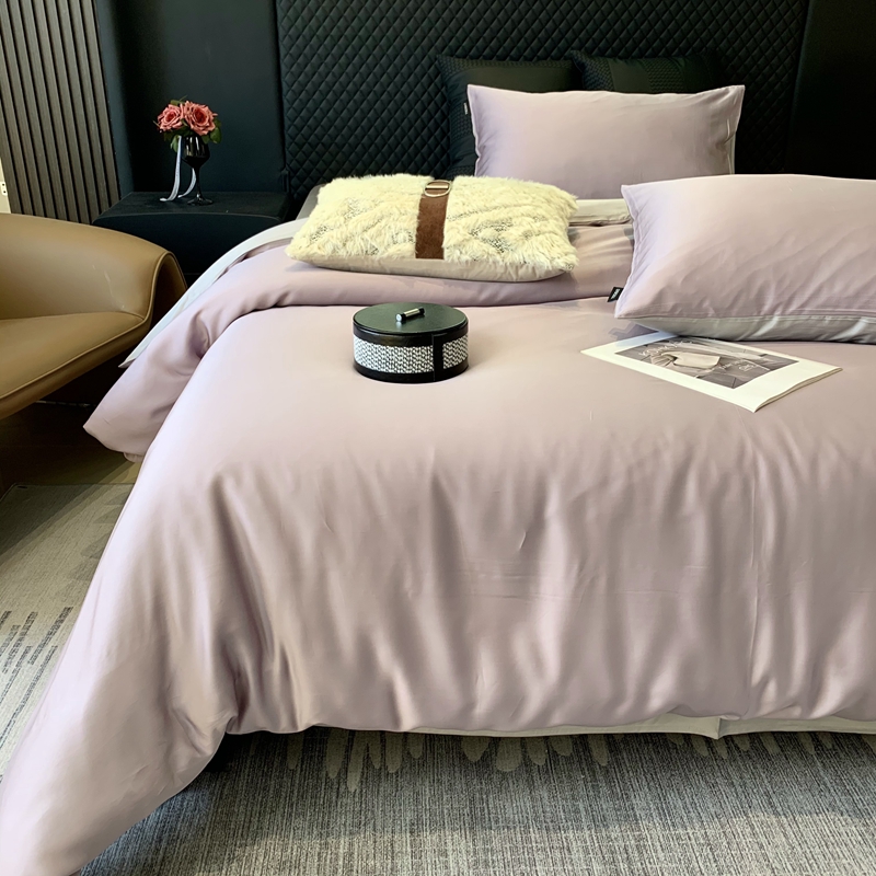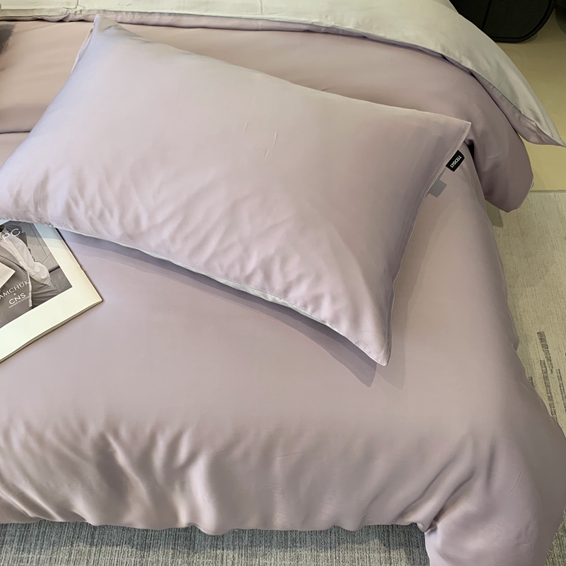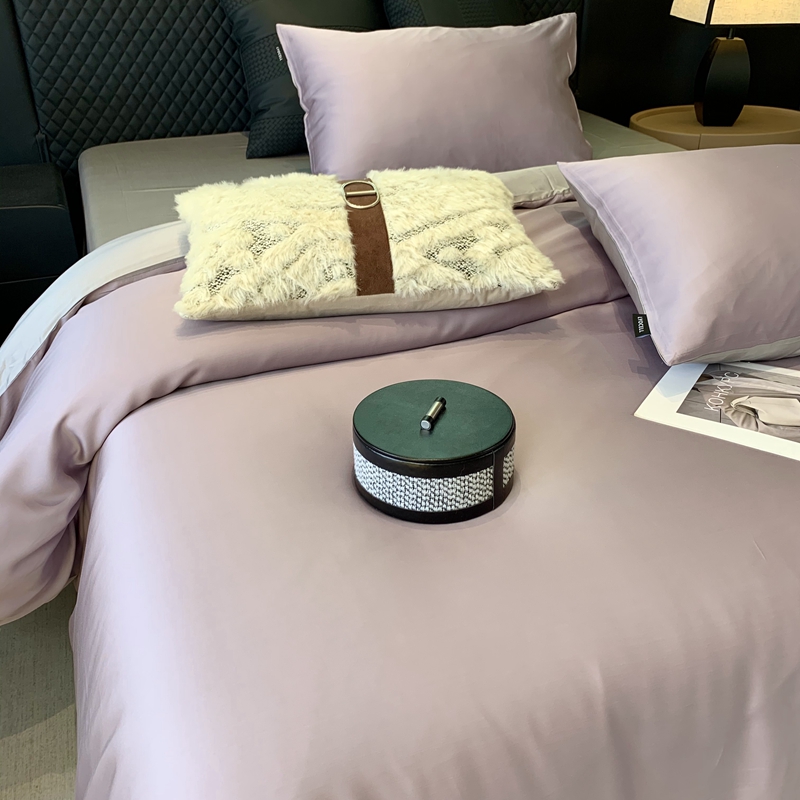 莱豫家纺 2024新款80支莱赛尔天丝纯色双拼四件套 奶油香芋紫