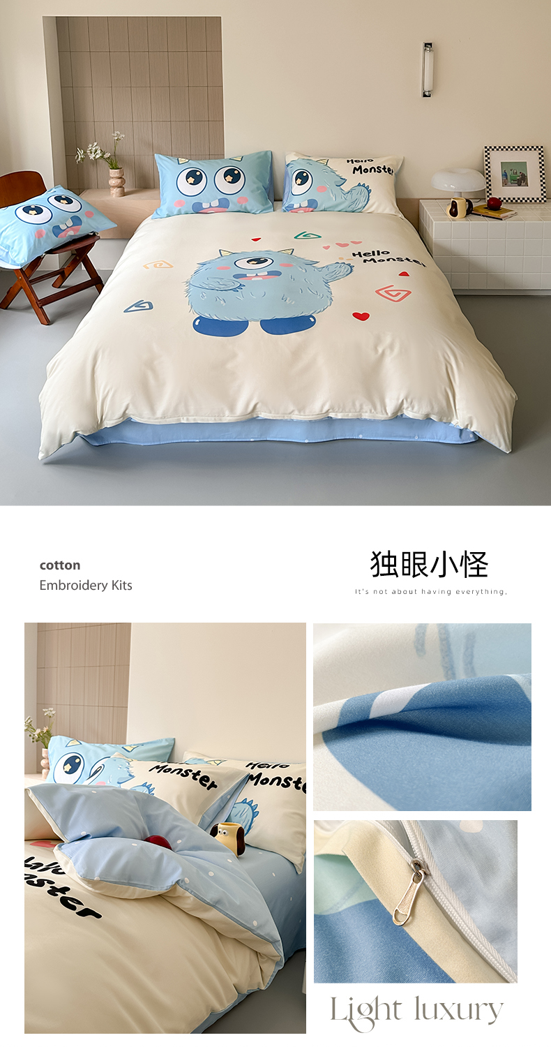 曼之夏 2024新款40支高精密数码印花全棉四件套 独眼小怪