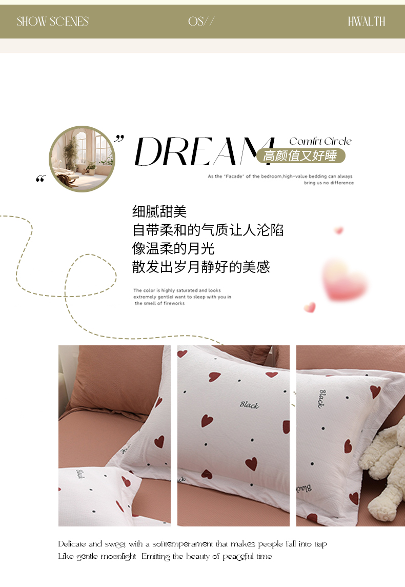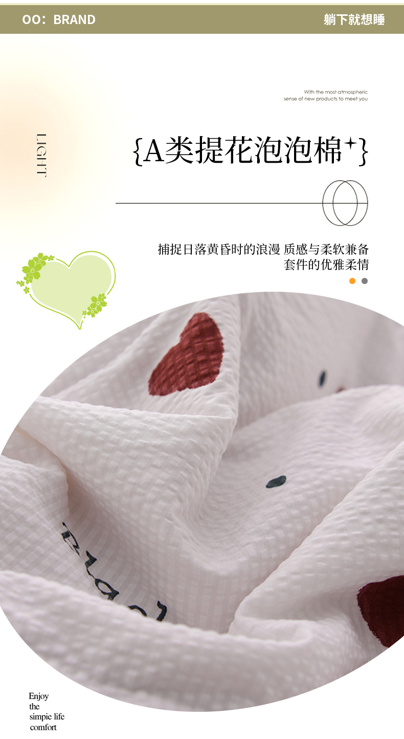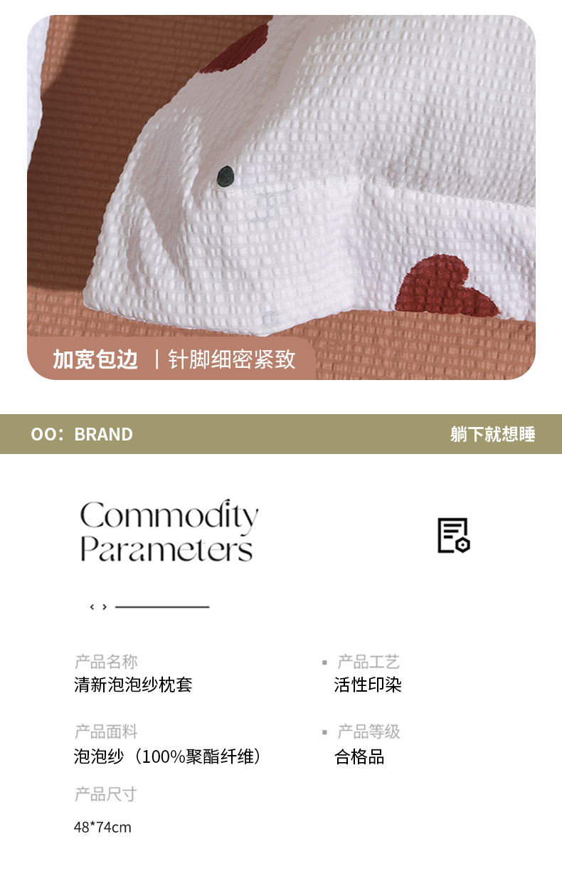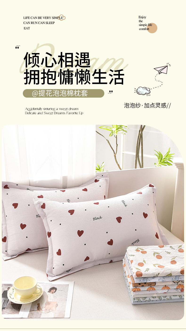 商品名称:圣楚家纺 2024新款泡泡纱枕套 甜蜜心跳