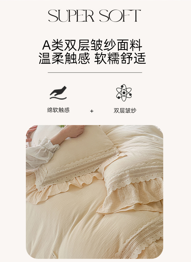 (总)玛奇朵 2025秋冬新品韩国色织A类三层皱皱纱系列四件套,山屿,时序,巷往