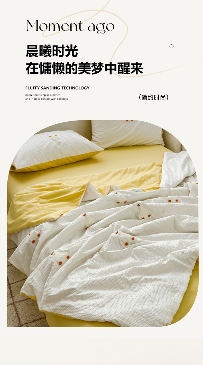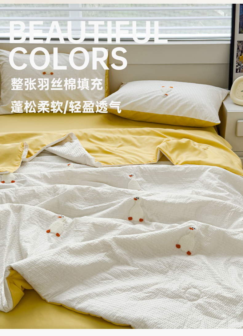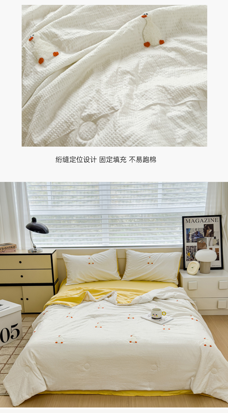 • 91家纺网 家纺一手货源 找家纺 红嘴企鹅 2025新款华夫格水洗棉毛巾绣夏被四件套 华夫格小丫子