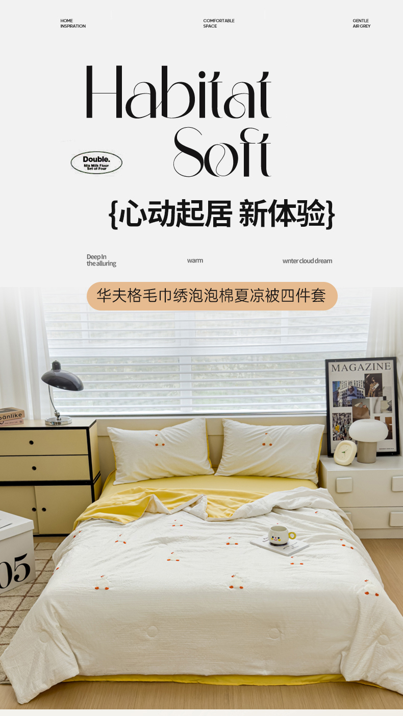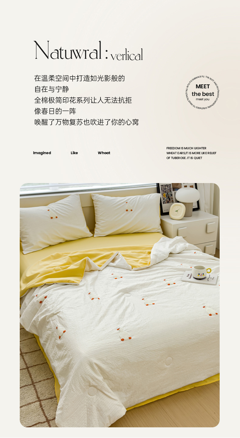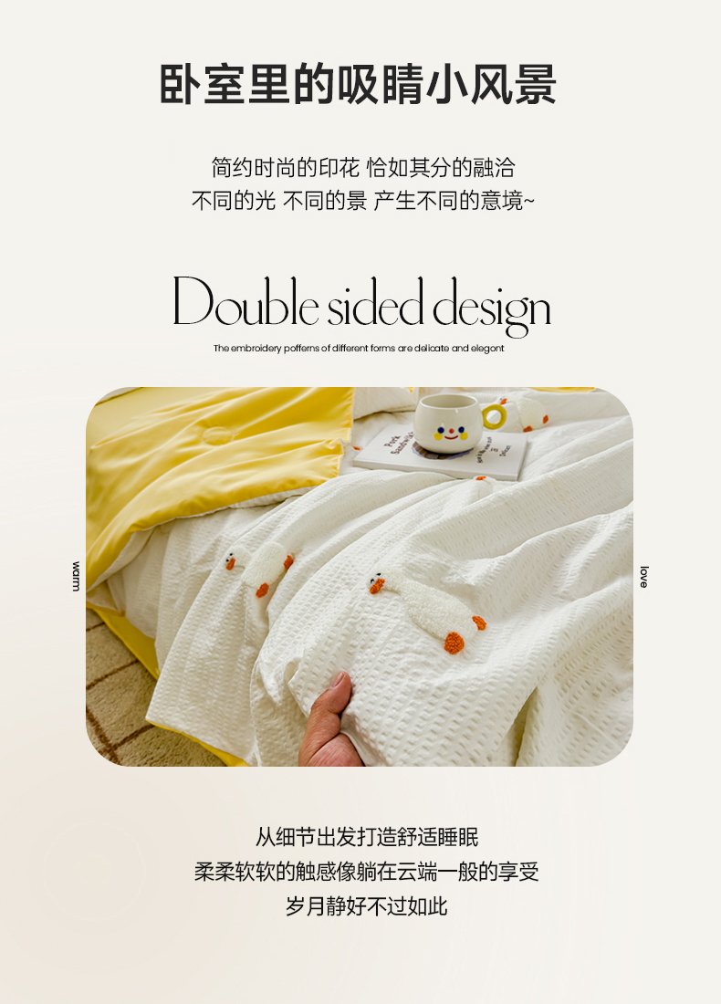 • 91家纺网 家纺一手货源 找家纺 红嘴企鹅 2025新款华夫格水洗棉毛巾绣夏被四件套 华夫格小丫子